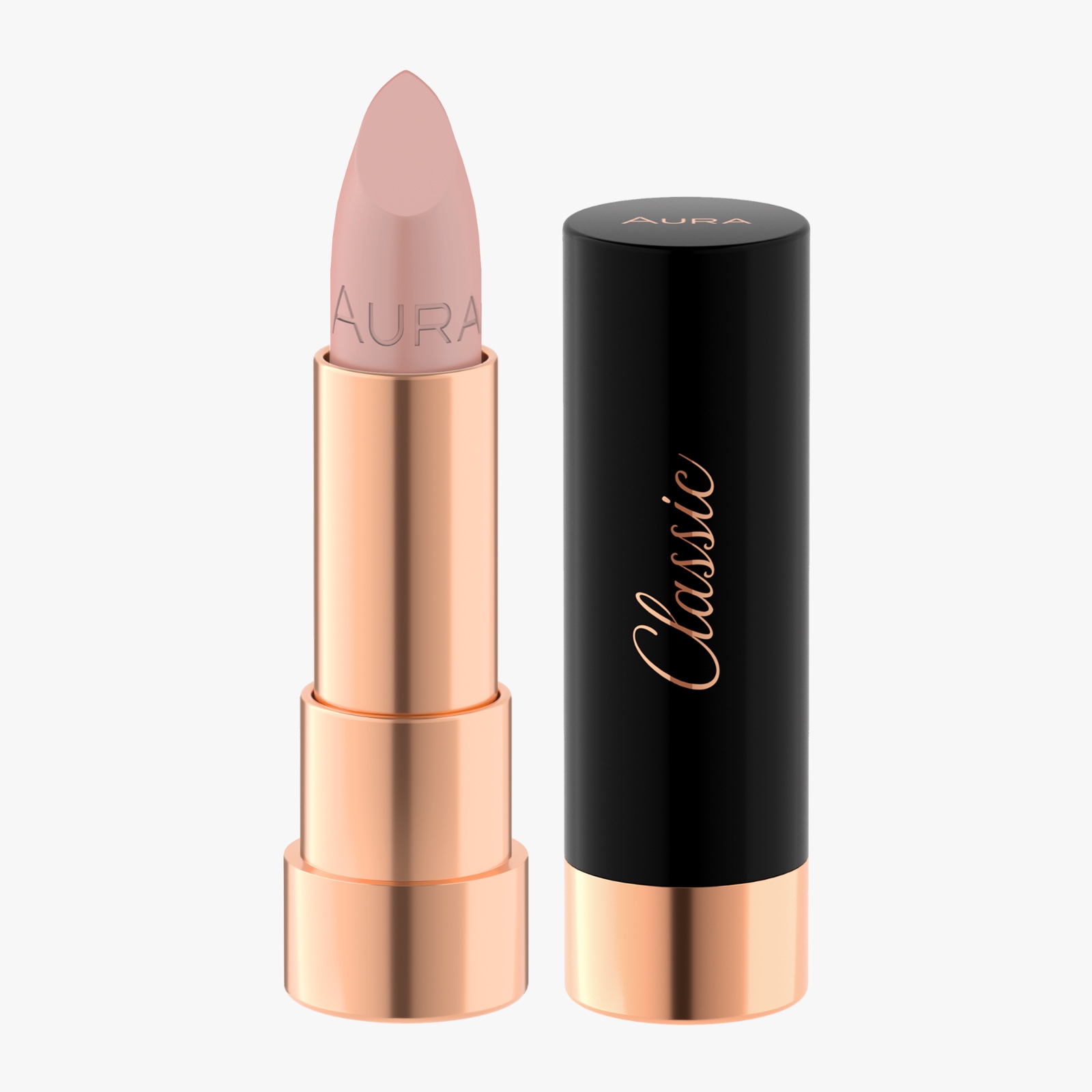 Potom nanesite AURA Classic ruž u nježnoj ružičasto-bež nijansi koji će usnama dati punoću i mekoću. Njegova kremasta tekstura čini ga savršenim za svakodnevno nošenje, a hidratacija traje satima bez isušivanja usana.