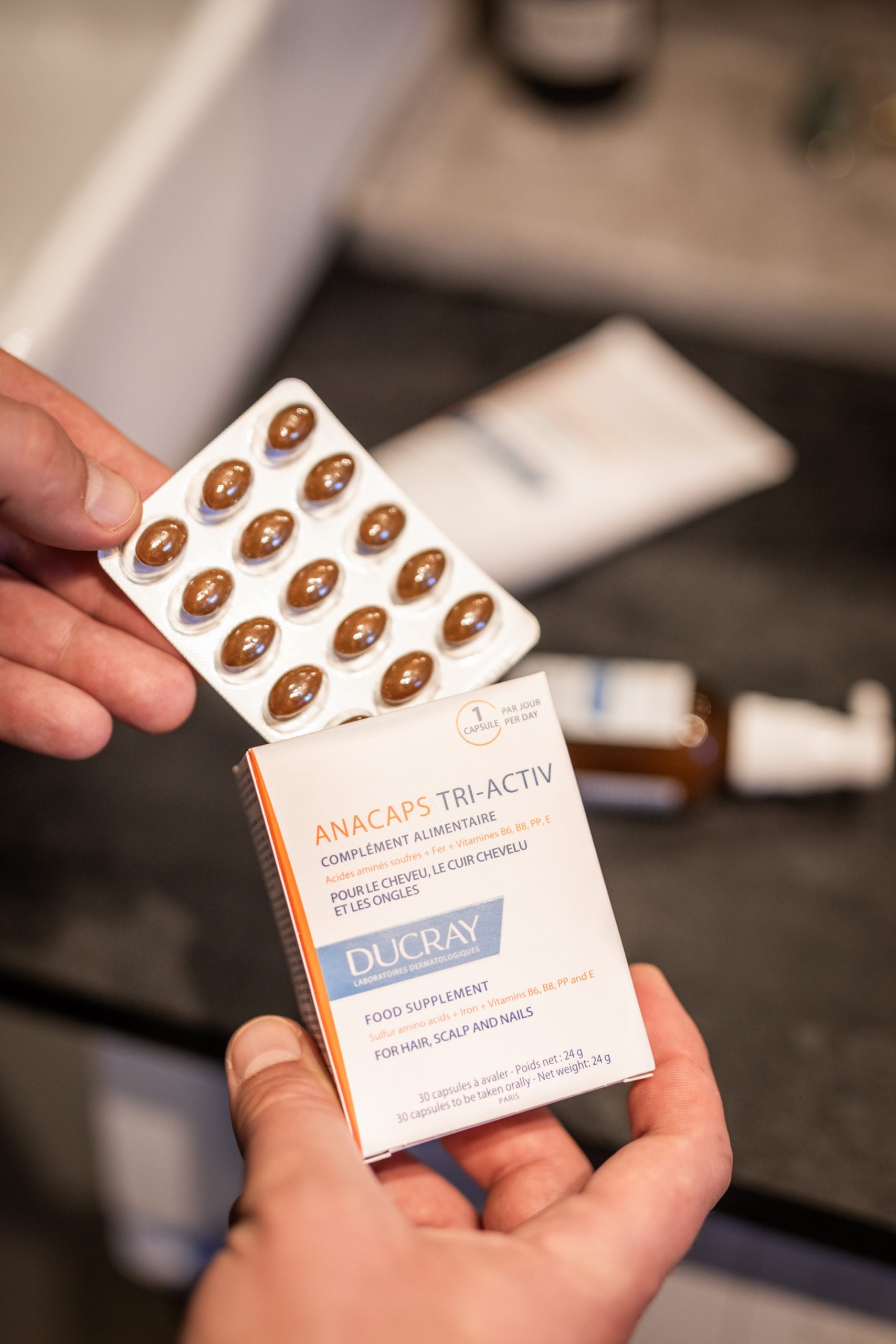 Kao dodatak prehrani tu su Anacaps tri-ACTIV kapsule koje sadrže biotin koji doprinosi održavanju normalne kose i kože i niacin koji doprinosi održavanju normalne kože, a piju se jednom dnevno.