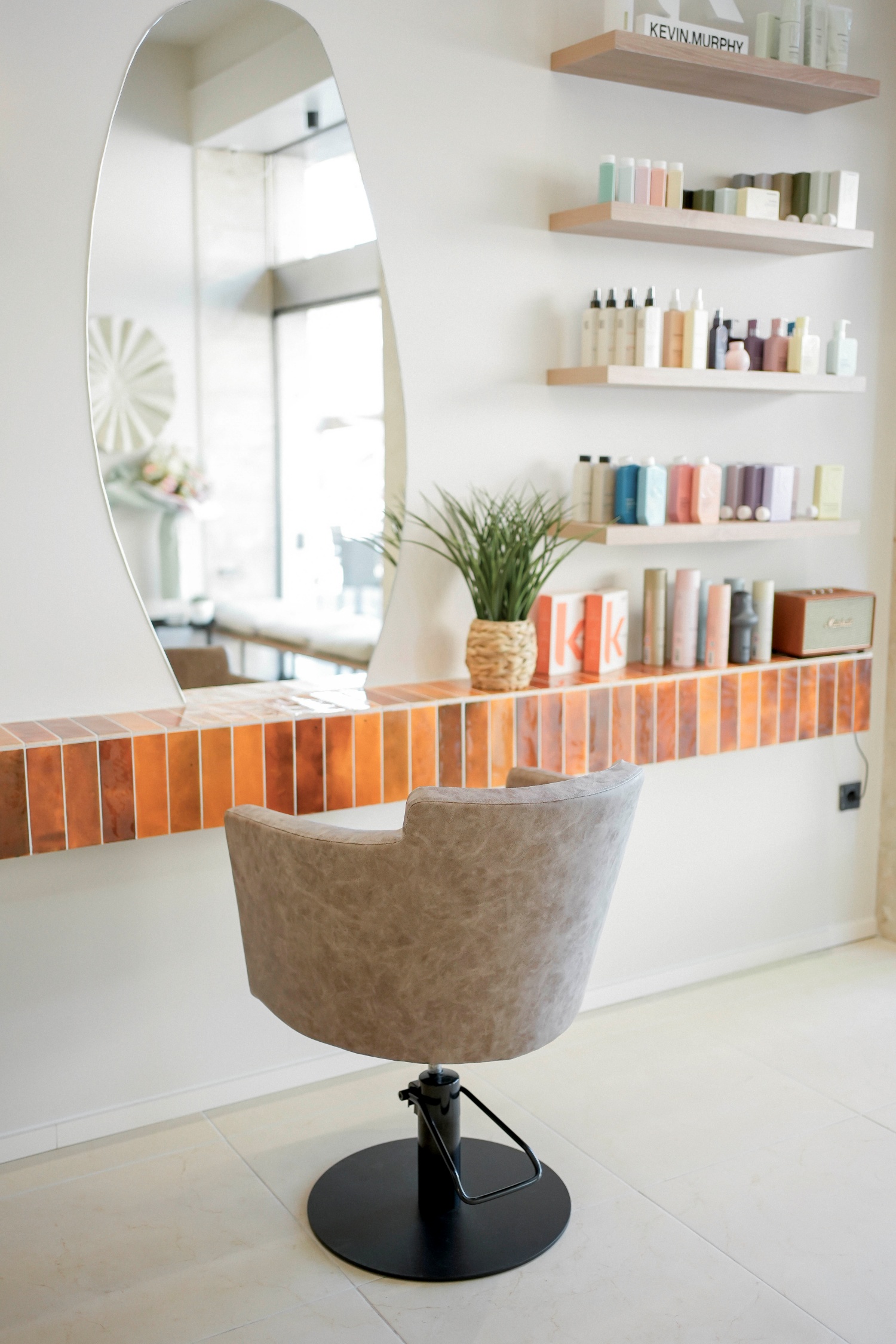 Interijer salona je dizajnirala arhitektica Maja Merlić Ilić, koja je kombiniranjem elemenata minimalizma suptilno spojila s gradskim šarmom. Prostor salona je otvoren s visokim stropovima koji naglašavaju osjećaj prostranosti. Zidovi su obojeni u pastelne nijanse, poput boje pijeska i mente, koje stvaraju umirujući ambijent. Ova paleta boja ne samo da vizualno proširuje prostor, već i čini interijer privlačnim kada se gleda kroz izlog, stvarajući skladnu vizualnu povezanost s užurbanom ulicom.
