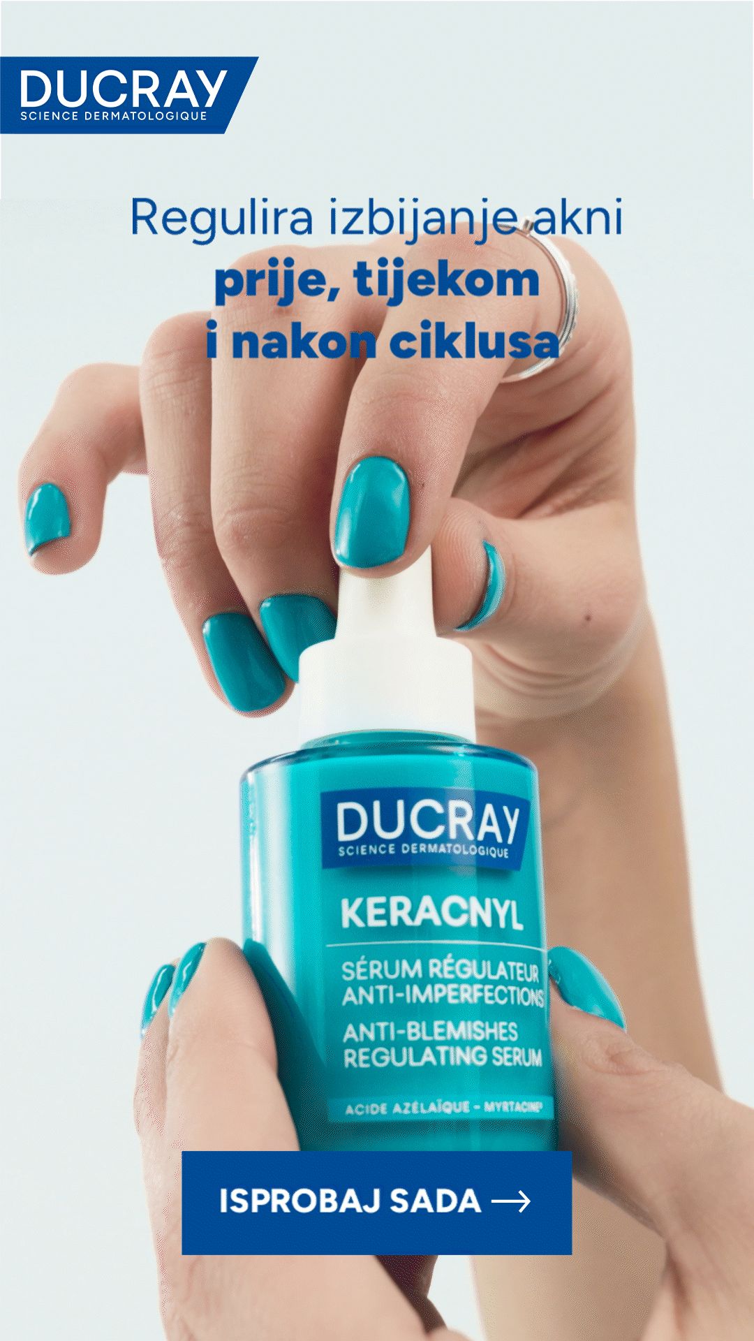 Ducray Keracnyl regulirajući serum protiv nepravilnosti razvijen je kao dermokozmetičko rješenje za njegu kože u odrasloj dobi. Posebno je prilagođen koži sklonoj tzv. “adult acne”, odnosno nepravilnostima koje se pojačavaju netom prije, tijekom i nakon menstrualnog ciklusa, dok je pogodan i za kožu čije stanje mogu pogoršati svakodnevni čimbenici poput stresa i neuravnoteženog načina života.