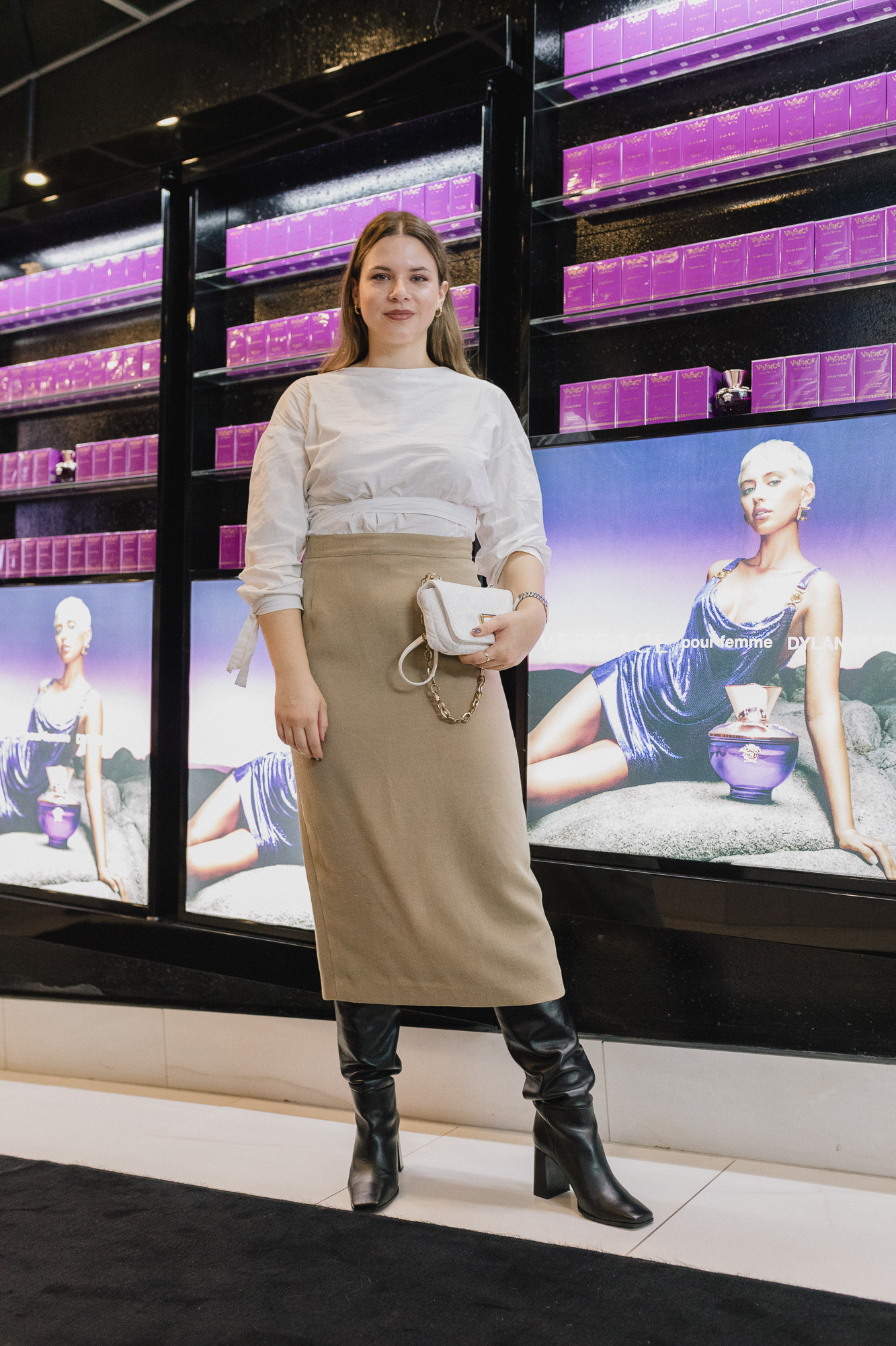 Predstavljanje mirisa održano je uz DJ-a, prekrasno dekoriran ambijent u bojama mirisa i glomazan ekran koji je prikazivao Dylan Purple kampanju, a sam event vodila je prekrasna Jelena Glišić.