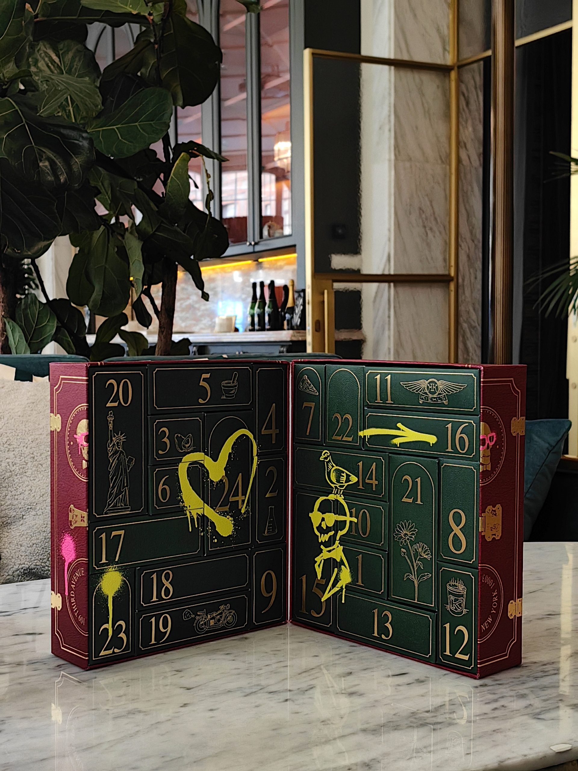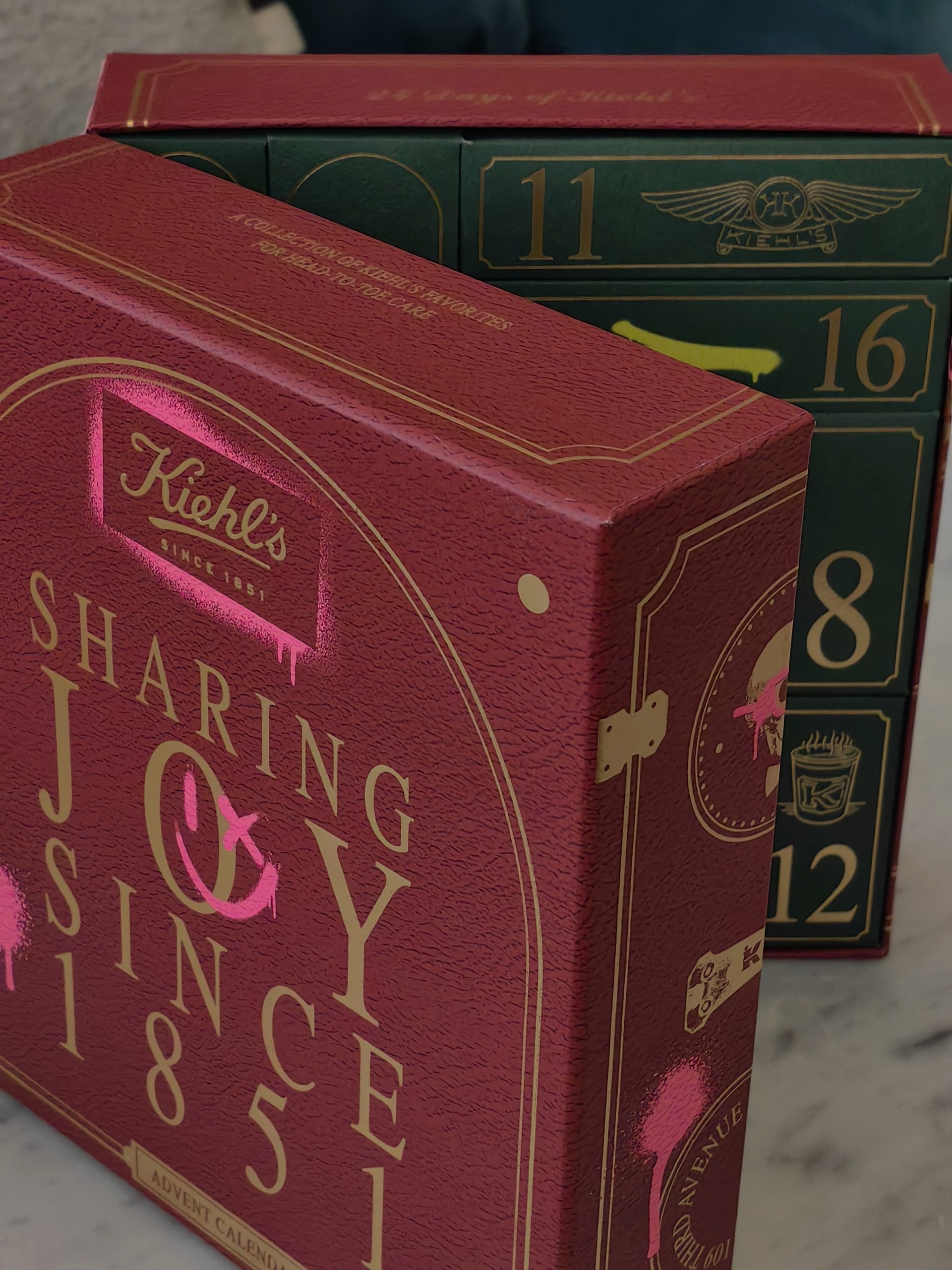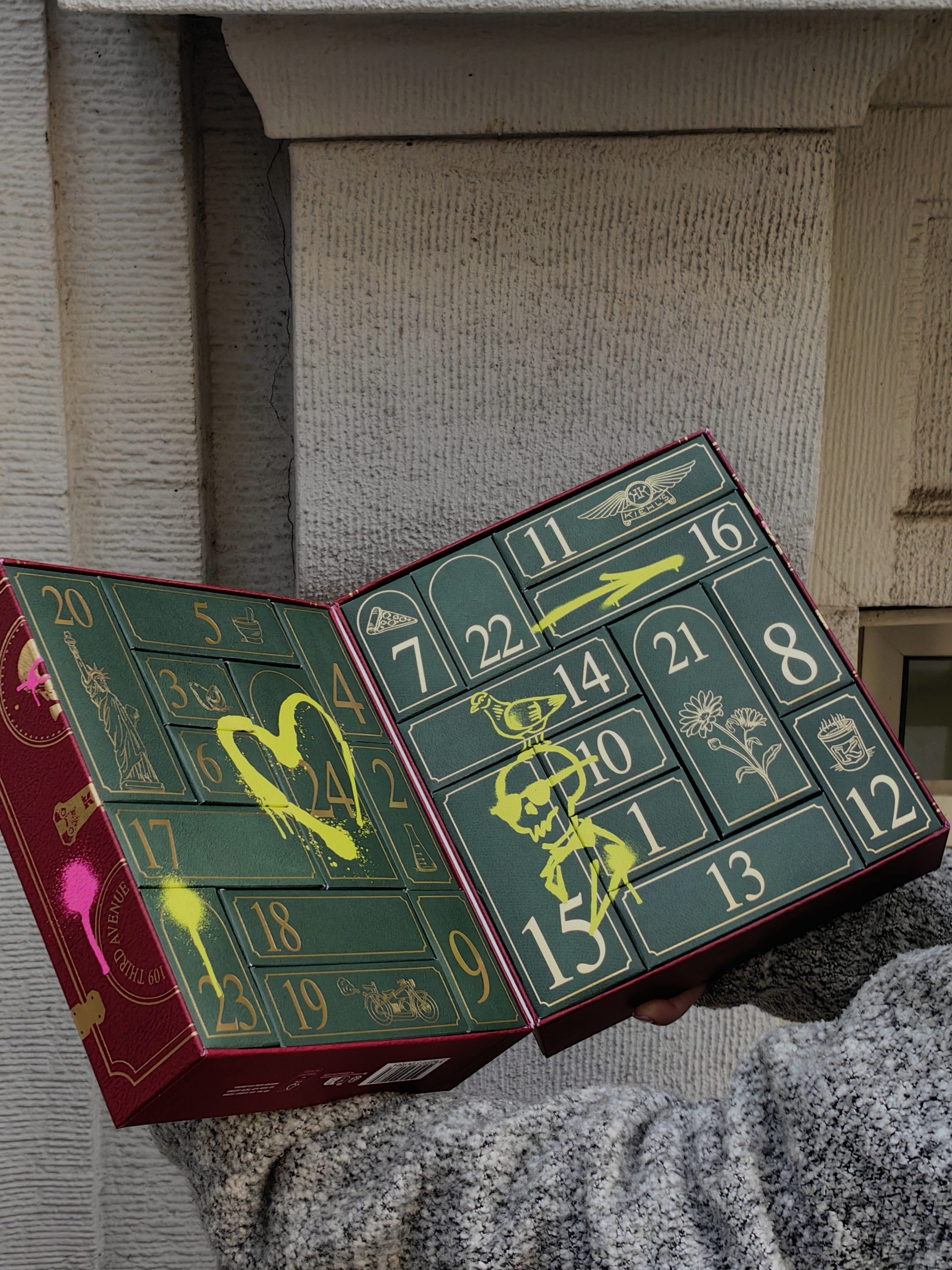 Uvijek pomno osmišljen, ove godine Kiehl’sov adventski kalendar dolazi u čvrstoj kutiji koja u unutrašnjosti krije 24 kultna proizvoda ovoga brenda. Boje su tipično blagdanske, duboka zelena iznutra te tamna crvena izvana, ali naravno začinjene prepoznatljivom Kiehl’s estetikom pa je tako vanjski dio prošaran neonsko rozim grafitima, dok je unutarnji iscrtan neonsko zelenim grafitima. Oba neodoljivo podsjećaju na grad iz kojeg nam dolazi ovaj brend – New York.