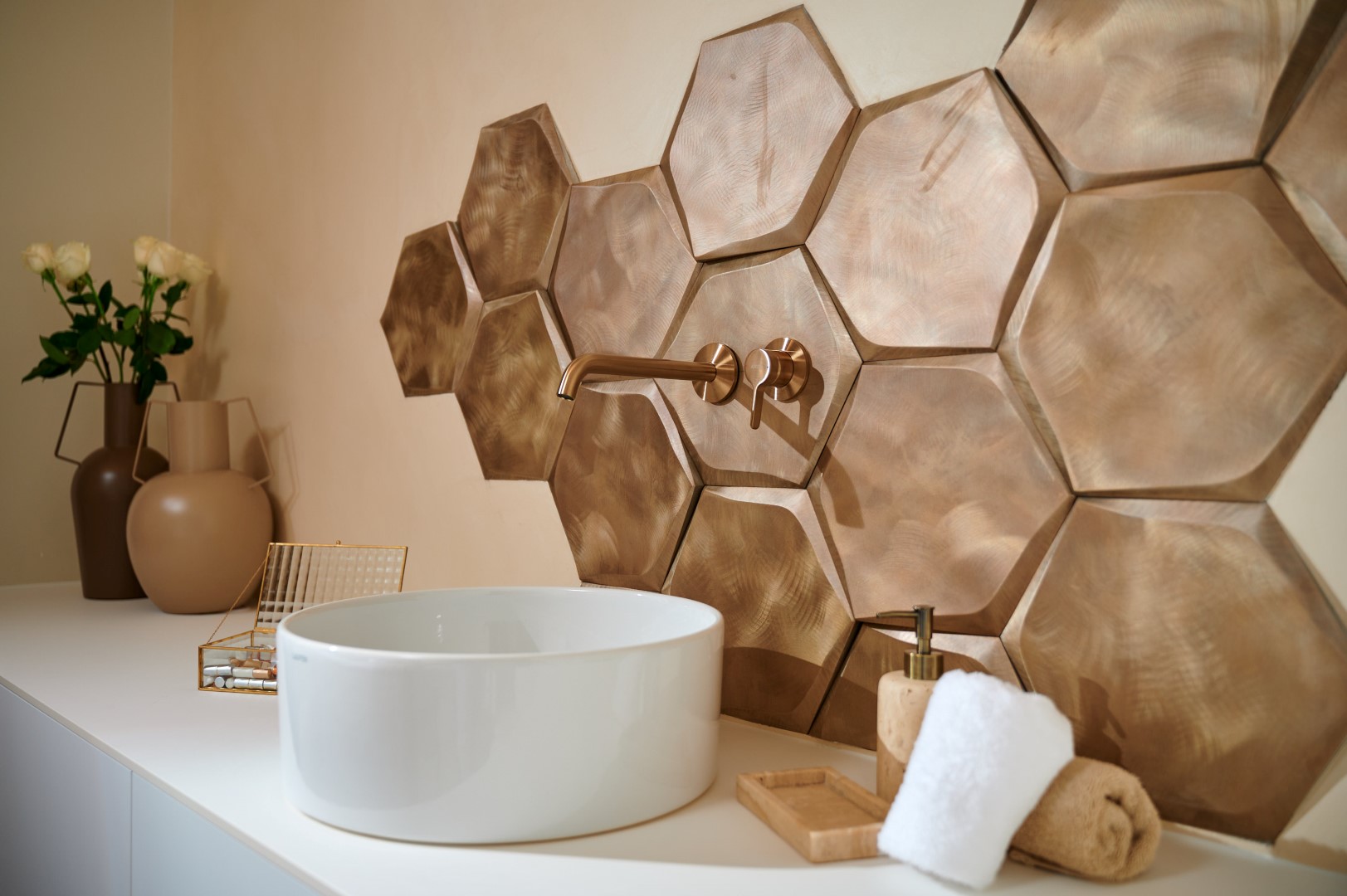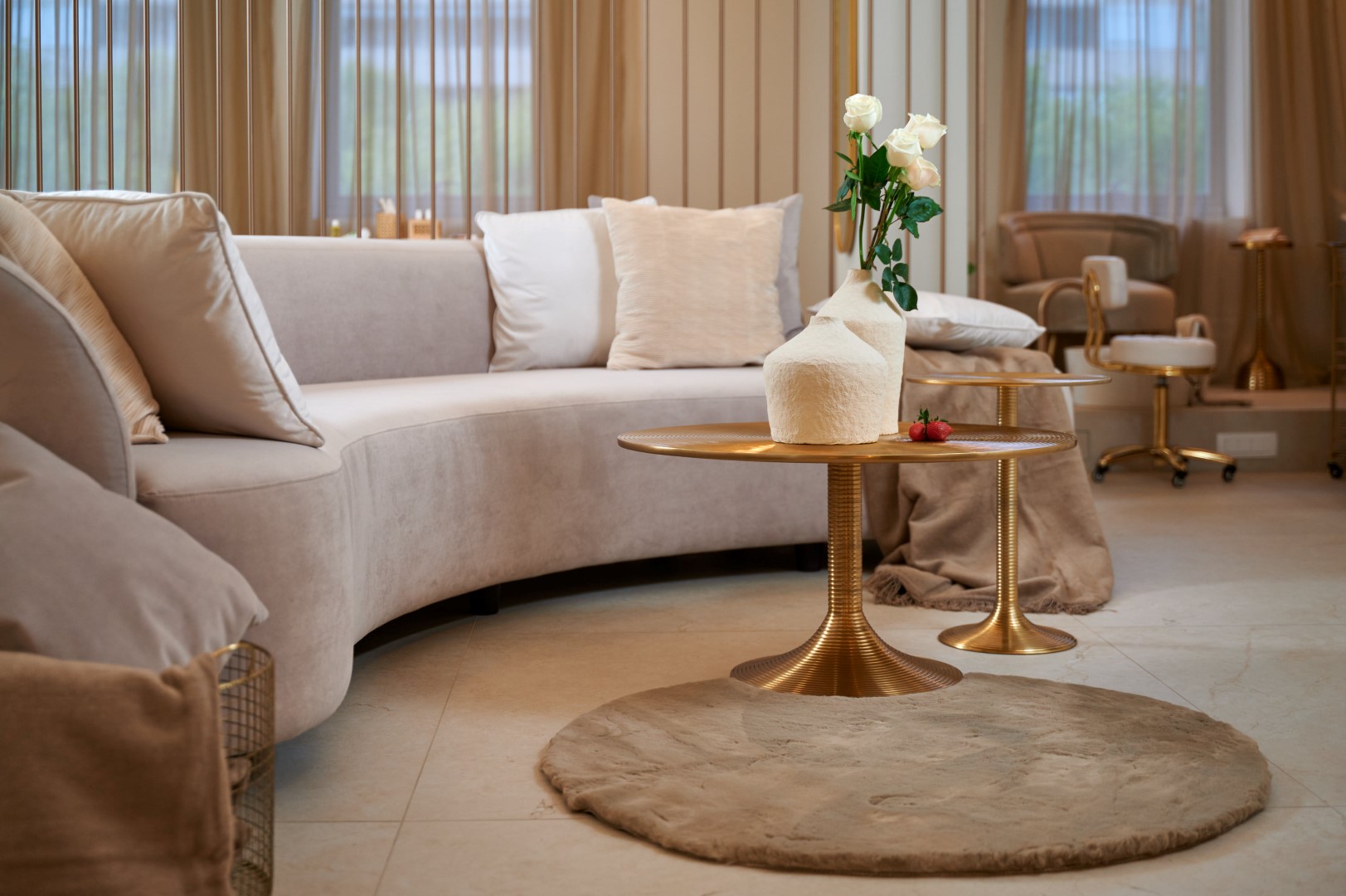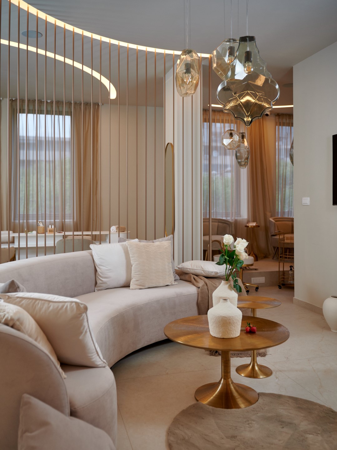 Ambijent nove poslovnice Beauty Centra Touch osvaja na prvi pogled. Za uređenje je bio zadužen Angelika Design, a prostorom dominiraju tople, zemljane nijanse koje se isprepliću s upečatljivim zlatnim detaljima. Bijele i bež fotelje te sofe doprinose prozračnosti prostora, a drvene police na zidovima dodatno pojačavaju topli ugođaj. Za iznimno cozy atmosferu zaslužne su i brojne lampe i drugi izvori svjetla, vaze s bijelim ružama, kao i savršen izbor detalja koji zaokružuju ideju o decentnom, elegantnom prostoru uređenom s dozom svedenog luksuza. Posvećenost kvaliteti osjeti se na svakom koraku, kao i na onom najvažnijem – beauty uslugama koje Touch pruža.