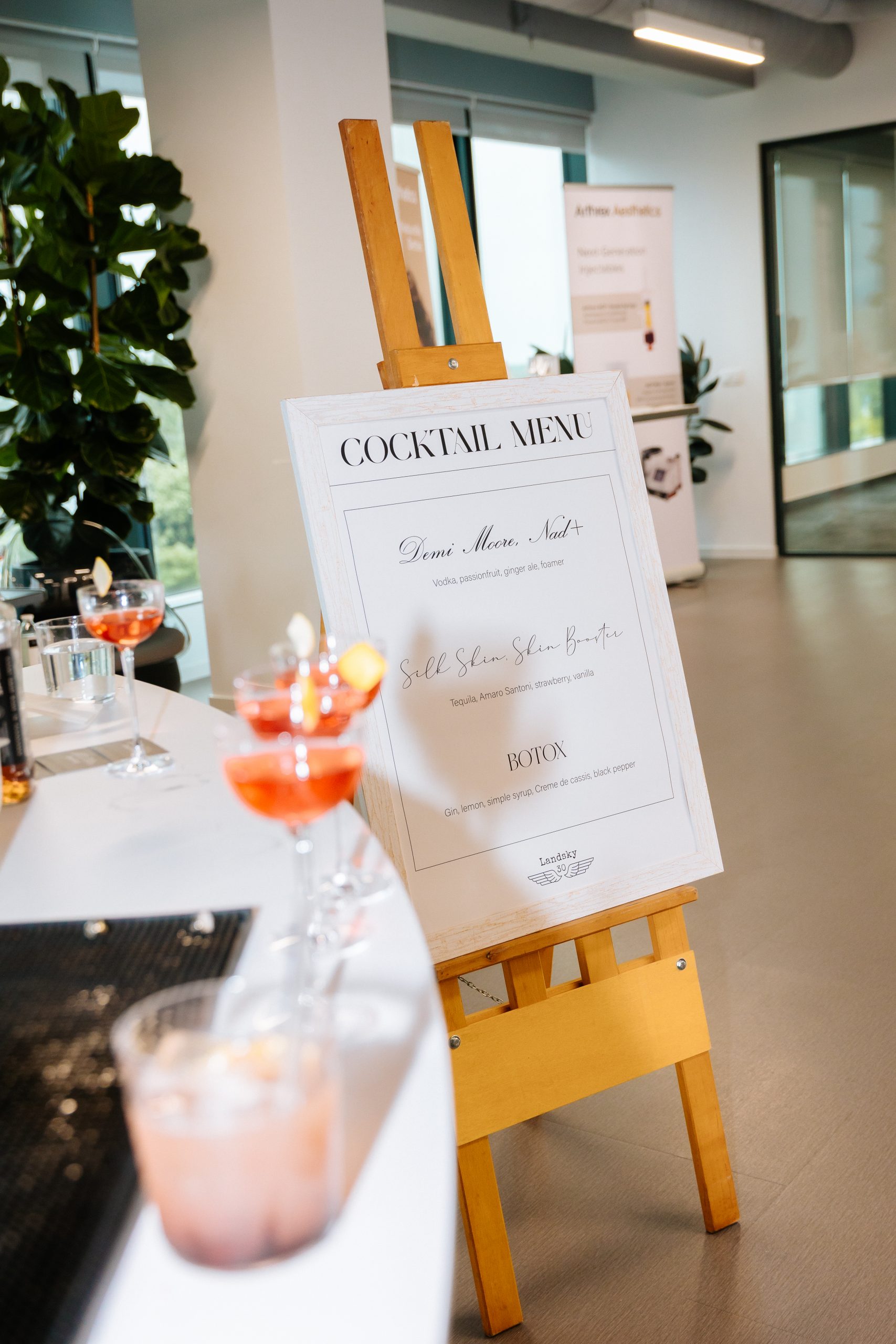 Gosti su imali priliku isprobati posebno osmišljene kotele Landsky bara, a kao glavna inspiracija poslužila je tema događaja. Tako je lista koktela glasila Demi Moore NAD+, Silk Skin SKINBOOSTER i BOTOX što je posebno oduševilo sve prisutne.