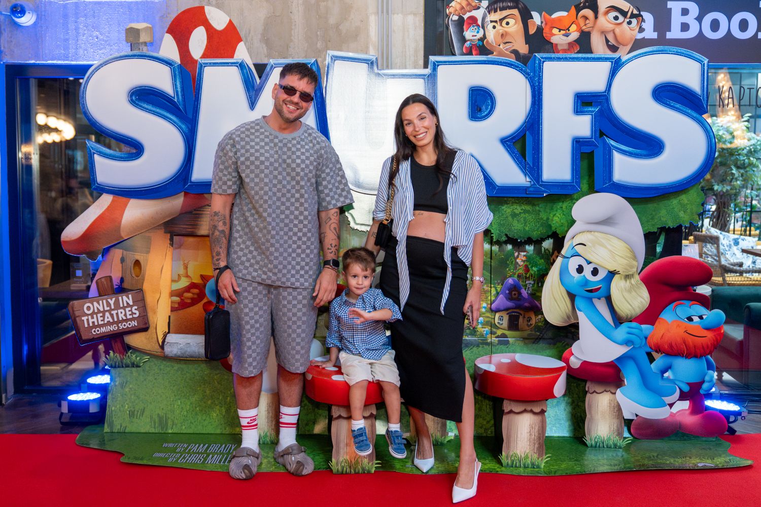Poseban šarm događanju dala je Maja Šuput, koja je svojom energijom i glasom oživjela neodoljivu Štrumpfetu u hrvatskoj sinkronizaciji, a upravo je njezin dolazak izazvao oduševljenje okupljenih. Čim se pojavila, okružila ju je hrpa djece željna fotografije, zagrljaja i zajedničkog plavog trenutka. Strpljiva i nasmijana, Maja se rado slikala sa svakim mališanom, a Štrumpfeta koju je oživjela svojim glasom postala je instantno najomiljeniji lik večeri. Uz nju su na crvenom tepihu zablistali i ostali članovi zvjezdane glumačke postave, među kojima su bili i Marko Grubnić, Tomislav Marić ToMa, Marco Cuccurin, Dražen Čuček, Natko Beck. Premijera je bila prepuna poznatih lica, influencera i ljubitelja filma. Neki od njih bili su i Pamela Ramljak, Sandi i Cindy Hadžić, Lucija Lugomer, Luka Lajić, Alex Milinković, Vlaho Arbulić, Mirna Maras i mnogi drugi.