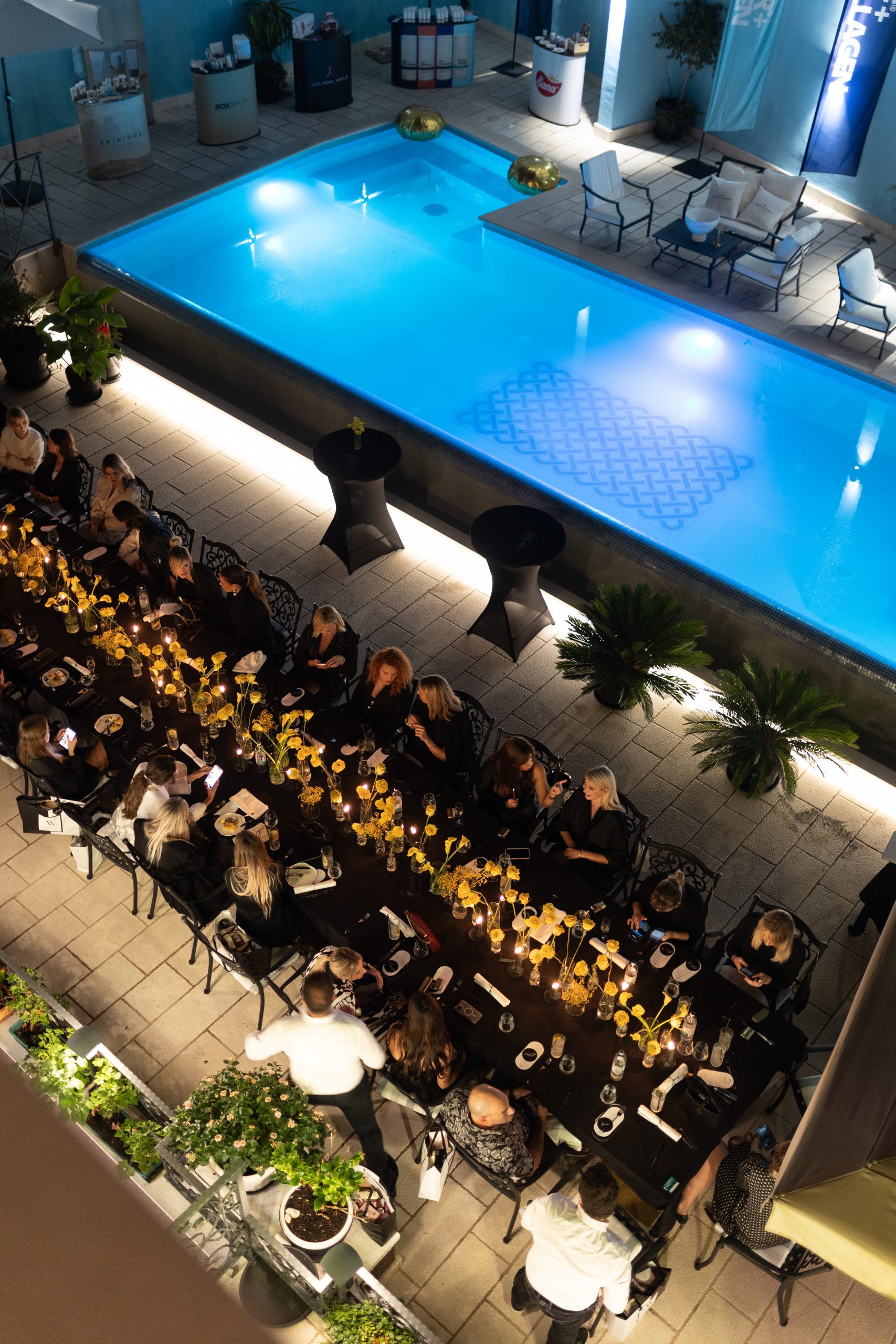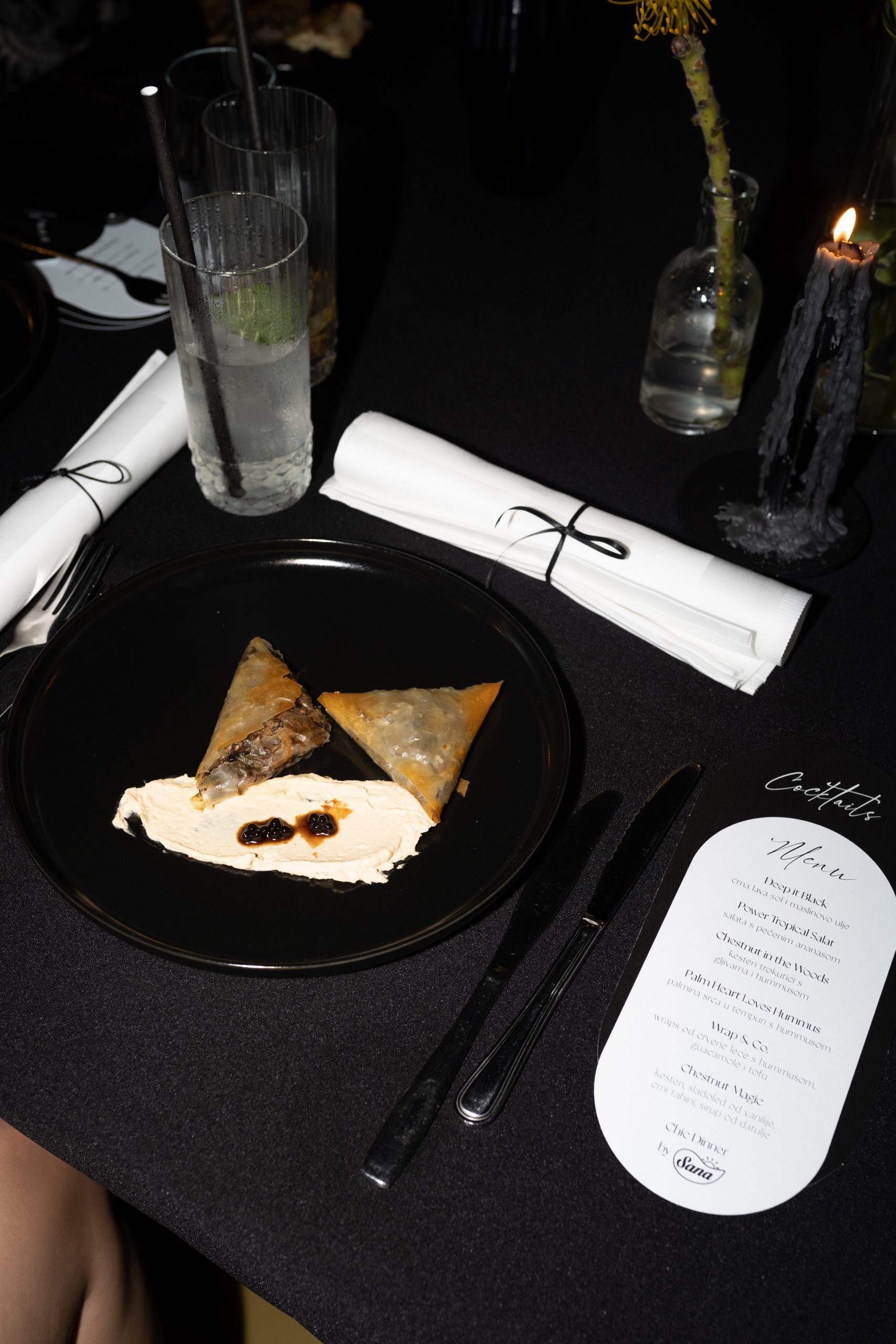 Prvi dan Women’s Wellbeing Weekenda završio je gala večerom na predivnoj terasi hotela Cvita, ukrašenoj očaravajućim dekoracijama i žutim cvijećem, poput ruža i kala, što je stvorilo nezaboravno iskustvo. Iz Sana delikatesa osmislili su poseban jelovnik koji je obuhvaćao zanimljive i originalne specijalitete kao što salata s pečenim ananasom, kesten trokutići s gljivama i humusom, palmina srca u tempuri s humusom te sladoled od vanilije s crnim tahinijem i kestenom.