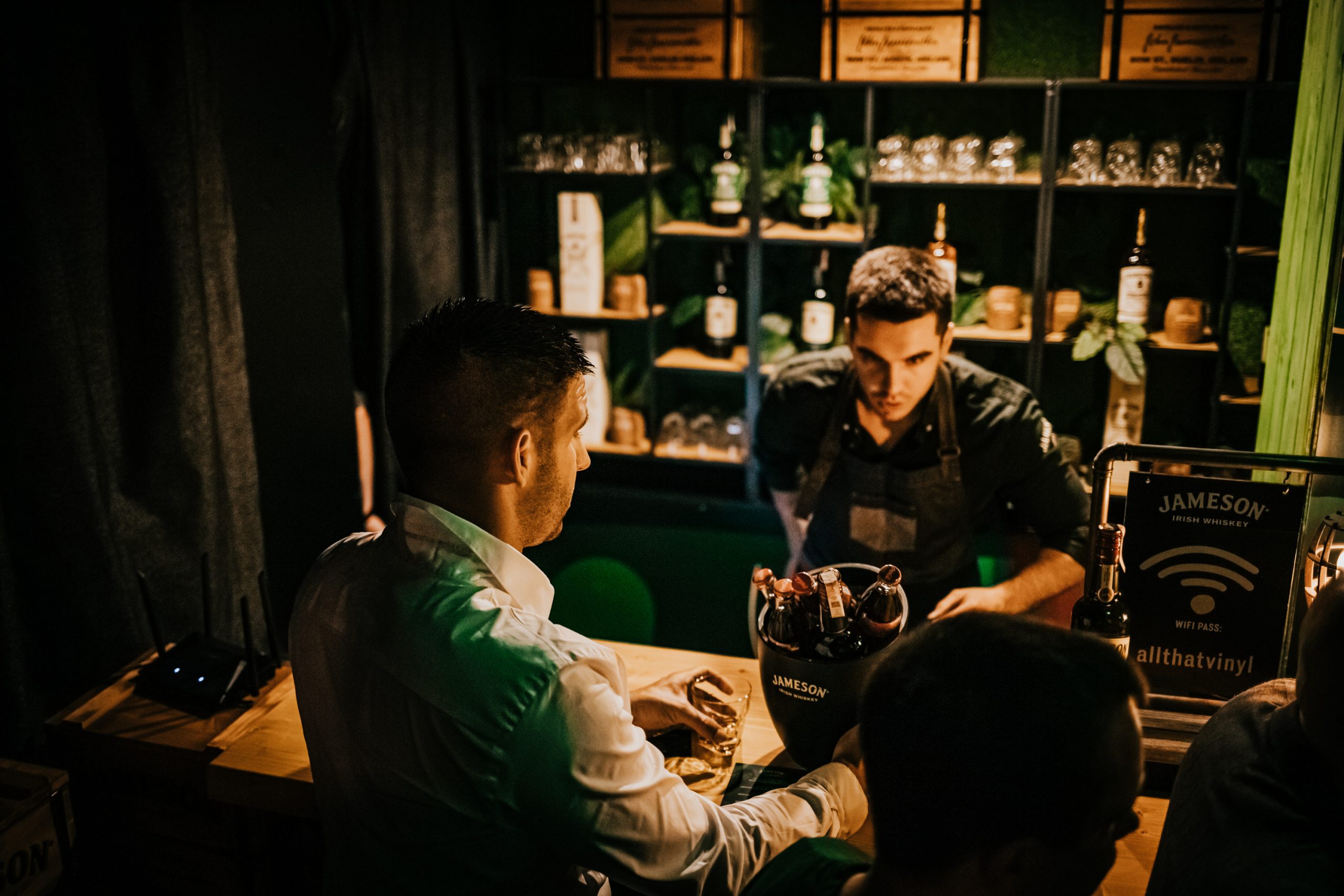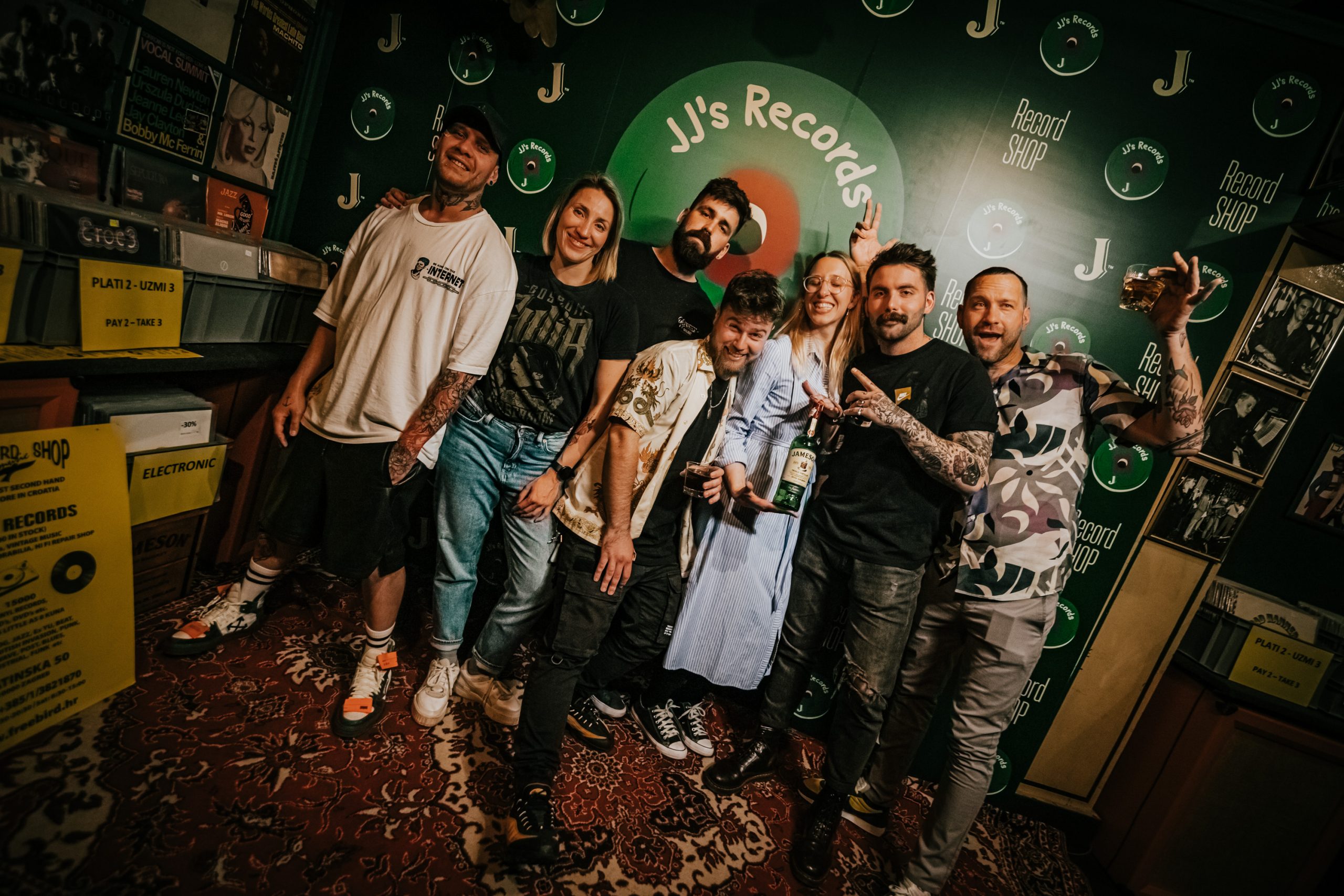 Na samom ulazu u J.J.’s Record Store uzvanike je dočekao šarmantni zaljubljenik u kvalitetnu glazbu, poznavatelj gramofonskih ploča te profesionalni prodavač u najpoznatijem zagrebačkom vinyl dućanu, Free Bird Music Shop iz Tratinske 50. Kako bi se postavio ton večeri, uzvanicima je predstavljena bogata kolekcija ploča i povijest koja iza njih stoji, a zatim je uslijedilo neočekivano otkrivanje što J.J.’s Record Store zaista jest. Naime, pri samom kraju prezentacije, iza leđa publike i uz pratnju glazbene kulise otvorila se jedna od polica s pločama, a pred gostima se stvorio ulaz u neki novi svijet – svijet Johna Jamesona. Atmosferu je istog trena zapalio bend MIRZA X G.O. & THE BASHIR BROTHERS svirkom uživo i obradom poznatih hitova, a za barom goste su dočekali profesionalni barmeni koji su pripremali vrhunske Jameson koktele. Za dobru atmosferu pobrinuo se i simpatični komičar, Alex Curać Šarić. Večer je protekla uz nezaboravno druženje kakvo se i očekuje od danas već legendarnih tuluma Johna Jamesona.