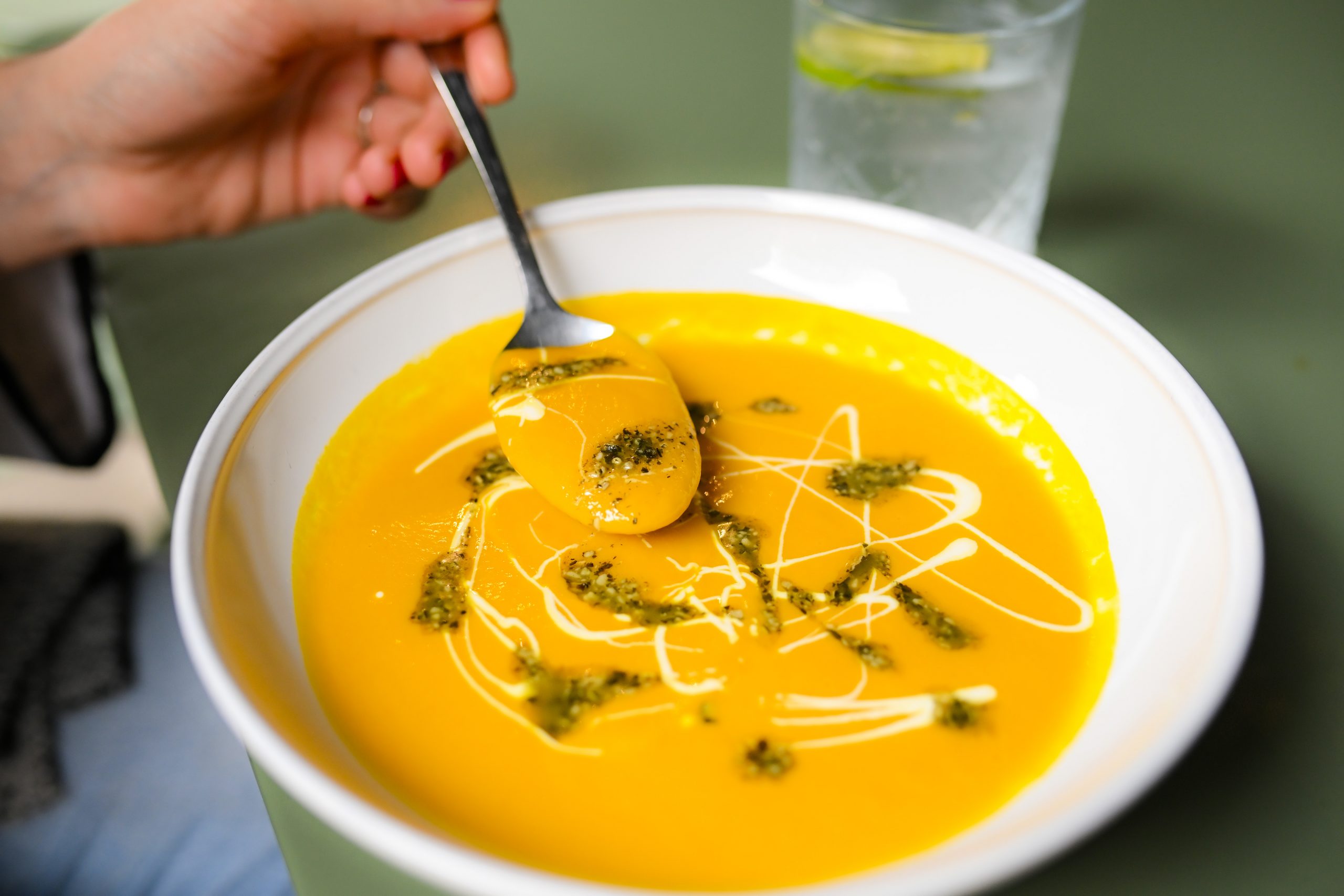 Kao i inače, glavnu riječ u predjelima vodi bezvremenski klasik; tatarski biftek. Ovaj put u verziji s dimljenim žumanjcima i čipsom od pastrnjaka. Novost među predjelima je burrata s grilanim radičem i pršutom XO.. Novitet među predjelima je i vitello tonnato ( teletina u umaku od tunjevine) s hrskavim kaparima i ukiseljenim lukom. Na meniju se našla i juha od mrkve i đumbira, služena s creme fraicheom i sjemenkama bundeve. Riječ je o pravoj zimskoj juhi koja će zagrijati organizam, zahvaljujući spoju žestokog đumbira i kurkume. Tu je ostao i još jedan klasik, samo u mrvicu drugačijem tonu; kozice na tostiranoj focacciji s maslacem s češnjakom i čilijem.