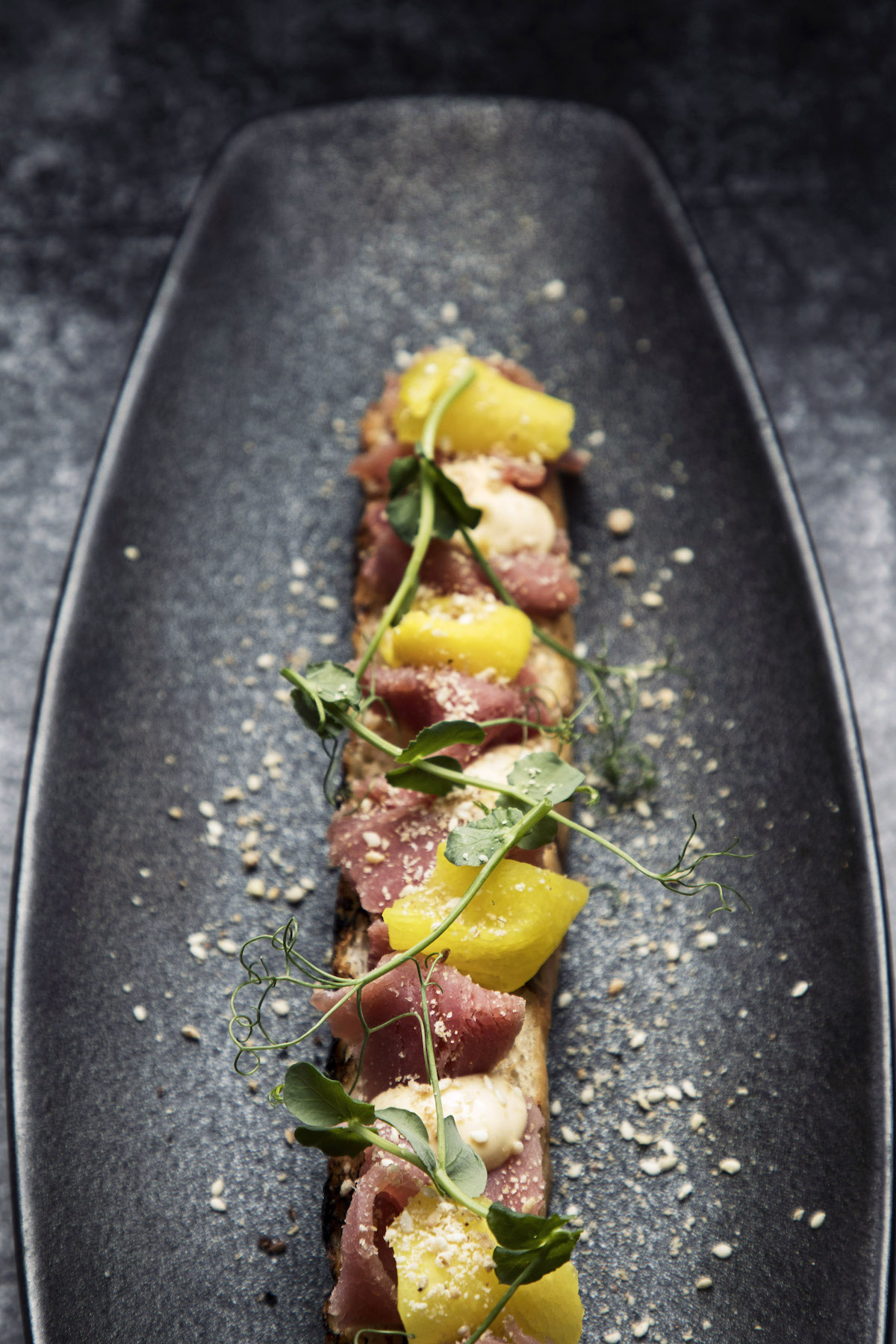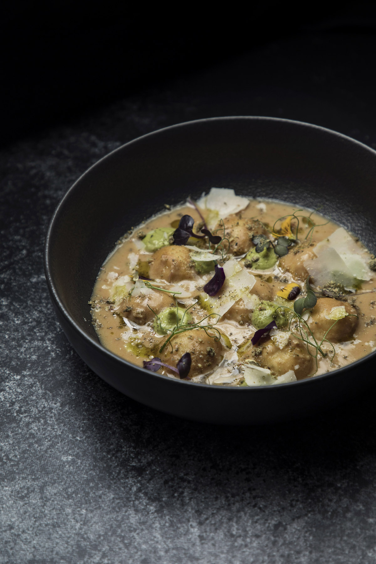 Od predjela tu je azijska beef juha s domaćim dumplingsima i hrskavim povrćem, zatim gnudi od kravlje skute s kremom od bosiljka i listićima Grana Padana te brusketa na zapečenoj focaccia pogači s dimljenom tunom, kiselom korabom i salatom.