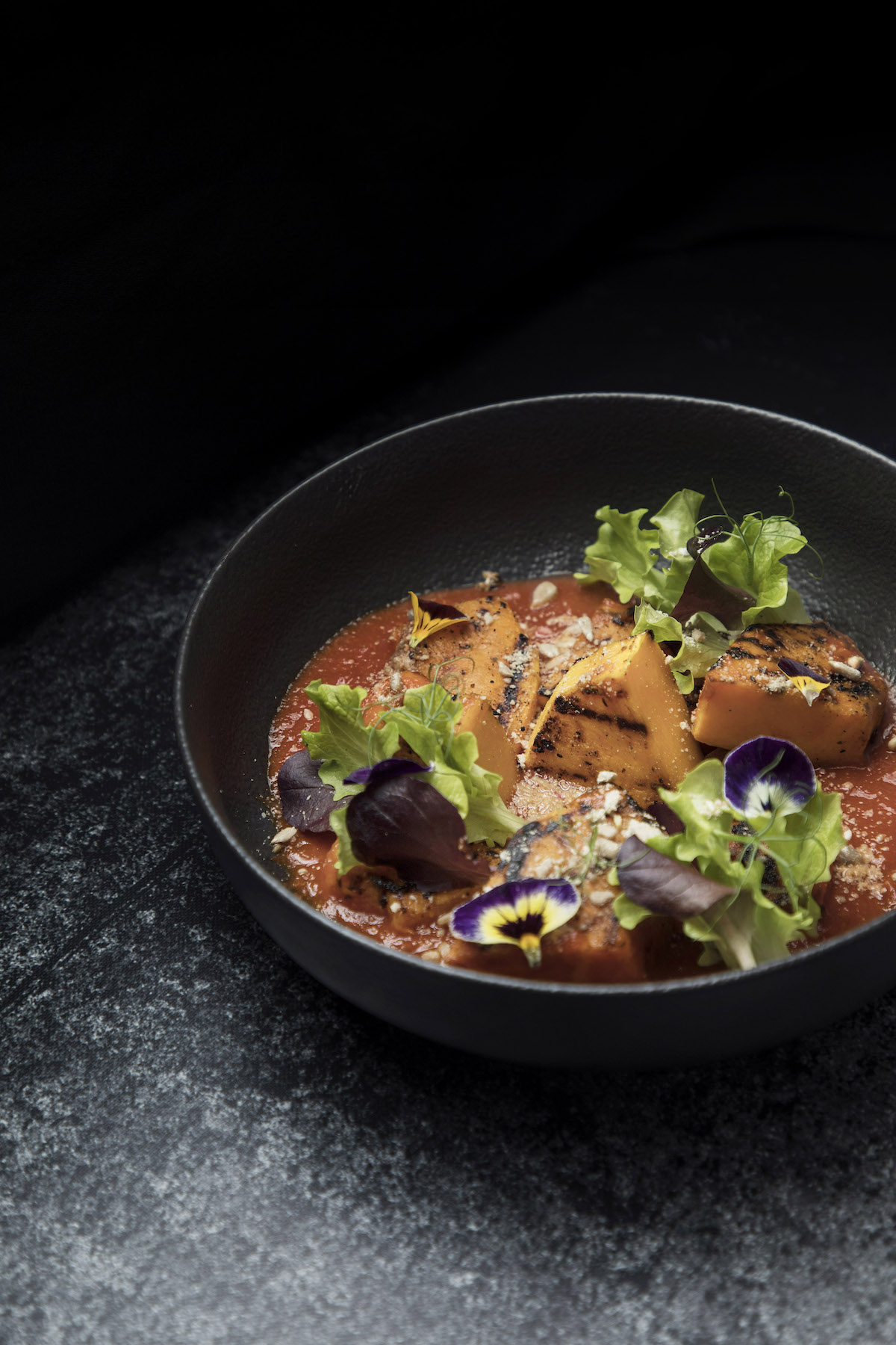 Od glavnih jela tu su sporo kuhani svinjski obrazi s domaćim njokima od muškatne bundeve na kremi od peršina, zatim hrskave polpete od hobotnice na kremi od limuna i wasabija s kiselim domaćim povrćem i salatom te zapečena muškatna bundeva na pikantnoj aromatičnoj šalši.