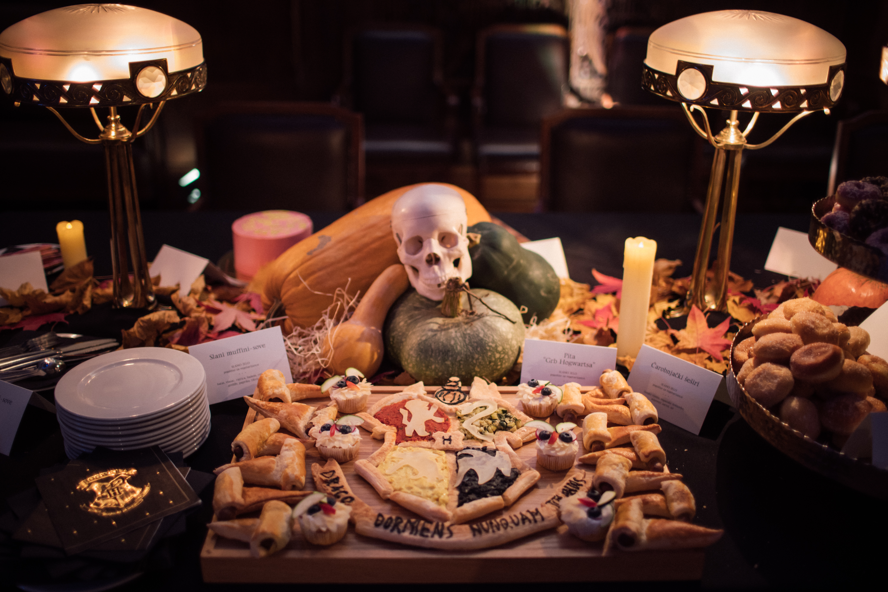 U magičnoj atmosferi Hrvatskog državnog arhiva, koji je pod kreativnom palicom scenografa Marija Miše postao Hogwarts, uzvanici su prvi mogli isprobati maštovite, ali i ukusne zalogaje, kako slane, kao što su pita „Grb Hogwartsa”, Čarobnjački šah, Đumbirov dvorac Hogwarts, slani muffini – sove, palenta s perona 9 i ¾, Munjolike pogače, tart s Velikog jezera, krekeri Nimbus, lisnata Napadačka vrba, čarobnjački šeširi, tako i slatke delicije poput pletenih džempera od keksa, Dumbledoreove buhtle s limunom, Happy birthday Harry torte, krafne iz Medičarnice, slatkog kruha od mandragore i Lunine duhočale od keksa.