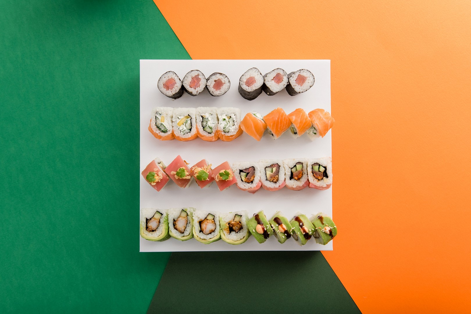 U SoHo-u podvrste sushija dolaze u porcijama od dvije rolice (Nigiri), šest (Hosomaki i Futomaki) te osam (Uramaki). Ako ipak volite „od svega pomalo“ – na raspolaganju su i sushi boxevi, idealni za druženja i isprobavanja različitih okusa i tekstura sushija. 50 shades of SoHo, 40 and Fabulous, Wolt box 30, Salmon 18+, Tuna top 16 ili Ebi Lover 12 – bit će teško odabrati jer svaki od box-eva mami na isprobavanje.