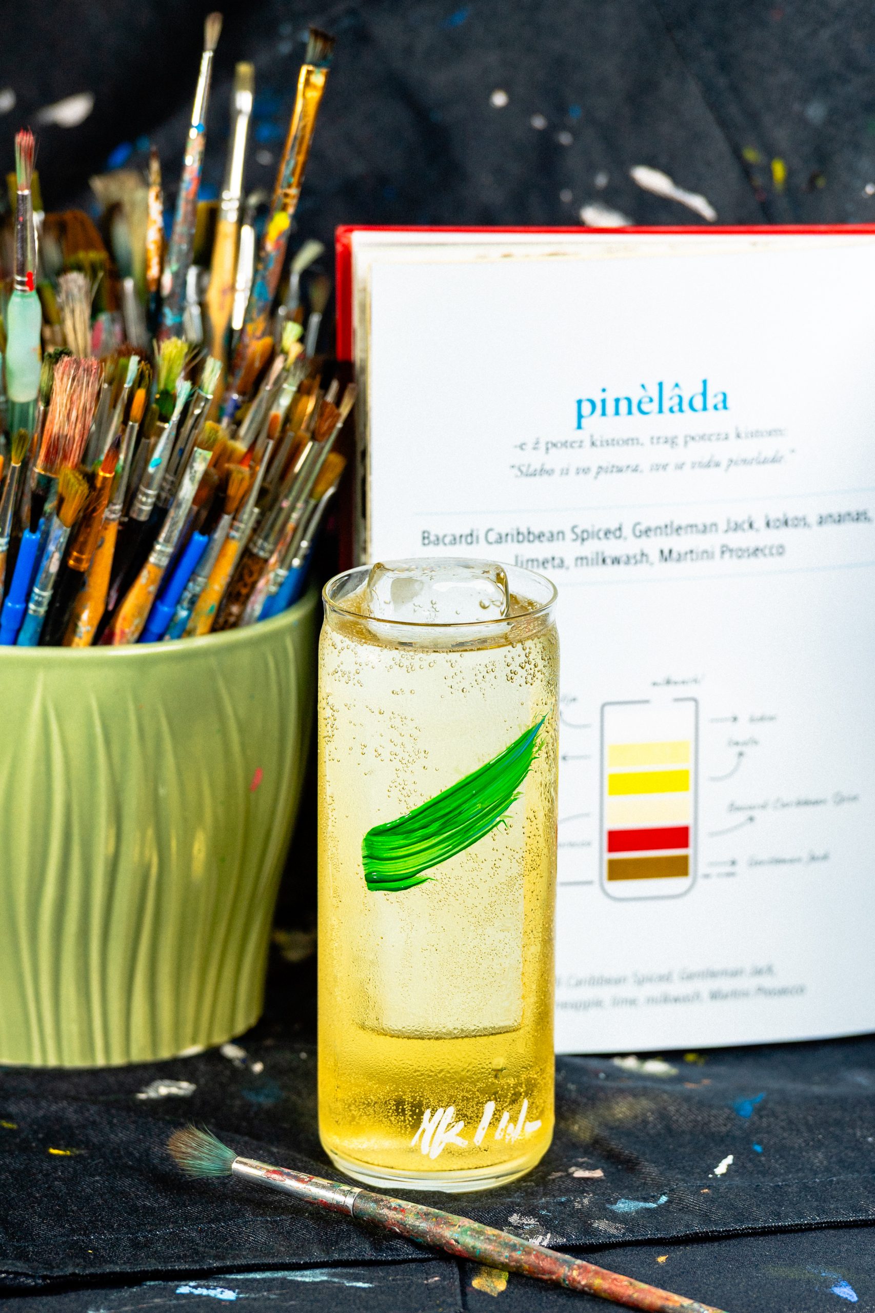 U ponudi su bili i ledeni slushie napitci s whiskeyem, jabukom i Monin pireom od kruške koji su se mogli kušati i u bezalkoholnoj varijanti.