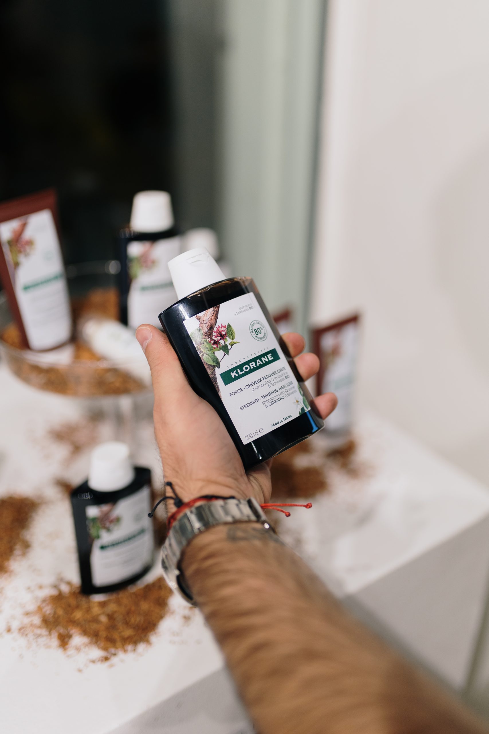 Šampon s kininom i organskim runolistom iz Kloranea kosi vraća snagu i vitalnost te pomaže potaknuti rast kose. Prikladan je za svakodnevno korištenje i odličan dodatak tretmanima protiv ispadanja kose. Šampon je napravljen bez sastojaka životinjskog podrijetla te s biorazgradivom formulom.