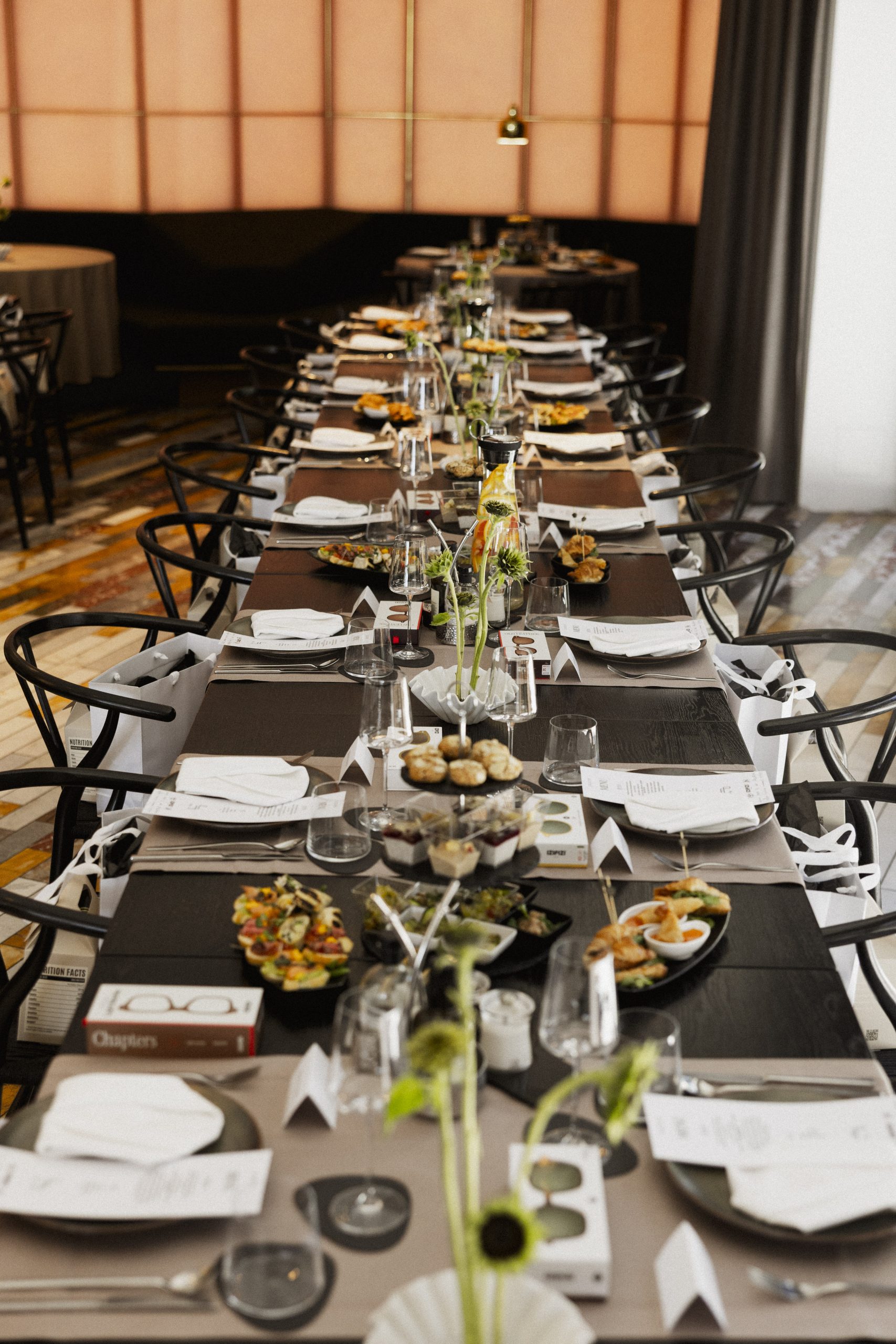 Za vizualni identitet i uređenje prostora zaslužan je Fior, čiji je prepoznatljiv estetski potpis unio dašak umjetničke jednostavnosti u svaki kutak. Ispred foto zida osmislili su upečatljiv cvjetni aranžman sa suncokretima bez latica – snažan, simboličan detalj koji predstavlja autentičnost i novu fazu rasta, dok su minimalistički aranžmani u istom stilu dodatno uljepšali stolove i prostor, stvarajući profinjenu, ali opuštenu atmosferu.