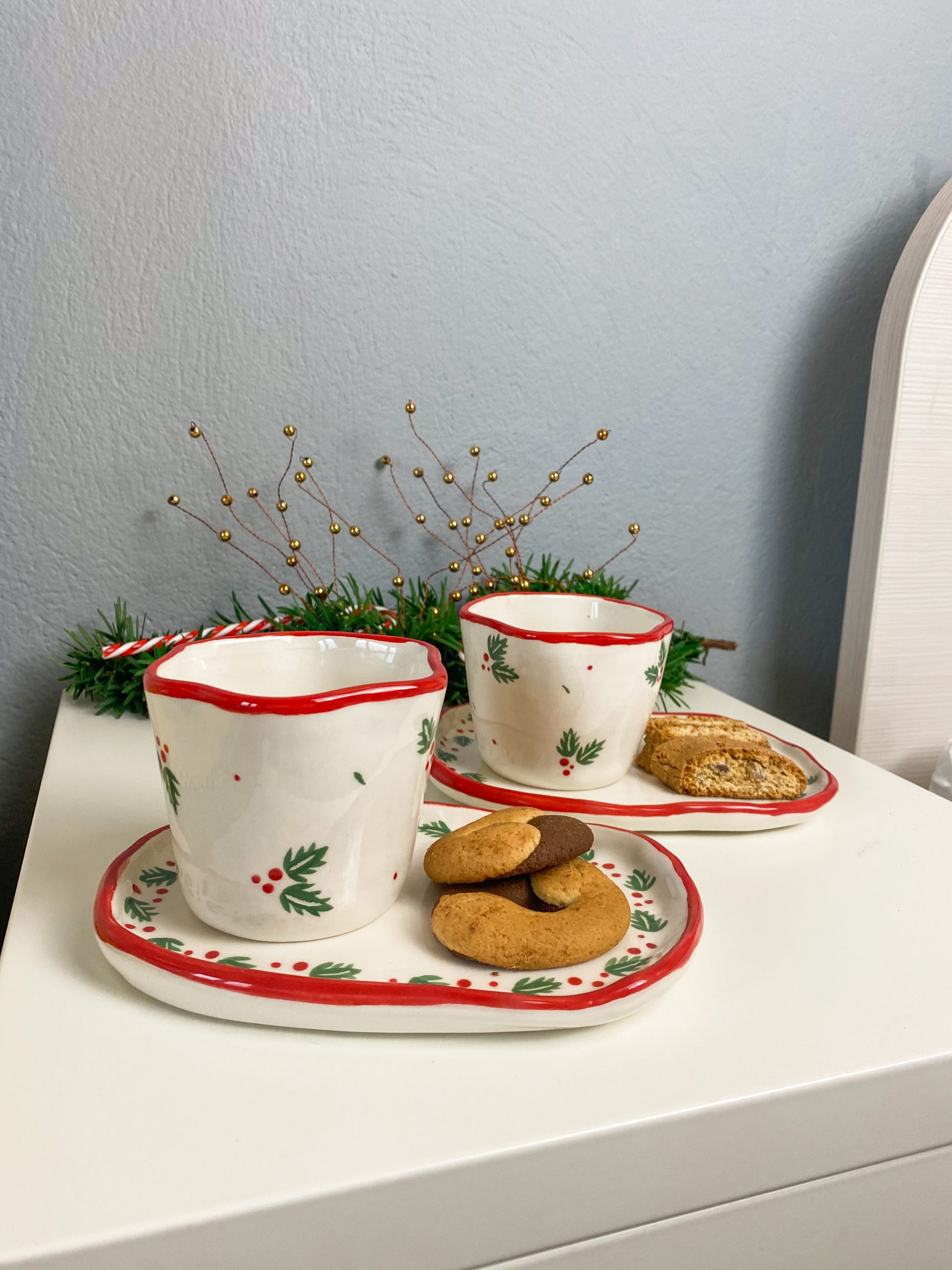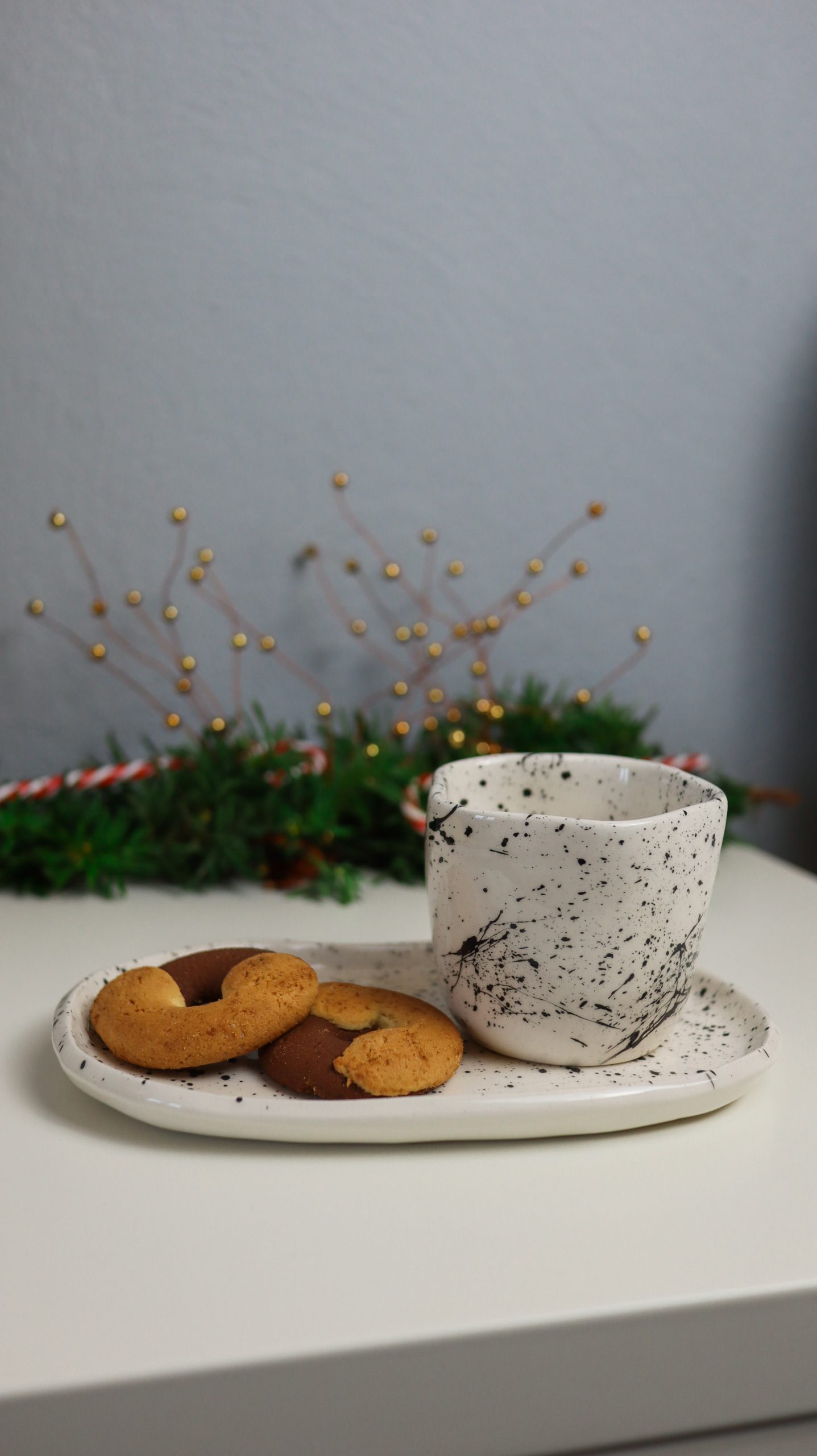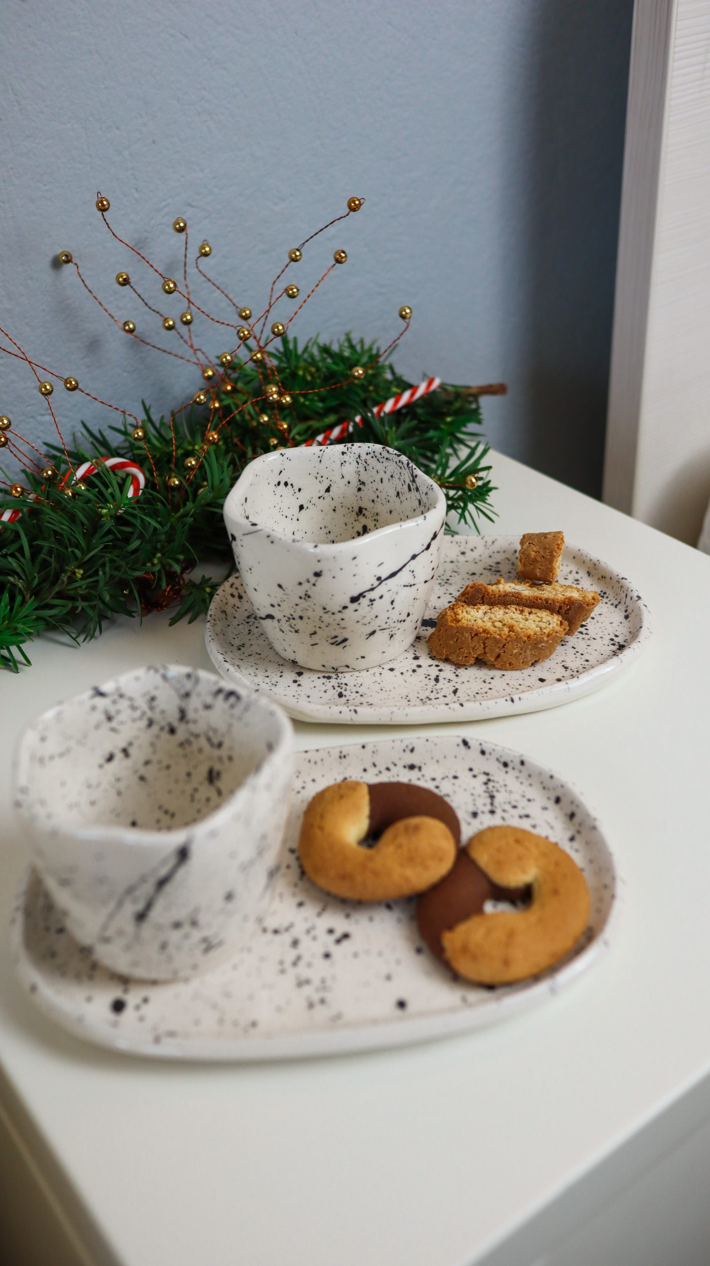 U ovoj blagdanskoj kolekciji očekuju vas dvije vrste dizajna. Za početak tu je poprskani crni šampus koji je već neko vrijeme favorit ljubitelja keramike pa ga je Barbara odlučila uključiti i u ovu kolekciju. Ostatak kolekcije prikladno za ovo blagdansko vrijeme i Božić ima motiv božikovine s akcentima u klasičnim božićnim bojama poput crvene i zelene.