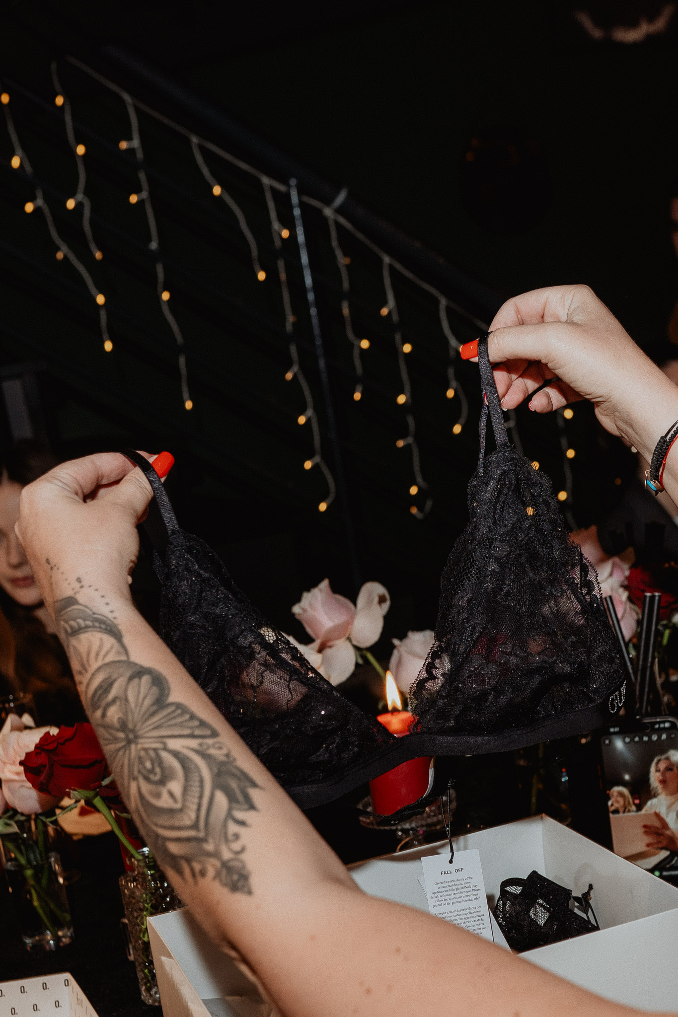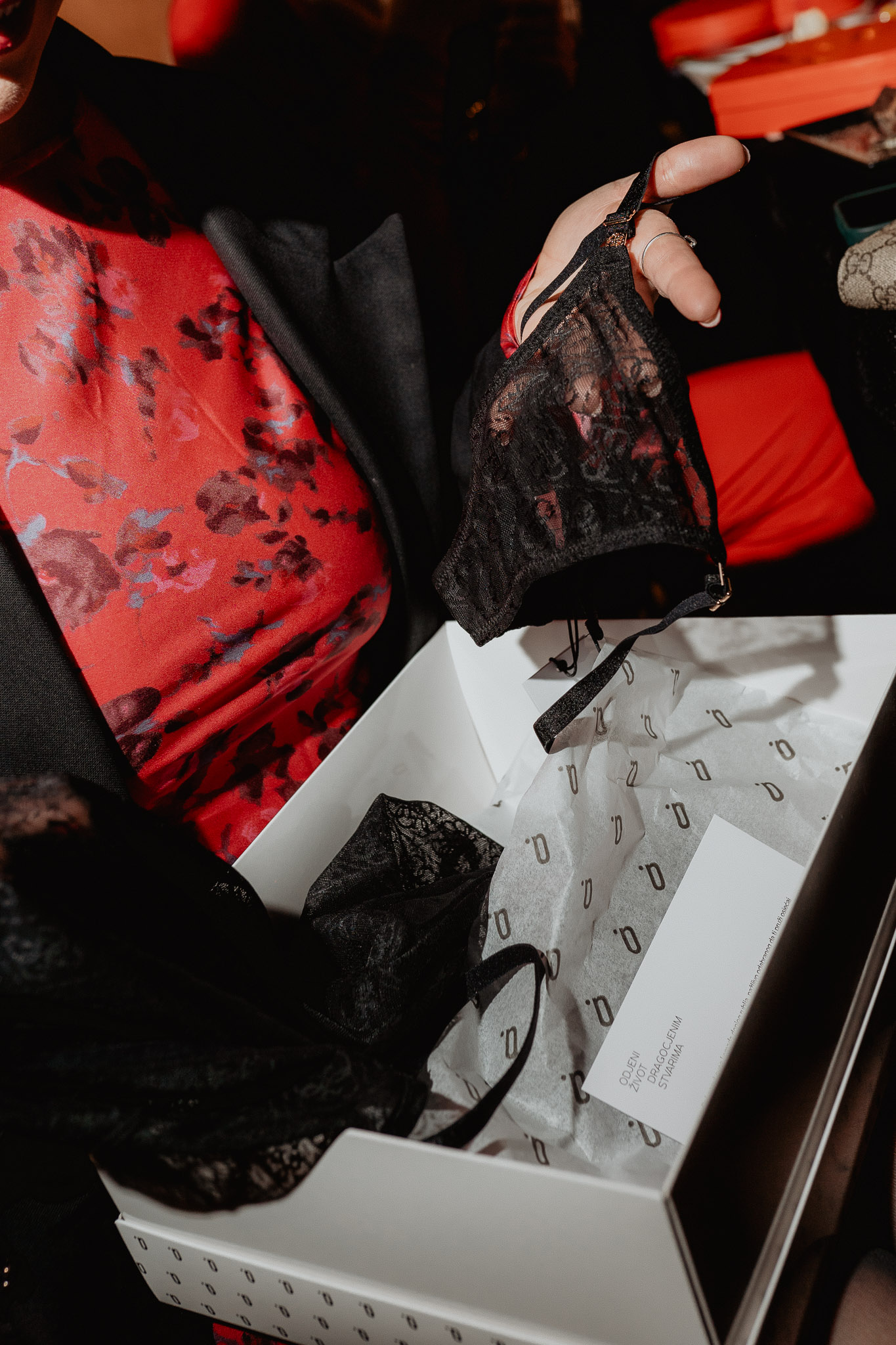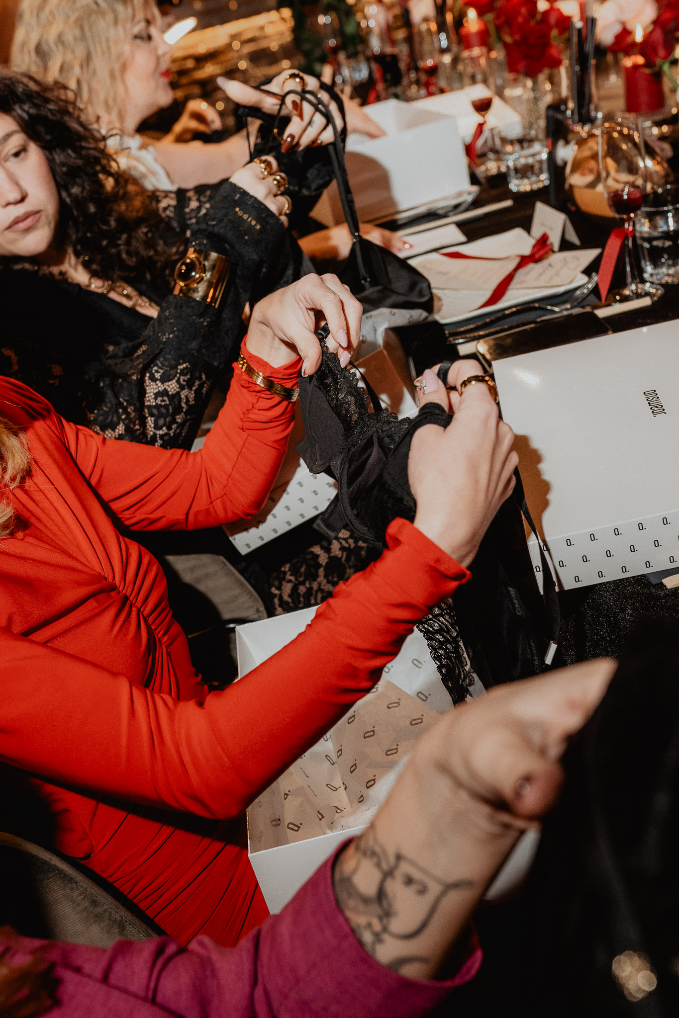 Prije predjela svaka uzvanica je dobila Answear.hr kutiju u kojoj se nalazio posebno odabran komad donjeg rublja baš za nju. Od elegantnih i upečatljivih God Save Queens setova, Guess spavaćica i tangi, Calvin Klein grudnjaka i gaćica, Emporio Armani setova, Answear Lab ogrtača s perjem, Juicy Couture pidžame do zavodljivih i udobnih modela koji su istovremeno odražavali osobni stil i estetiku svake uzvanice, čineći ovaj poklon nezaboravnim dijelom večeri.