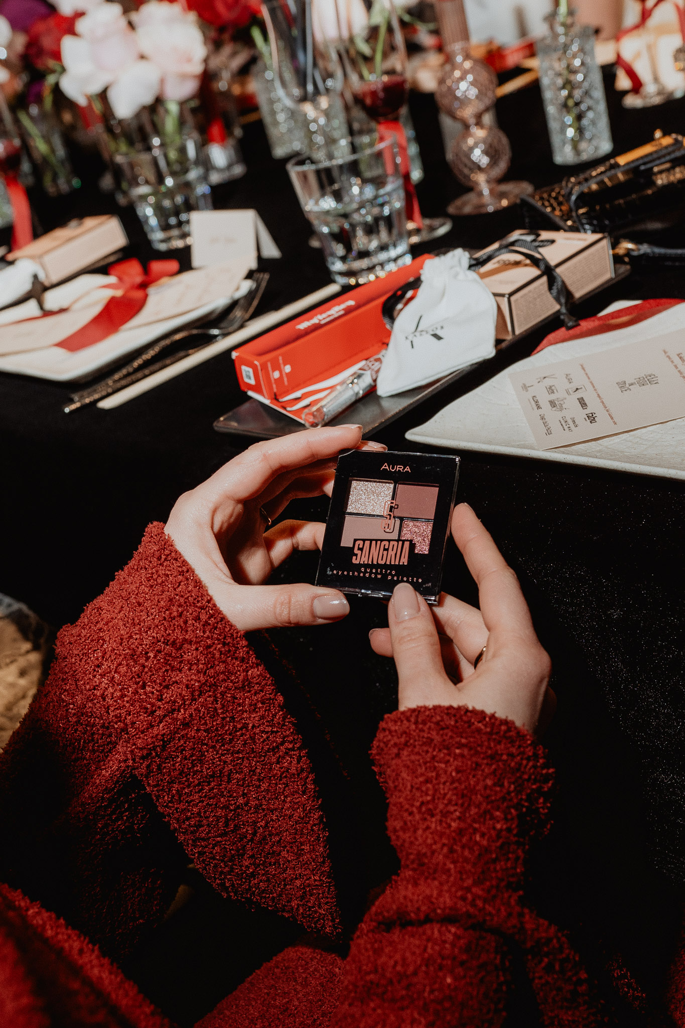 Odmah iza toga uslijedilo je “predjelo” u kojem se nalazila Aurina mini paleta Sangria u toplim tonovima idealna za kreiranje večernjeg i dnevnog looka te tonirani balzam za usne Butter lips koji njeguje usne uz nježan nanos boje. Našla se tu i Diego Dalla Palma MyToyBoy Extra Volume maskara koja omogućava dramatičan volumen, a poznata je i kao najveća maskara na tržištu – s impresivnih 17 cm duljine!