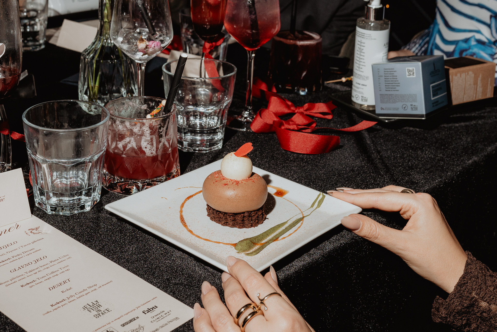 Našu JOLIE Galantines Dinner organizirale smo u restoranu Jellyfish in Space koji se smjestio u Martićevoj 71 u Zagrebu. Ova dobro poznata adresa nudi jedinstvenu kombinaciju fusion azijske i latinoameričke kuhinje, s naglaskom na sushi, tacose i bunse, ali i brojna druga jela koja zovu na isprobavanje. Jelly je također poznat po svojim inovativnim koktelima i opuštenoj atmosferi!