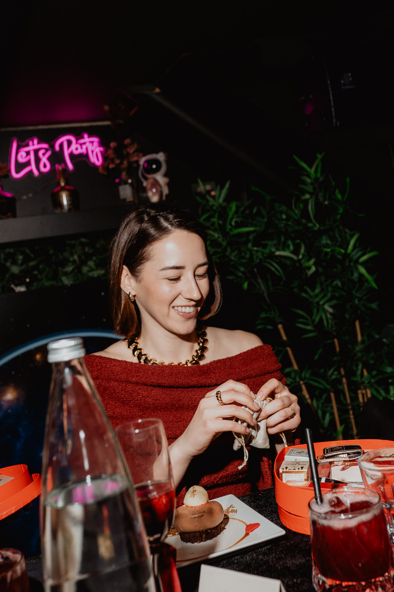 Za predjelo isprobale smo kozice u tempuri, gyoze i tacos piletinu i koktel Pinky Dream od prossecca, pirea od maline i svježih malina. Glavno jelo uključivalo je bunse s piletinom, yakitori losos i platu Uchu sa selekcijom raznih vrsta sushija uz koktel Tom Collins Twist na bazi gina s limunom, simple sirupom i sodom. Desert je pratio vizualno zanimljivi koktel Jelly Candy Shop na bazi vodke s pireom od jagode, limunom, bubble gum sirupom i sokom od brusnice.