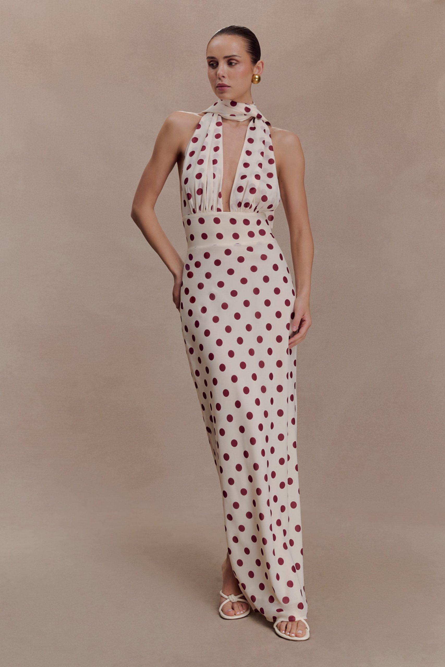 Model haljine se zove Nadine Halter Chiffon Maxi Dress, a dolazi u verziji boje bjelokosti s točkama boje vina, između ljubičaste i burgundy crvene. Uz halter vezanje oko vrata te usku siluetu koja savršeno naglašava liniju ženskog tijela, riječ je o haljini koja se odlično može uklopiti i u svečane lookove, ali i u casual prilike kada samo želite biti ‘malo sređeniji’. Bez obzira nosili je uz jednostavne sandale ili uz elegantne potpetice, uvijek izgleda sofisticirano.