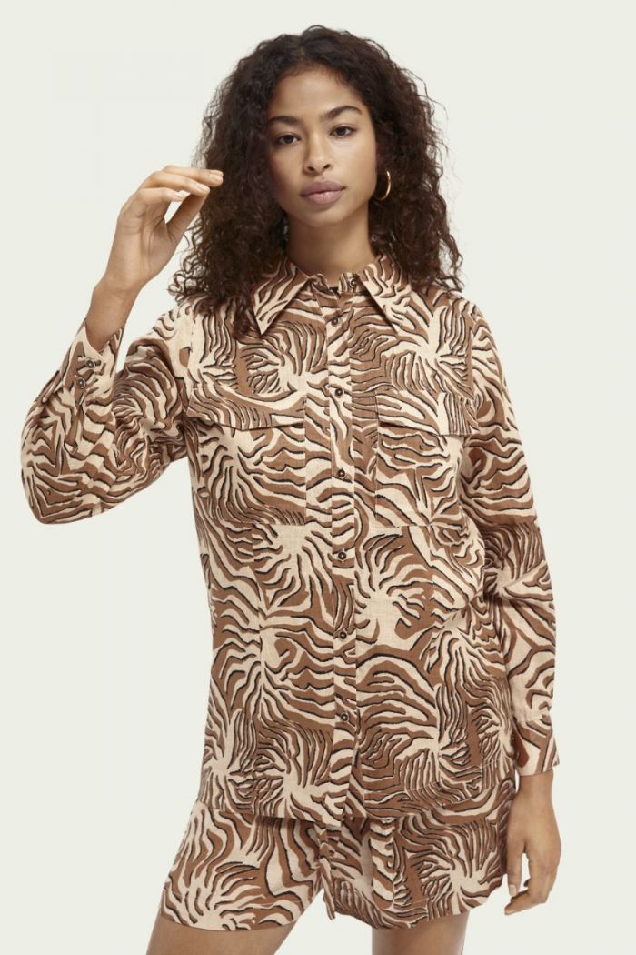 Između ostalog, brend Scotch & Soda prepoznatljiv je po upečatljivim i jedinstvenim uzorcima pa smo za vas izdvojili košulje, haljine, suknje i hlače koje će zasigurno privlačiti poglede, a uz to su idealni za toplu sezonu pred nama. Posebno vrijedi spomenuti košulju s mašnom koja ima šarmantni print aviona, sunca, mora i oblaka, a tu su i vibrantne haljine u smeđim, crvenim i žutim nijansama koje mogu funkcionirati od jutra do mraka, ovisno kako ih stilizirate.