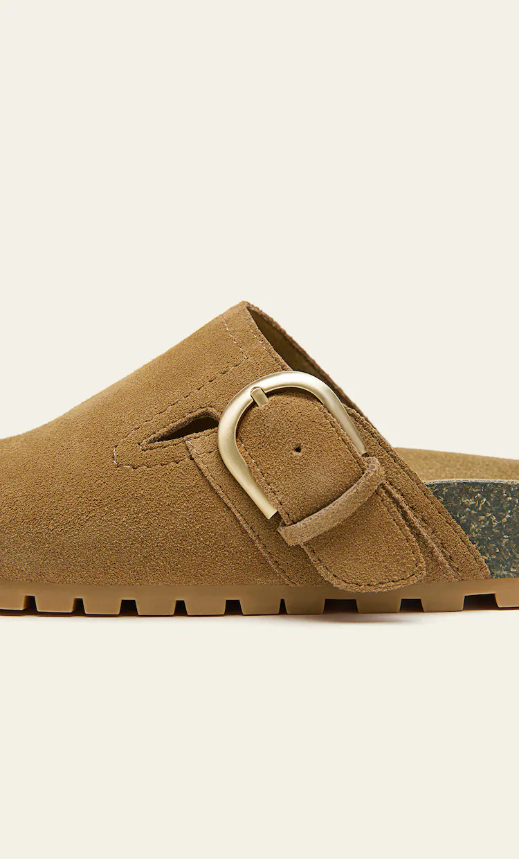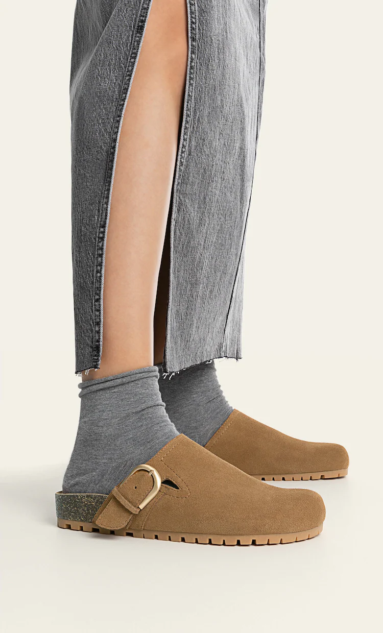 Želite li pak uskočiti na ovaj trend, ali po nešto povoljnijoj cijeni, zavirite u ponudu Stradivariusa! Naime, u ovom high street brendu možete pronaći natikače u bež i smeđoj boji koje neodoljivo podsjećaju na Birkenstockov Boston. Napravljene su od goveđe kože, a nabaviti ih možete po cijeni od 29,99 € te nositi do kraja ljeta i u prvim jesenskim danima.