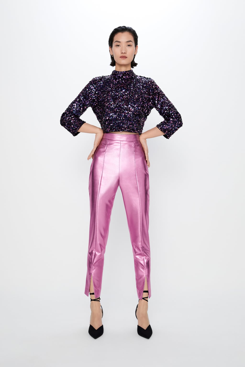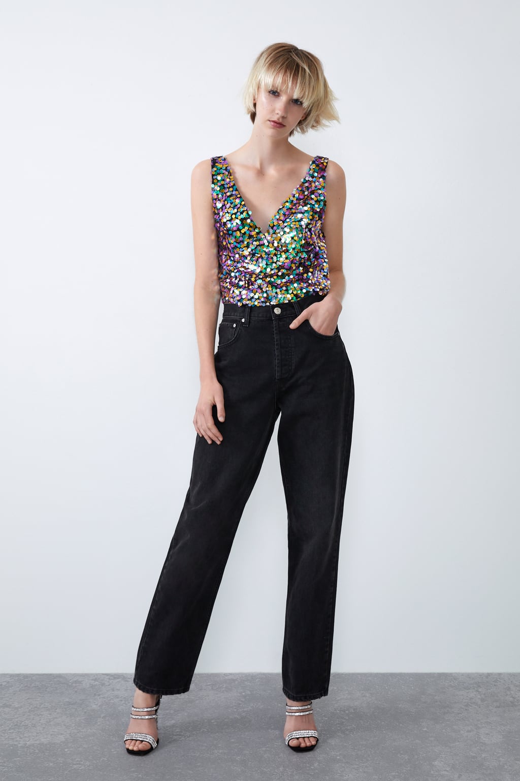 Okosnica kolekcija su svakako šljokice i sjaj koji ćete pronaći na haljinama i topovima, a vrijedi i čekirati sandale posute kristalima koje su pravi statement komad. Za one koji izbjegavaju upečatljive šljokičaste komade tu su satenske haljine, sako s naglašenim ramenima i baršunasto odijelo. Svi komadi se lako mogu kombinirati jedni s drugima, a u nastavku pogledajte one koji su nama ukrali pozornost.