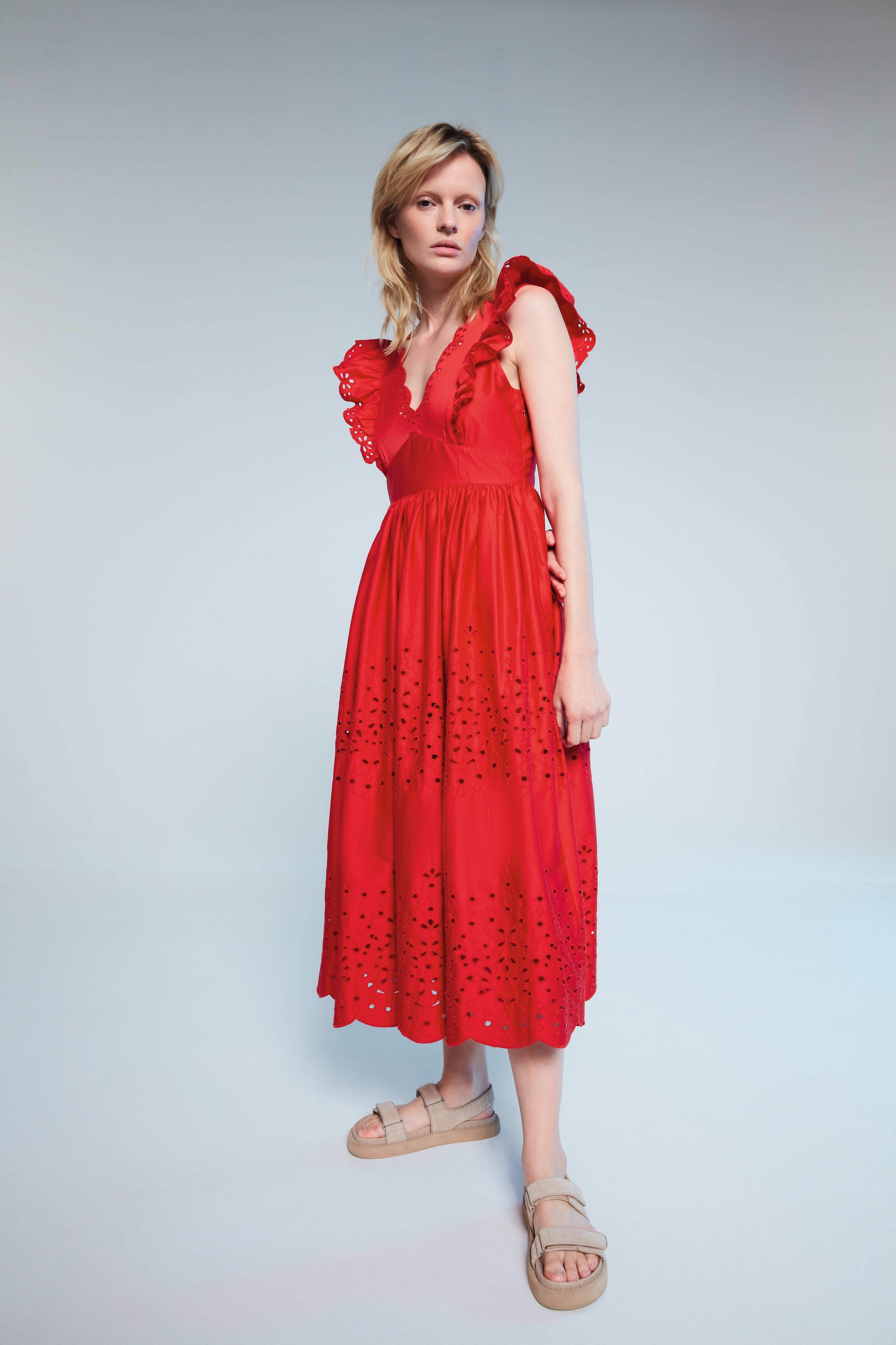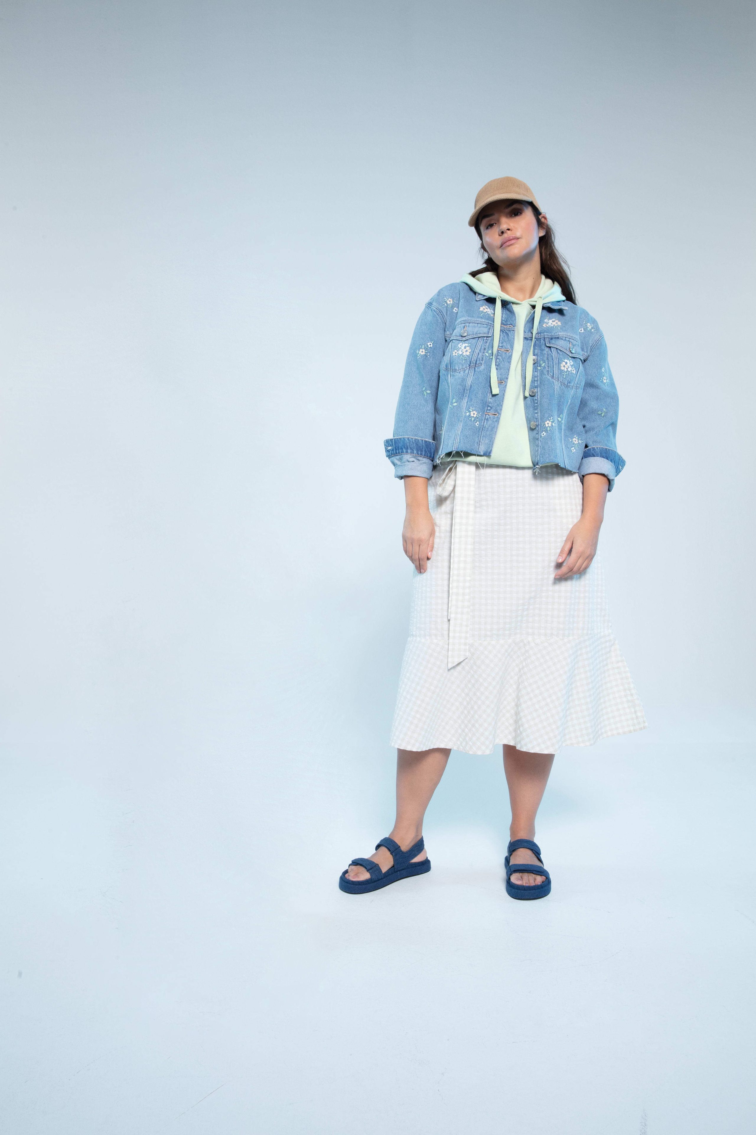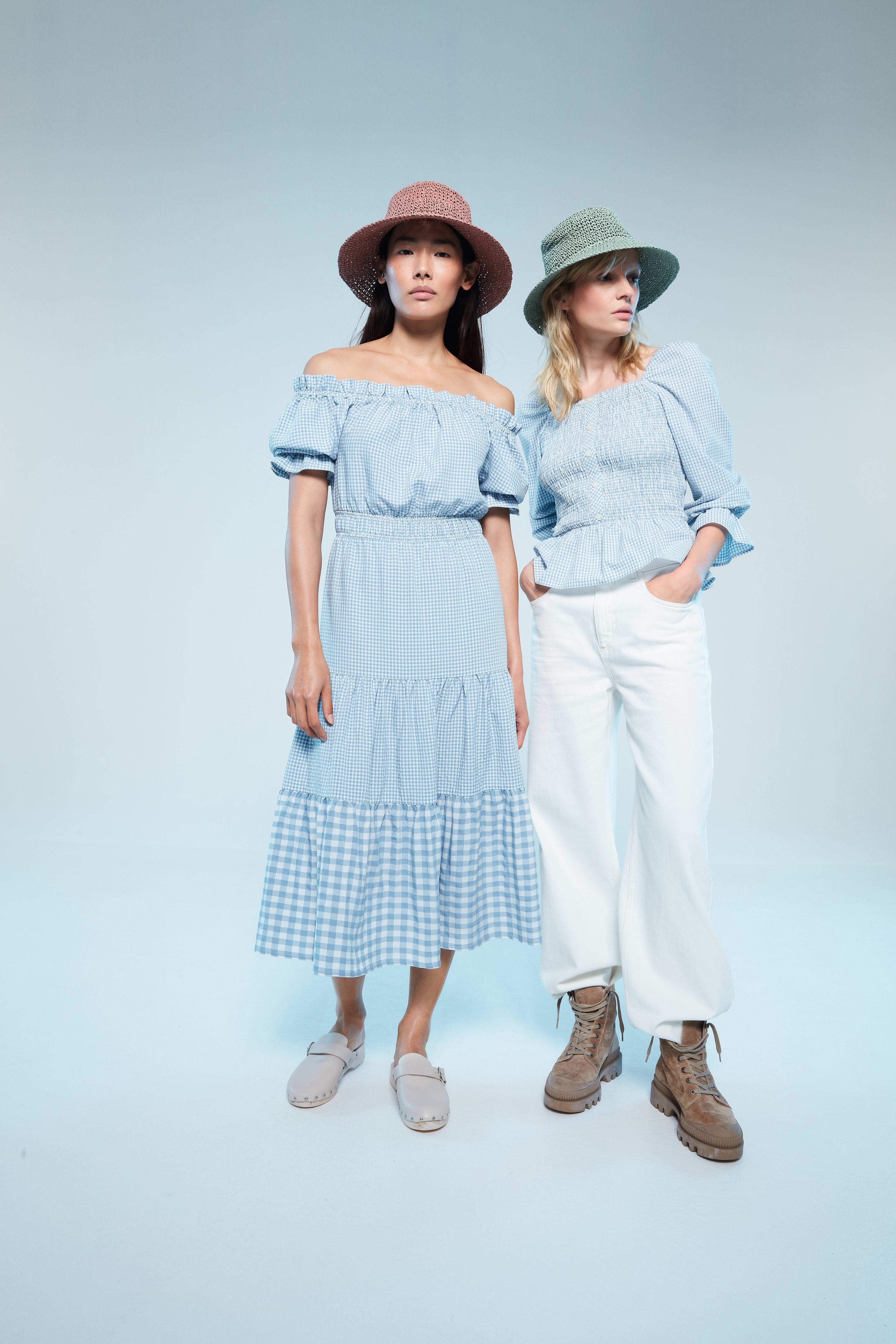 Vichy uzorci i brojni cvjetni printevi ostavljaju snažan dojam čak i u mirnijim tonovima. Krep materijali, rebrasto pletivo, heklane trake i konac su tkanine koji čine obris ove kolekcije. Bež denim iz Cradle to Cradle Certified® materijala – globalno prepoznate jedinice za sigurnije i održivije proizvode izrađene za cirkularnu ekonomiju – također su dio ove kolekcije. Ovi denim komadi su inspirirani radnom odjećom kao što su traper jakne, kombinezoni i poderane traperice. Isprani denim daje kolekciji retro izgled; boja je svjetlija, a kroj je širi, nježniji i opušteniji. Dodaci kao što su šeširi i pletene torbe upotpunjuju savršen ljetni izgled.