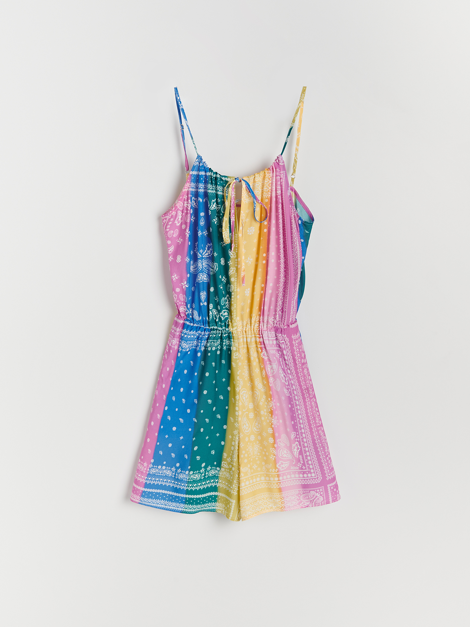 Što se tiče ukrasnih elemenata, kroz cijelu kolekciju nailazimo na aplikacije voća, duge, srca ili yin yang-a. Teksture su pletene, krep ili frotirne, a uzorcima prevladavaju kockice zeleno-bijelih kombinacija, ljeti neizostavne prugice i spiralni tie dye. Što se tiče modnih dodataka, sve što nam treba nosimo sa sobom u heklanim i patchwork vrećicama s resama, dok kombinacije zaokružujemo heklanim pastelnim šeširima i natikačama s plaformom.