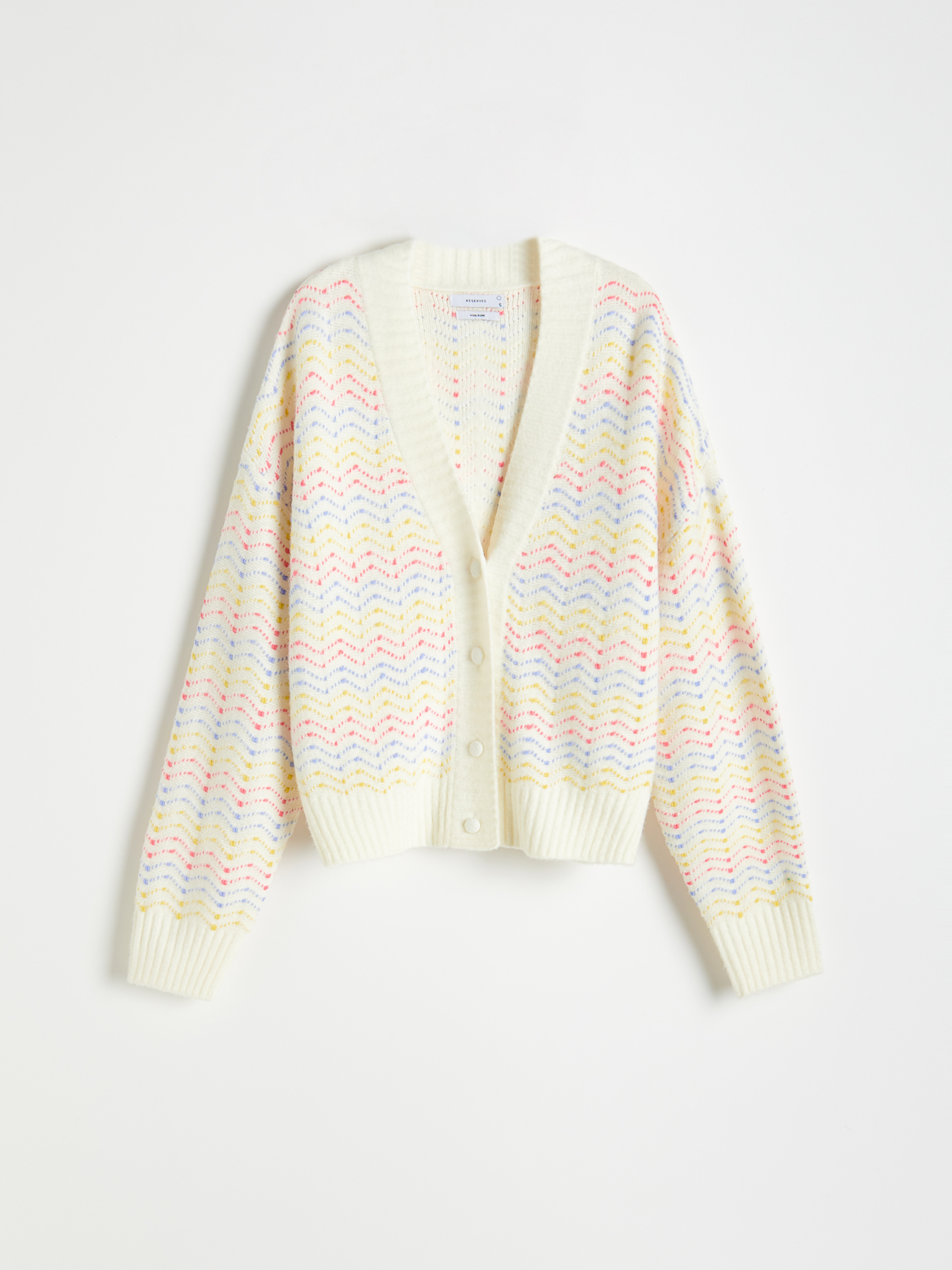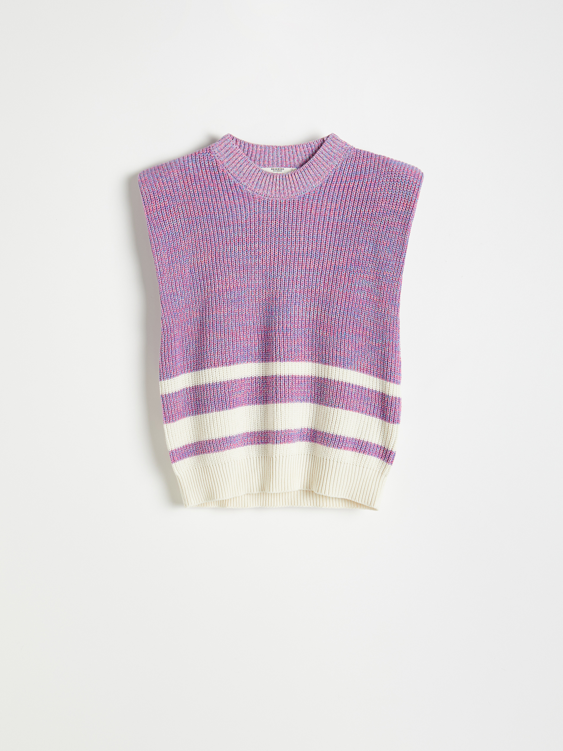 Nijanse lila i ljubičaste susreću se sa zasićenom ružičastom i dubokom, sočnom zelenom dok je tirkizna prošarana kobaltnom i svijetlo plavom bojom. Reserved je poznat po raznolikosti u strukturama, a ova kolekcija je bogata različitim svjetlucavim, pletenim, nabranim i prošivenim materijalima. Dizajn omogućuje različito kombiniranje pojedinih elemenata, a poseban focus je na kompletima pletiva s hlačama ili suknji s prslukom – primjerice minica i prsluk s podstavljenim ramenima. Moderna estetika ovdje se susreće i s uzorcima inspiriranim zanatom, a uključuju posebno dizajnirani jacquard s motivom koji podsjeća na papirnate piñate. Korištene boje samo se naizgled sukobljavaju, stvarajući zapravo očaravajuće, umjetničke kompozicije. Tu su i elementi trapera, ali umjesto klasične plave, kreirani su u candy pink, lila i svijetlo plavoj boji. Komadi su izrađeni od trapera koji je mekši od klasičnog kako bi se dobro uklopio u praktične, ali istovremeno ženstvene krojeve.