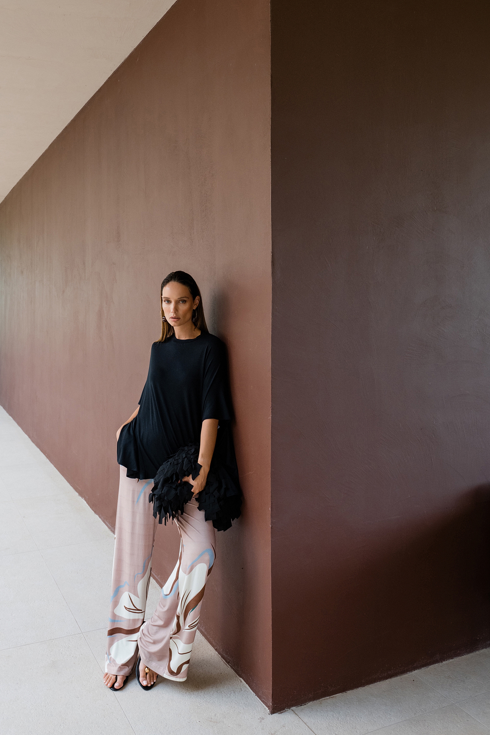 Tkanine? Njegujuće, gotovo baršunaste. Lenzing™ MicroModal, brušeni japanski pamuk, viskozne mješavine koje plešu s tijelom. A printovi? Tu su, ali pažljivo dozirani. Bloom. Pearl. Terra. Ne viču. Ne žure. Samo postoje – poput onih trenutaka između.