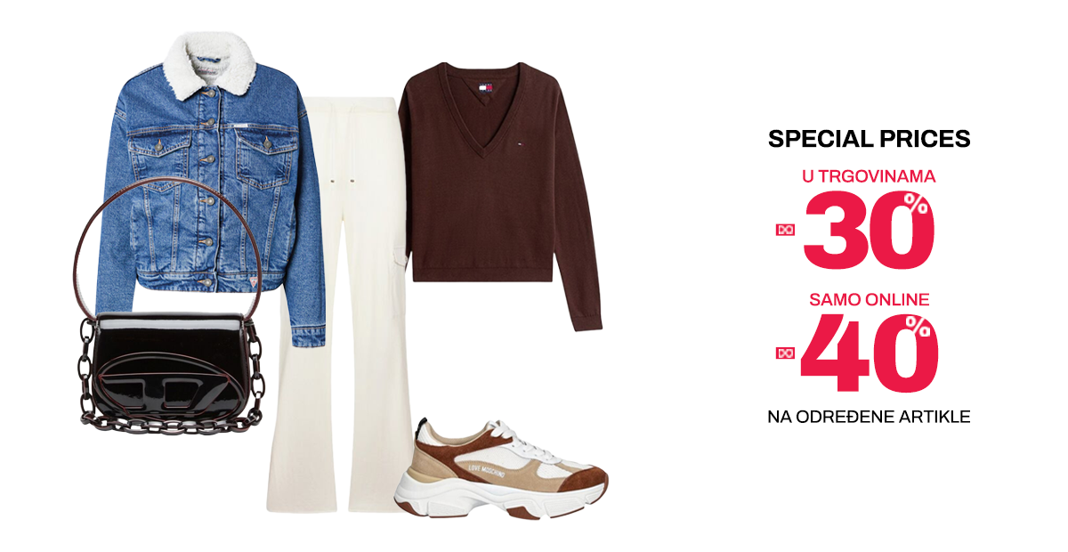 Akcija se odnosi na pažljivo odabrane modele iz aktualnih kolekcija svjetskih brendova kao što su Guess, Liu Jo, HUGO, Calvin Klein, Steve Madden, Tommy Hilfiger, Superdry i brojni drugi – savršeno za sve koji žele osvježiti garderobu modernim, urbanim i trendi komadima.