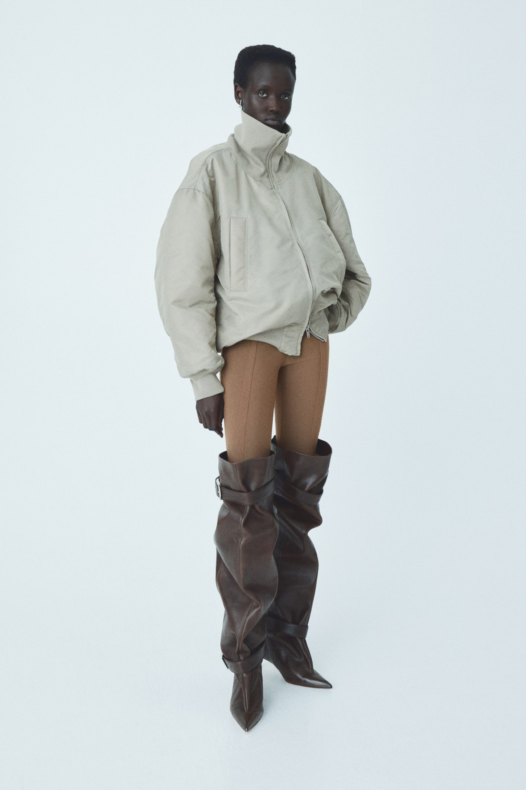 Kroz ove kontraste, kolekcija H&M Studio AW25 otvara nove mogućnosti i naglašava sirovost materijala – izložene postave, šavove i kopčanja na haljinama, pletivima, tajicama i gornjoj odjeći. Sirovi rubovi, peplum detalji, drapirani elementi i vidljivi patentni zatvarači dodatno ističu konstrukciju jakni, bluza i hlača.