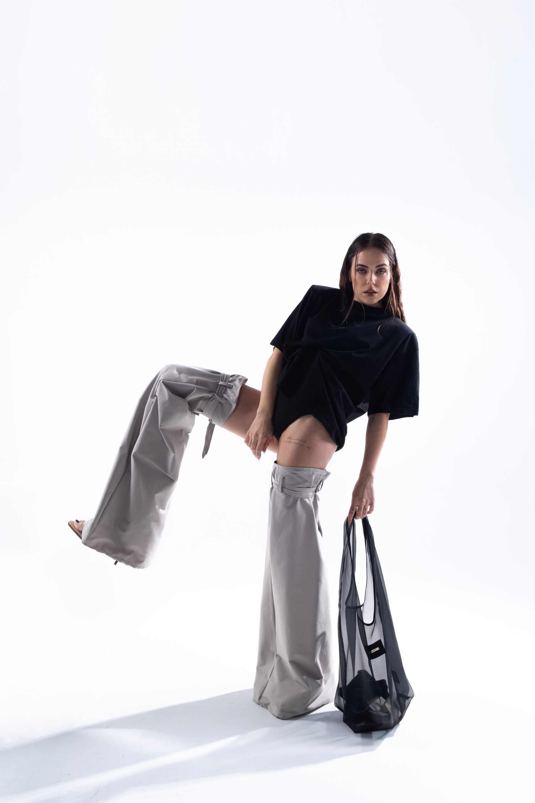 Crna, poluprozirna silueta s metalnim potpisom. Dizajnirana za dane koji ne završavaju u 17h. Od jutra do večere, od studija do grada jedna torba, bez granica.