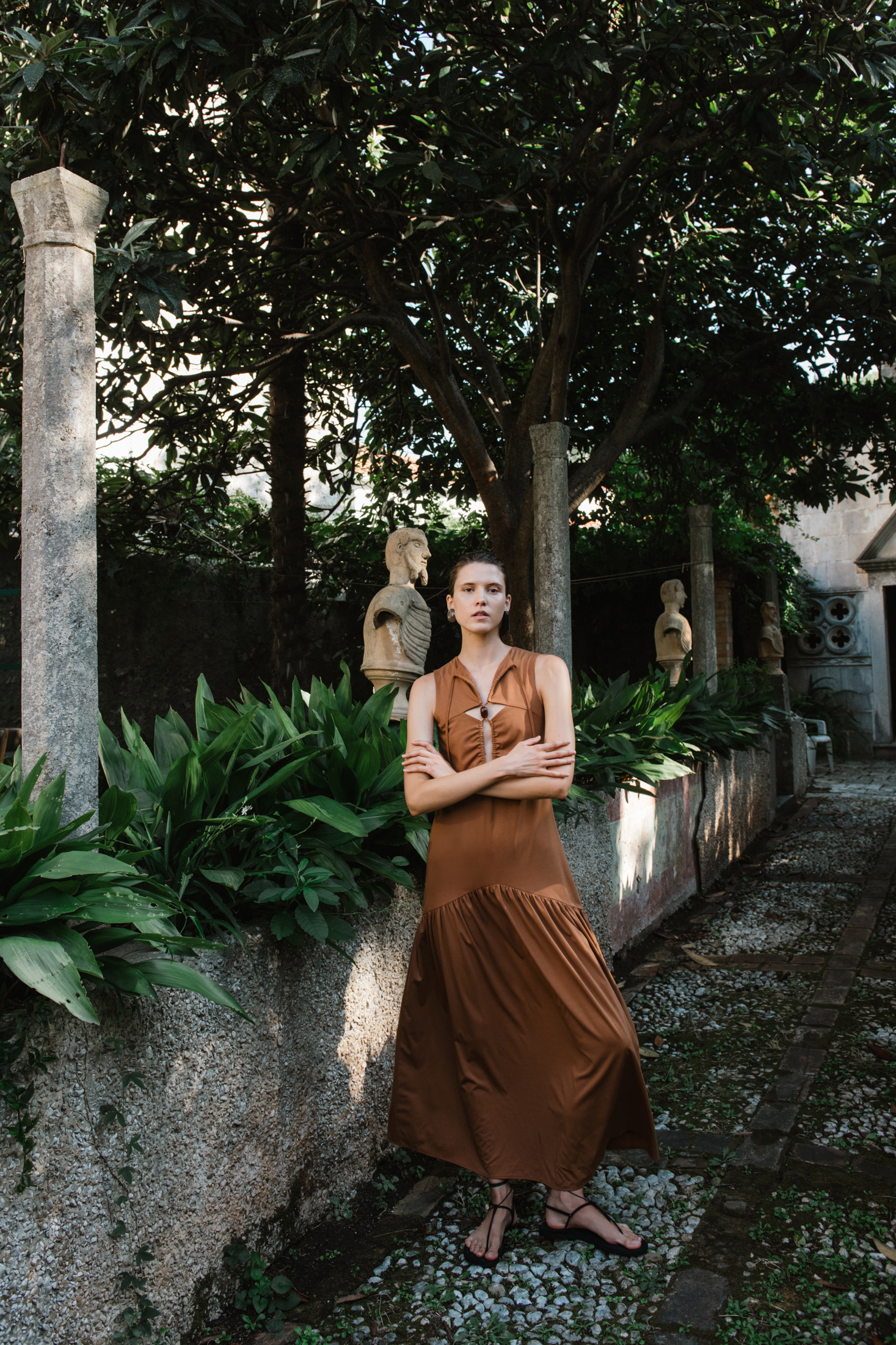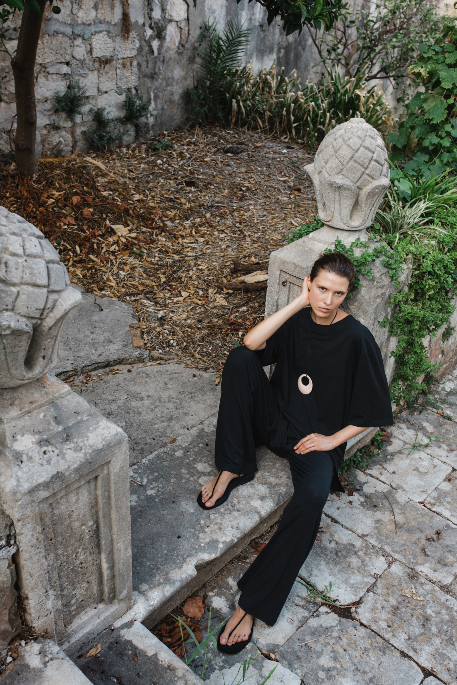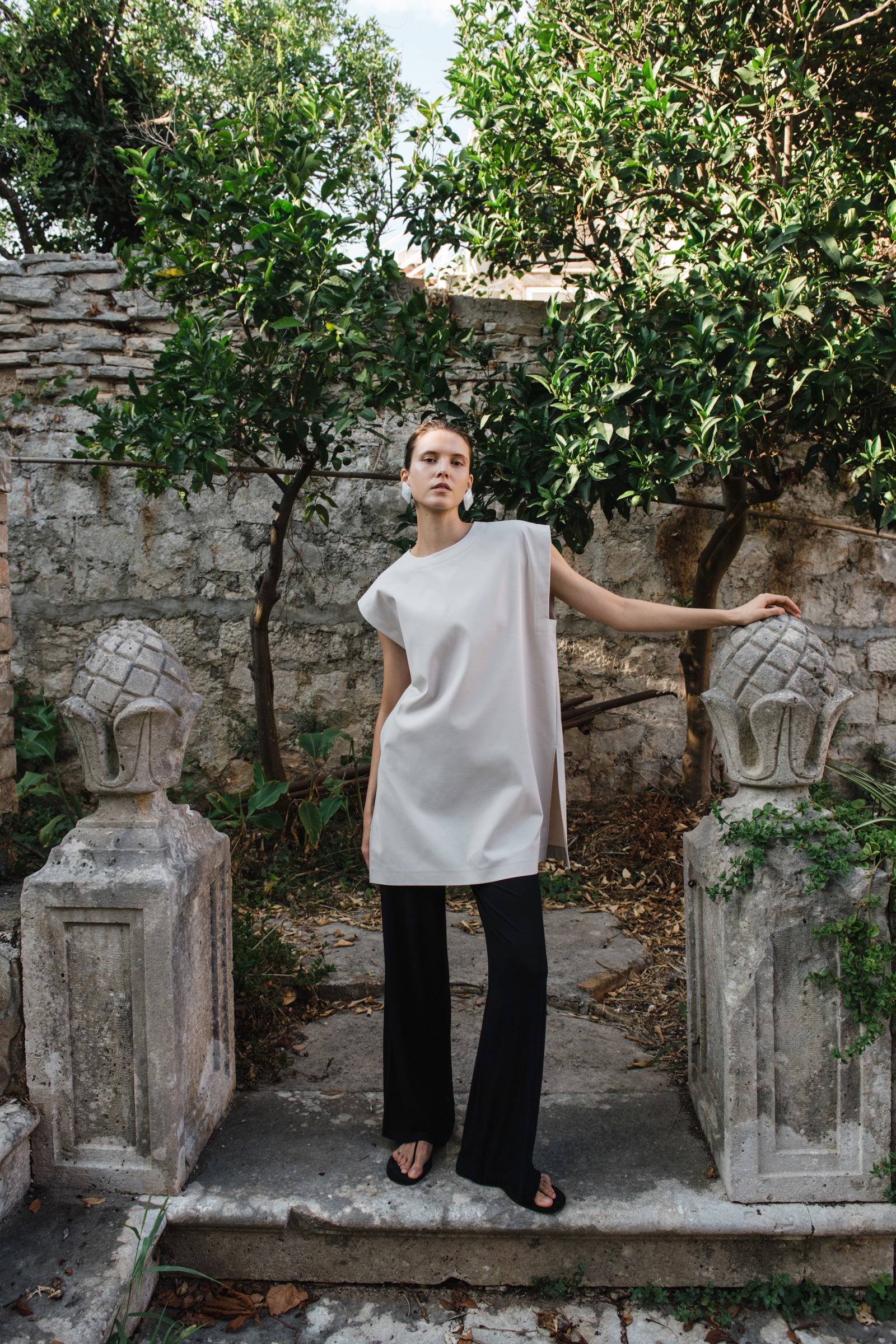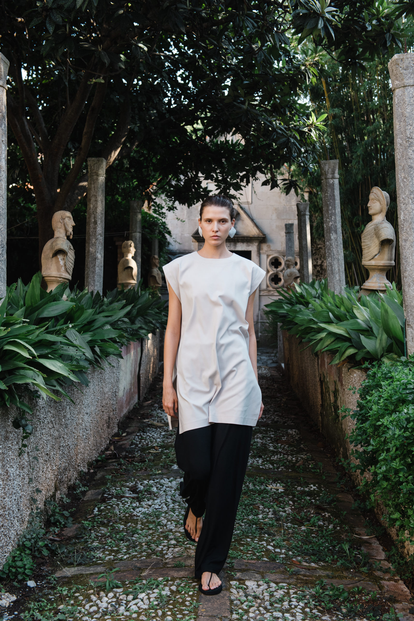 Model sa svjetskom karijerom, Sara Sorić, svojom je jednostavnom, a snažnom pojavom utjelovila duh žene koja je samouvjerena, slobodna i povezana s prirodom. Njezina prisutnost u raskošnom vrtu, okružena biljkama koje cvjetaju u punom sjaju ljeta, stvorila je prizor koji balansira između suvremenog dizajna i drevne ljepote mediteranskog pejzaža. Sara Sorić je svojom prirodnom gracioznošću savršeno utjelovila A’MARIE – ženu koja pronalazi inspiraciju u prirodnim ljepotama koje ju okružuju.