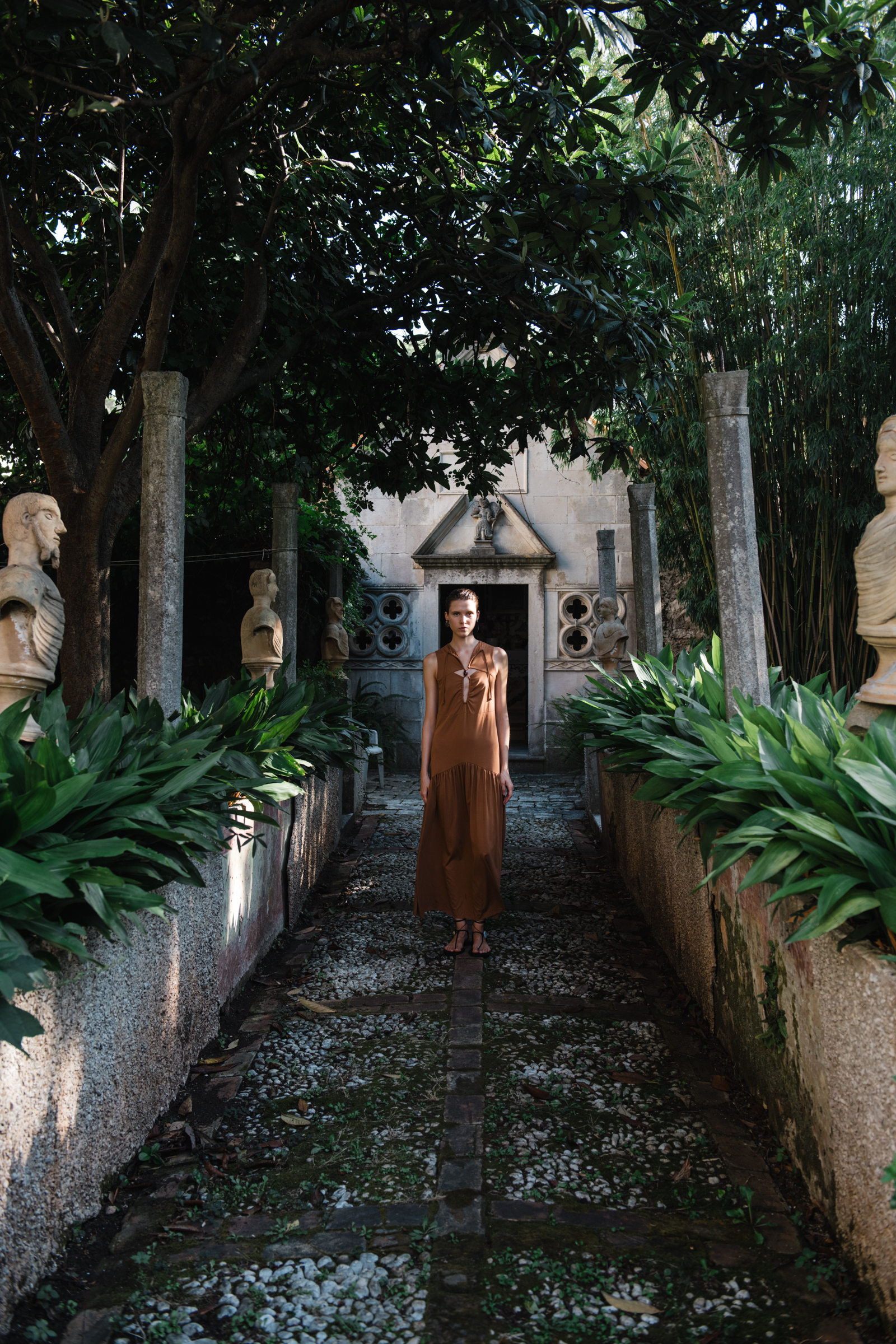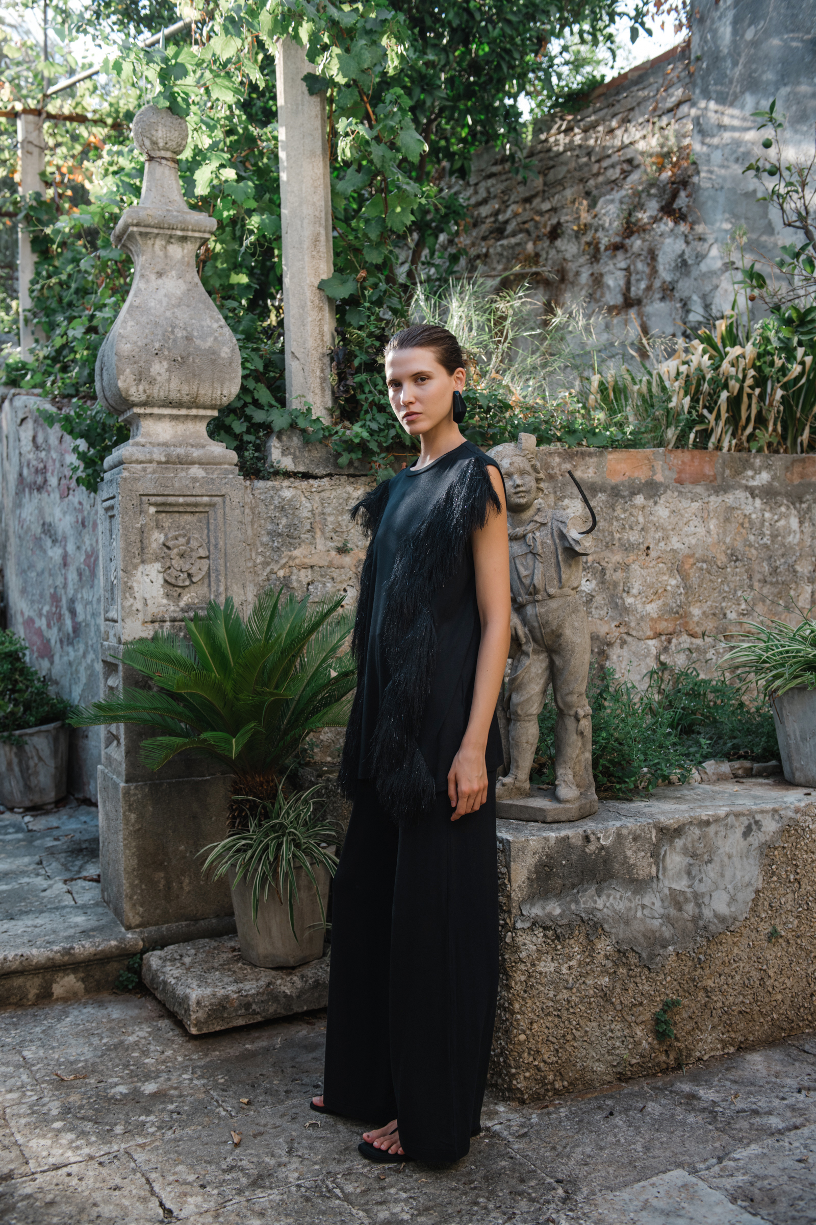 Snimanje u srcu Korčule, u povijesnoj kući Foretić okruženoj bujnim vrtovima, dodatno je naglasilo magiju ove kolekcije. Vrt bogat pergolama, šetnicama i terasastom strukturom postao je idealna kulisa za SUNSET SOIRÉE kolekciju, dok je svaki kutak kuće pretvoren u platno na kojem je istaknuta profinjenost A’MARIE komada. Povijesni elementi kuće, od ručno izrađenih detalja do prirodnih materijala koji svjedoče o prošlim vremenima, savršeno su naglasili suvremeni dizajn prikazan u ovoj modnoj kampanji.