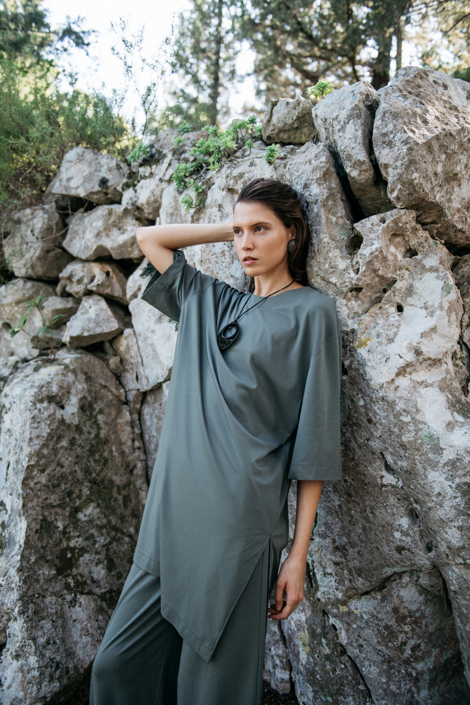 Osnovni krojevi, jednostavni i čisti, postaju platno za ekscentrične detalje koji svaki komad podižu na novu razinu. Oversized, minimalistički modni dodaci donose sa sobom nostalgičnu privlačnost. Bez obzira na priliku, savršen su način da unesete dozu vintage glamura u svoj izgled, dok istovremeno slavite duh prošlih modnih era. Bilo da birate ženstvene mini haljine Anuk i Aki sa svojim ležernim linijama, ili se odlučite za predivnu maksi crnu haljinu Nami ili maksi haljinu Yuki, koji osiguravaju fluidnost i eleganciju u svakom pokretu, ovi komadi garantiraju besprijekoran izgled od jutra do večeri. Majica Sora, majica Zaja i tunika Yumi, svilena bluza Rei i topovi Oki donose bezbroj mogućnosti za opuštene kombinacije s vašim omiljenim suknjama, hlačama i nezaobilaznim Jen trapericama izrađenim od mekanog, organskog pamuka. Posebni statement komadi, poput majice Cala i mini suknje Etta, osiguravaju da budete primijećeni.