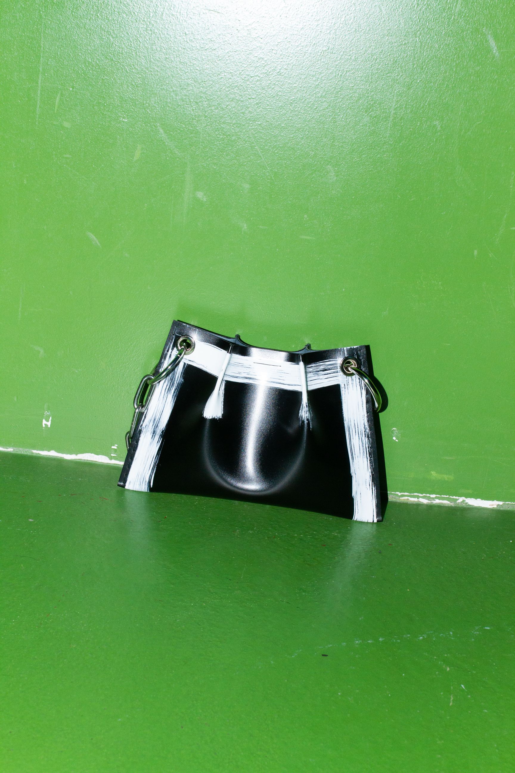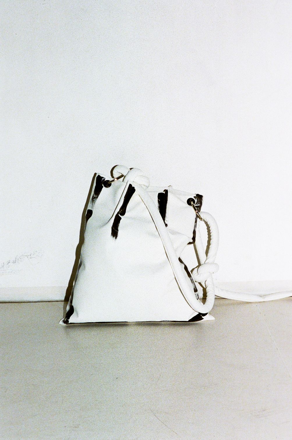 FALLFALLFIVE donosi i novi model popularnih KLISAB torbi. Pillow bag naziva Tvoja, predimenzionirane XL veličine, mekane forme i s prepoznatljivim ušicima na osnovi, kreirana je u crnoj i bijeloj boji s kontrastno oslikanim konturama. Kožnati modeli ručno su oslikani slobodnim potezima po cijeloj osnovi ili samo naglašavajući konture, uz sezonski redizajn ručki.