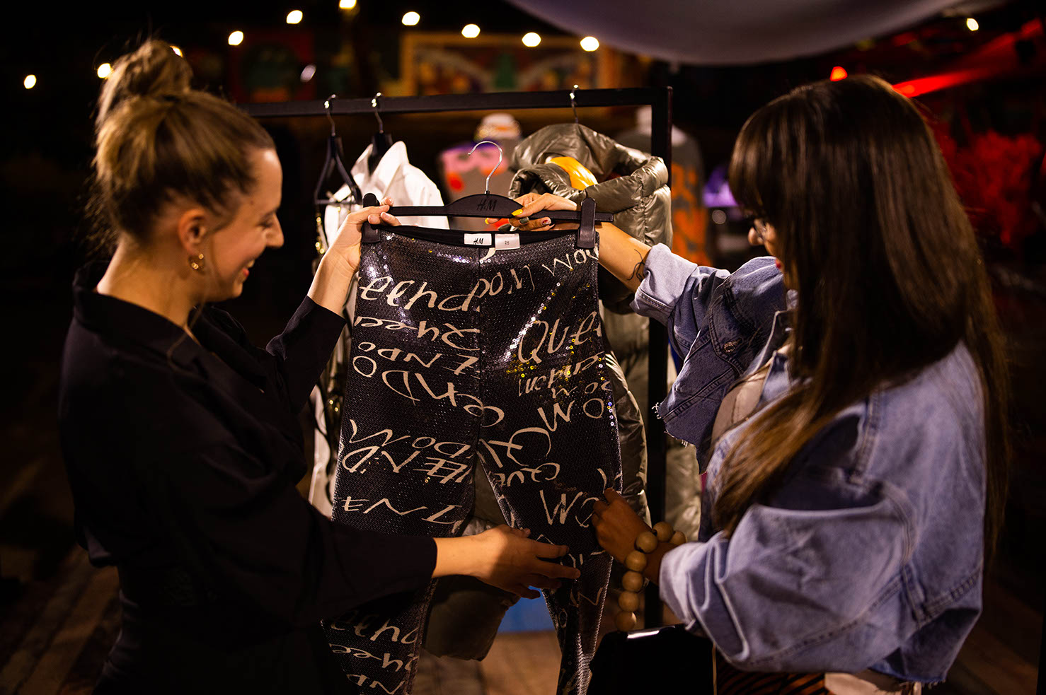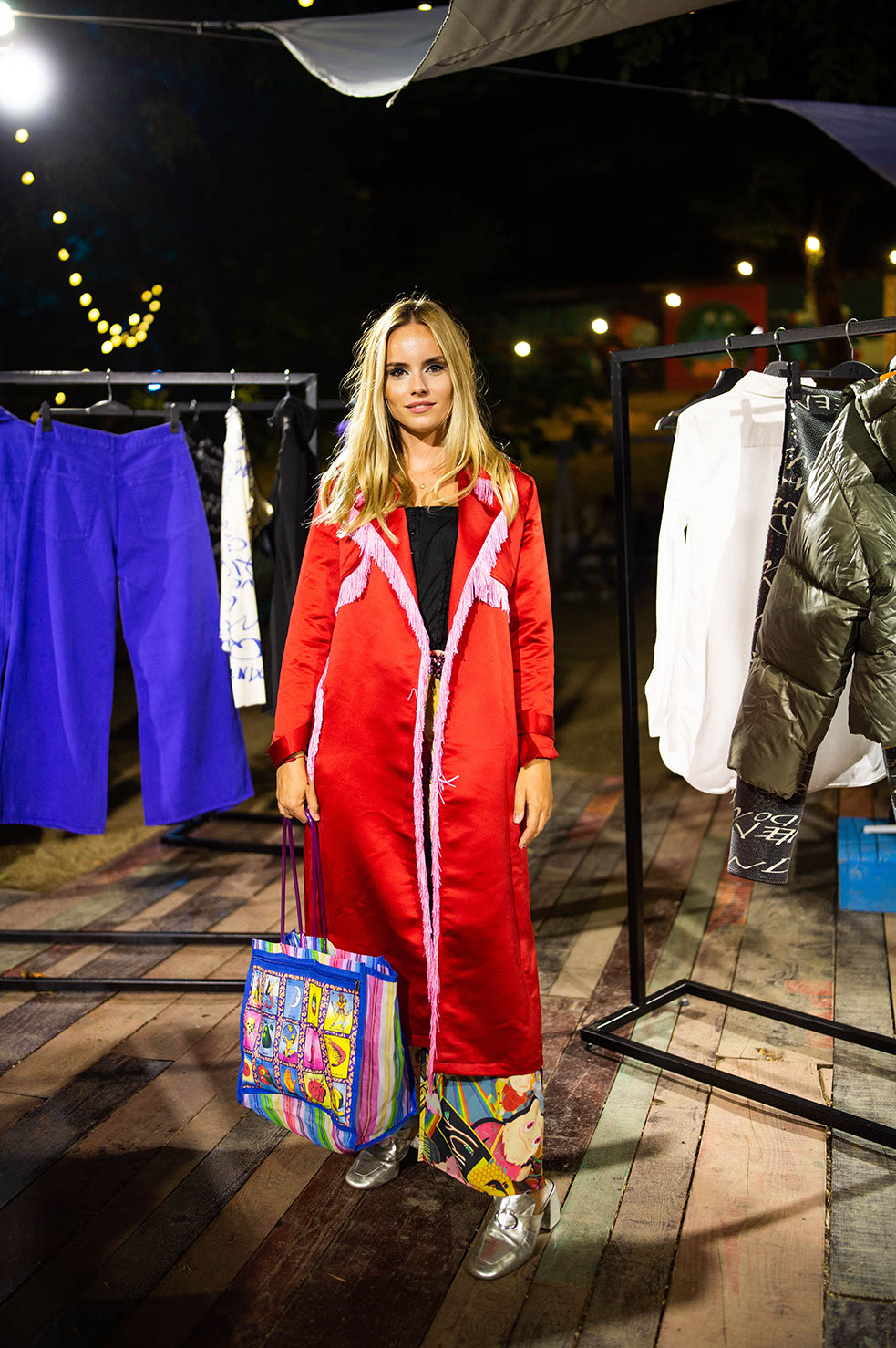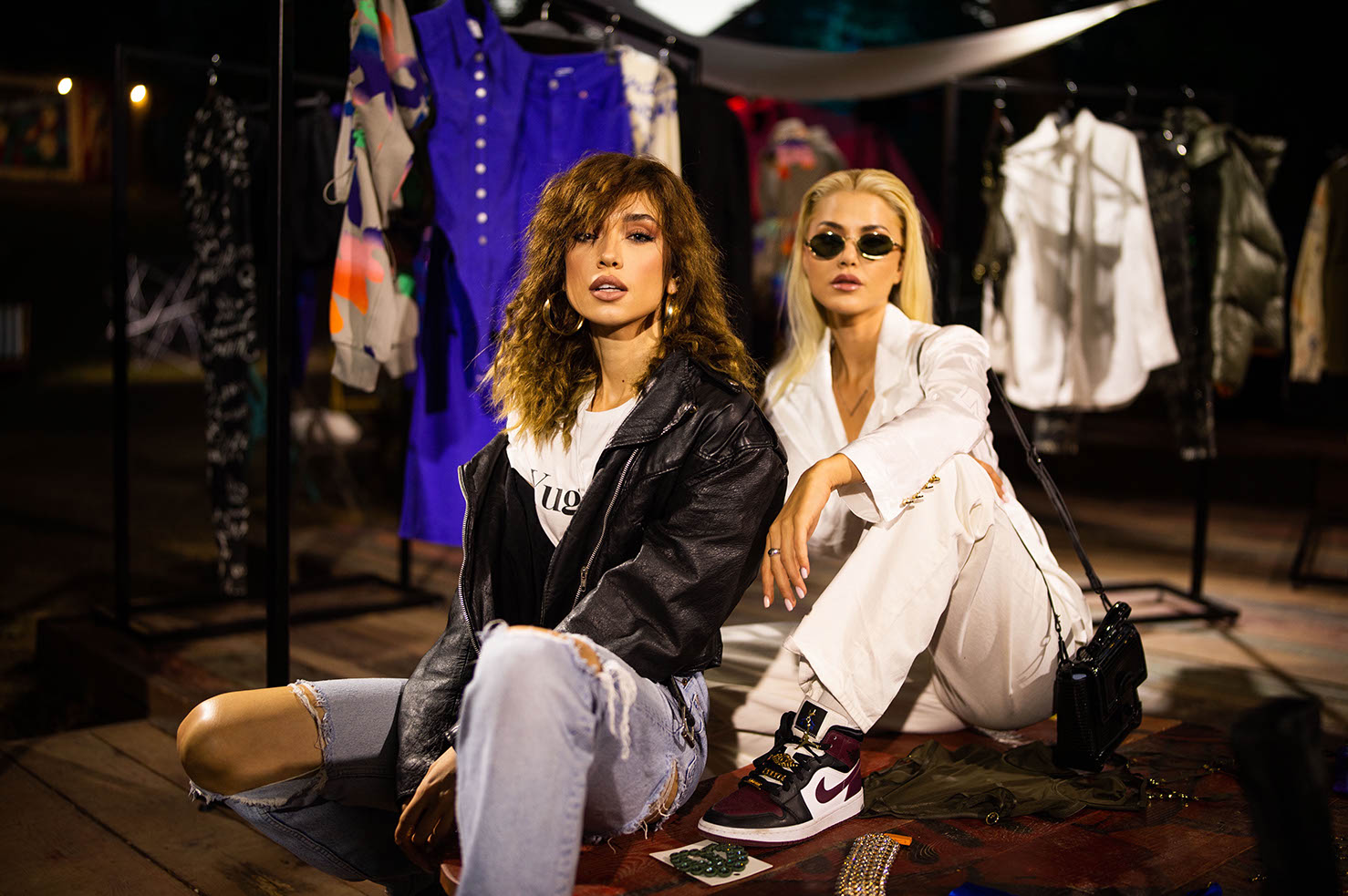 “Puffer“ jakne, mini plesna „puff“ haljina i niz hlača širokih nogavica sa zanimljivim otvorima na koljenima ključni su komadi. Svakako valja istaknuti i suvremenu varijaciju trodijelnog prugastog odijela: uska jakna i prsluk u kombinaciji s hlačama vrećastog kroja. Mrežasti topovi posuti umjetnim dragim kamenjem, kao i poput druge kože uski kombinezoni i tajice, hrabro mijenjaju i naglašavaju siluetu. Modni dodaci miješajući glamur i borbenost drže se načela maksimalizma – “više je više” pa nas očekuju gumene ogrlice prstenastog oblika i „choker” koji podsjeća na vodopad u kombinaciji sa željeznim kopčama, koje sadržavaju reciklirani cink i mjed. “Stiletto” čizme visokih potpetica s krupnim potplatom i teške gumene čizme, djelomično su izrađene od VEGEE, biljne alternative životinjskoj koži, od kože grožđa odbačene u procesu proizvodnje vina, što donosi posebnu draž večernjim kombinacijama.