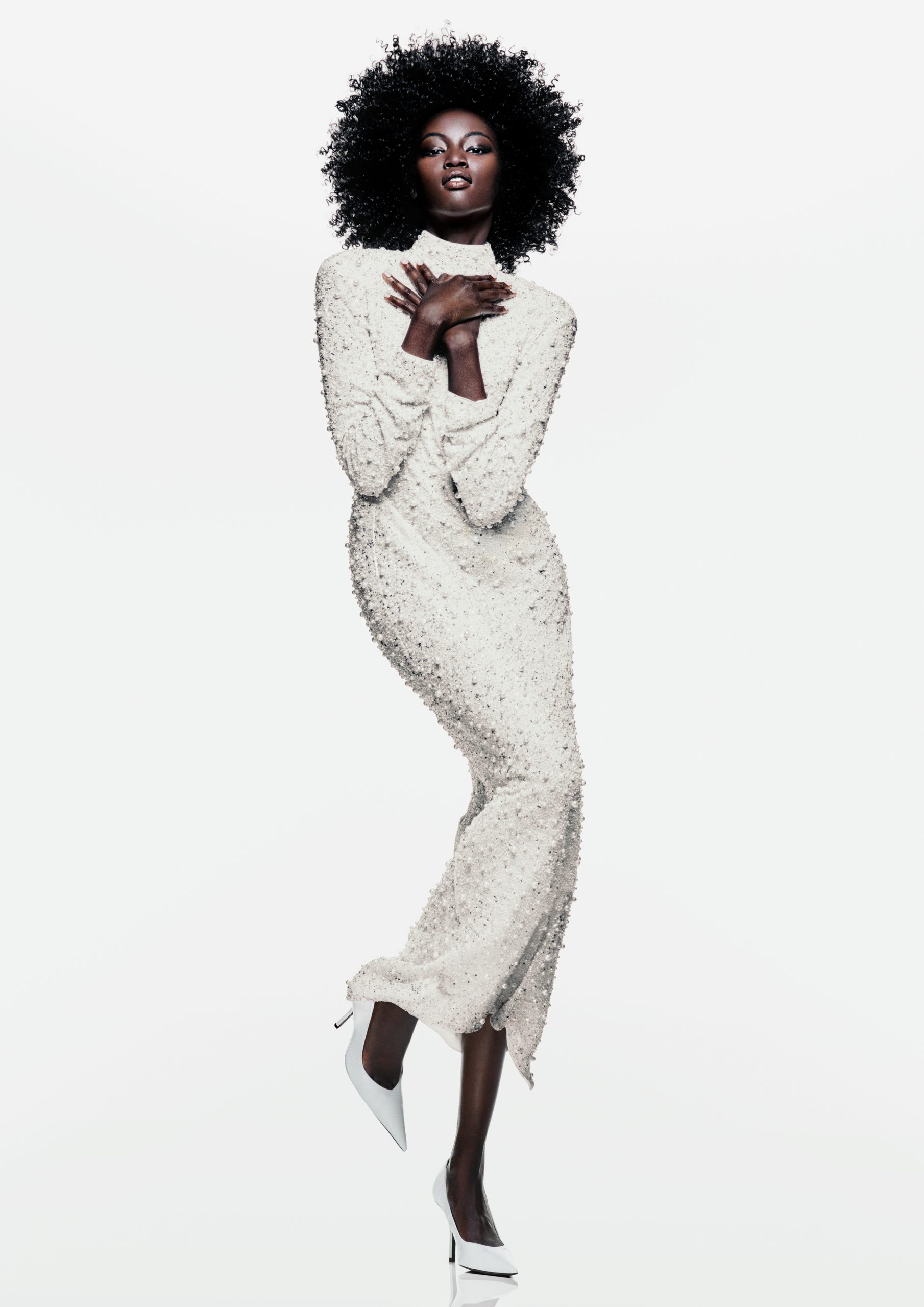 Za H&M jesen 2023., barok se susreće s neo-noirom s romantičnim, raskošnim siluetama koje se miješaju sa umjetnom kožom i traperom inspiriranim izgledom iz kasnih 1990-ih. Snažna ramena, uzak struk i izdužene linije karakteristični su među odijelima, dugim haljinama i upečatljivim topovima. Prozirne tkanine, čipka, detalji donjeg rublja i biserni ukrasi podižu svaki komad do spektakularnosti, dok neutralna paleta boja crne, srebrne, zemljanih nijansi i prljavo bijele održava sofisticirani ton.