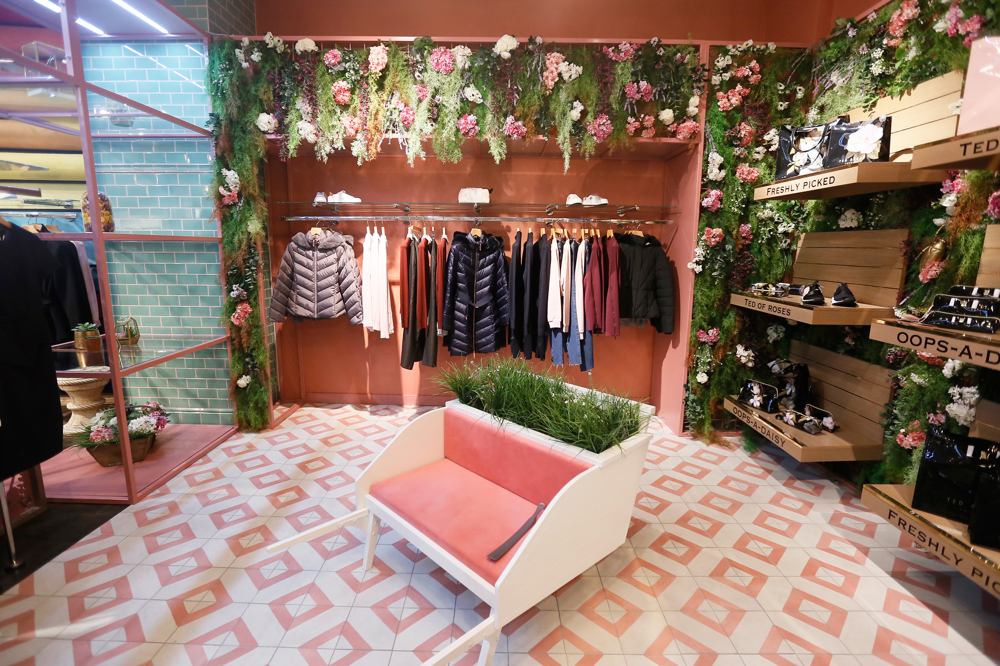 Brand Ted Baker desetljećima je sinonim za profinjenu eleganciju i kvalitetnu odjeću koja trendovski kod ima utkan u svakom šavu svoje kolekcije. Razigrani uzorci, žive boje u kombinaciji sa smjelim dizajnom i prije svega neodoljiv smisao za humor koji prožima britansku modu, čine ovaj brand neprikosnovenom modnom poslasticom. Jedno od najdugovječnijih modnih imena na tržištu je prisutno od 1988. godine, a nakon osnutka u Glasgowu, beskompromisnom kvalitetom i dizajnom osvojili su cijeli svijet. Prepoznatljivost imena Ted Baker leži upravo u stilu uređenja trgovina koji se prilagođava kulturi i životnom stilu zemlje u kojoj posluju. Nije stoga čudno da je kao inspiracija za interijer zagrebačke Ted Baker trgovine odabrano središte svakodnevnog života – trg i tržnica kao žarište vibrantnog uličnog života, hrane i glazbe.