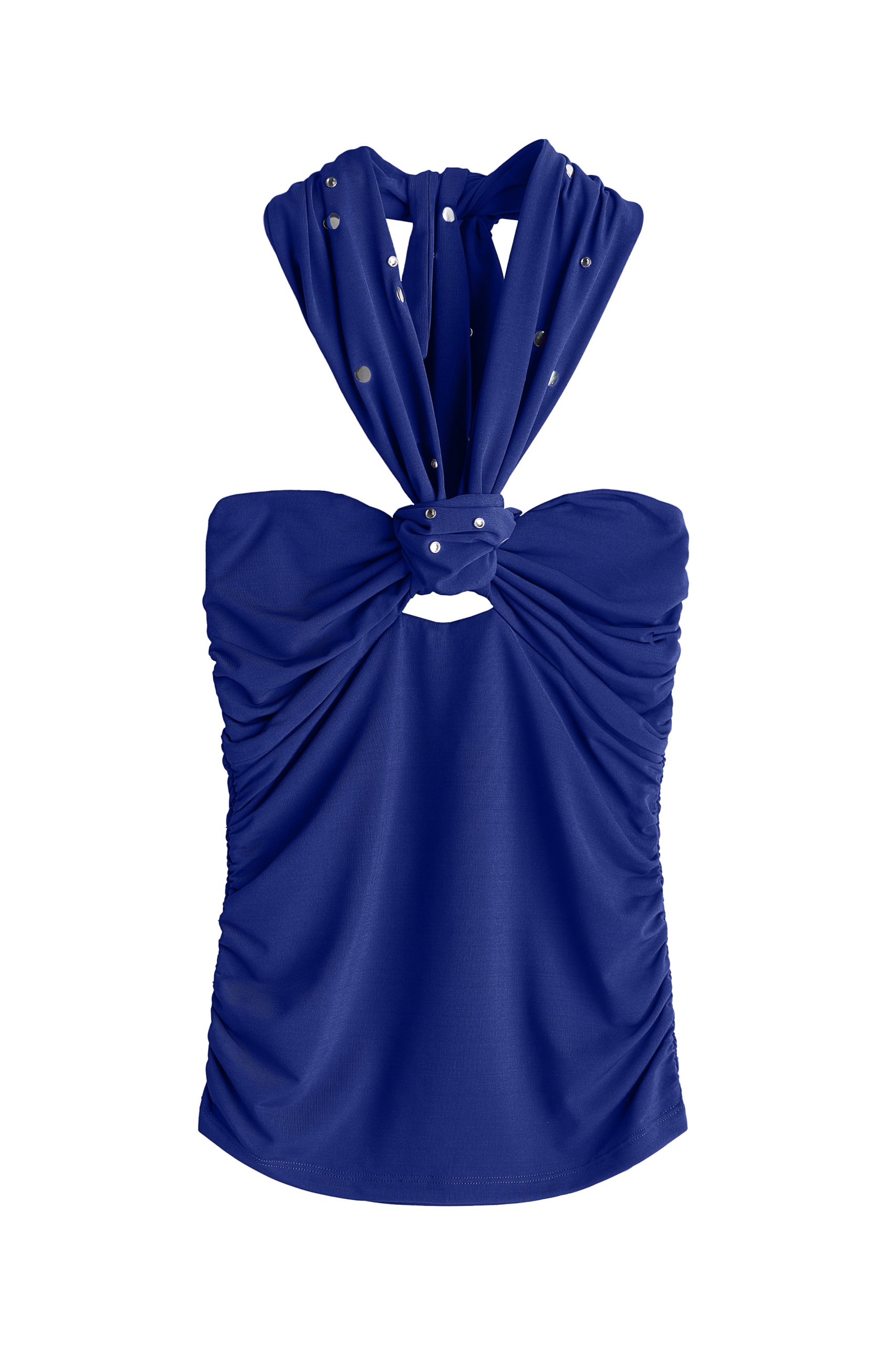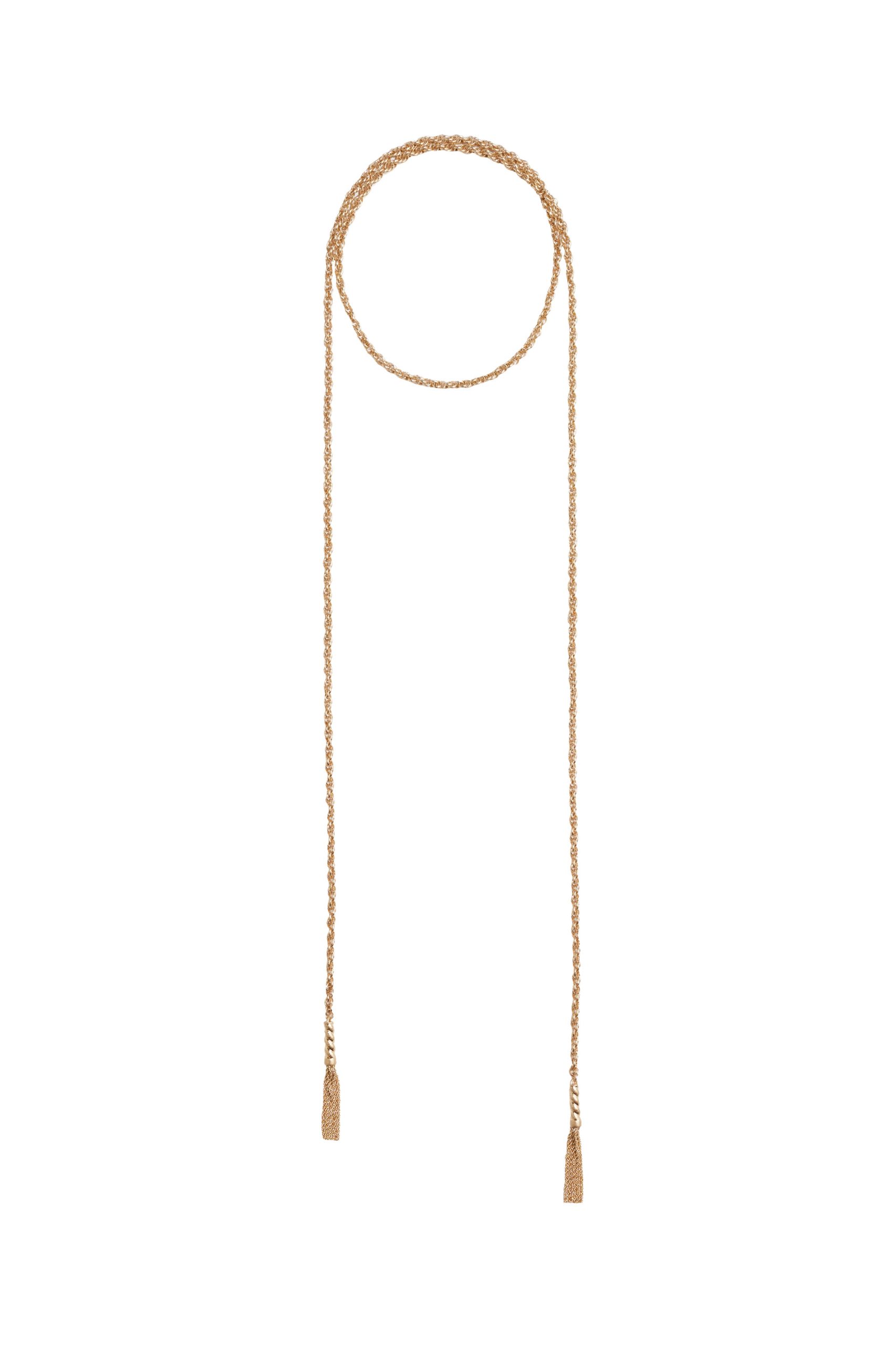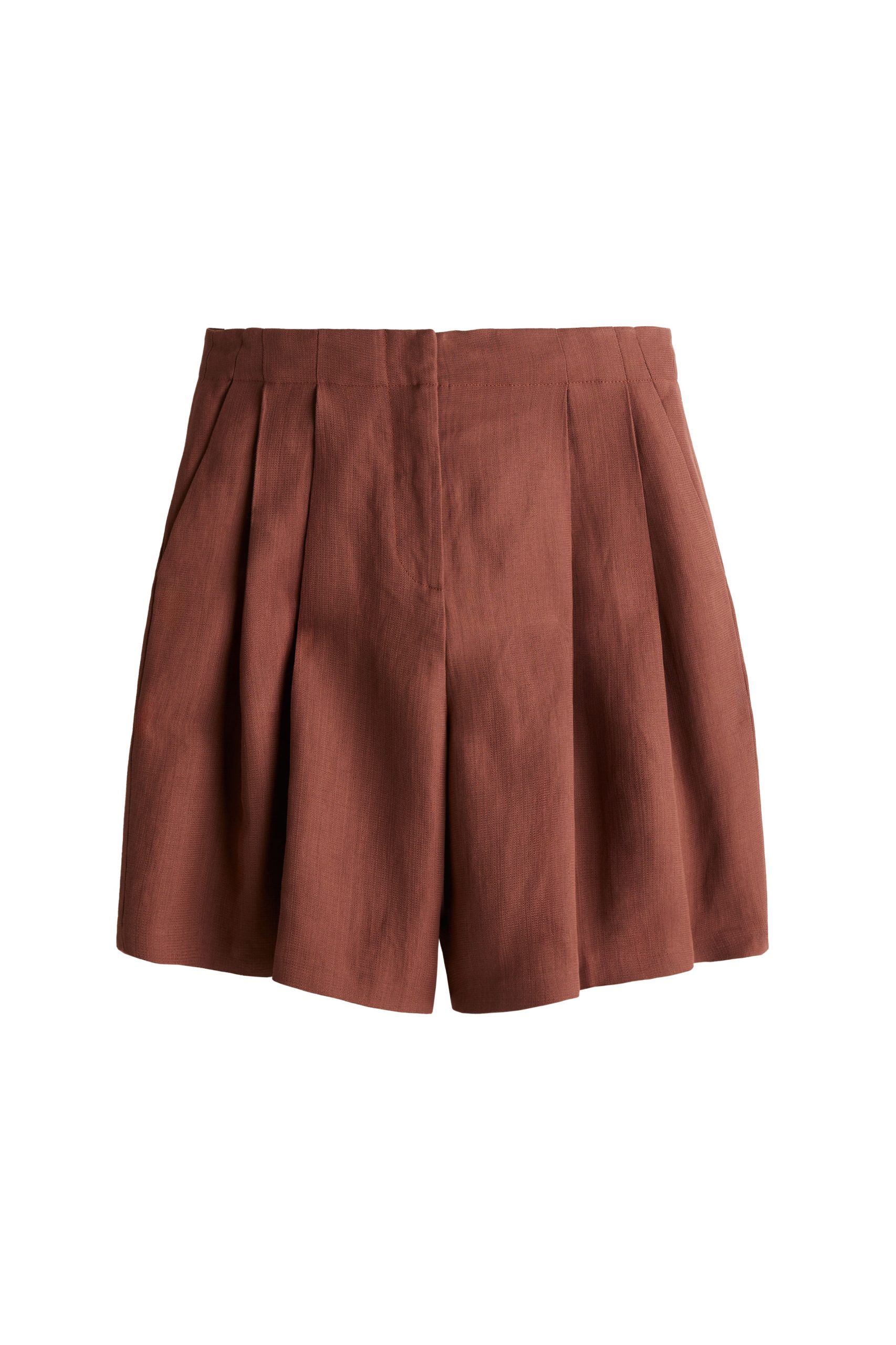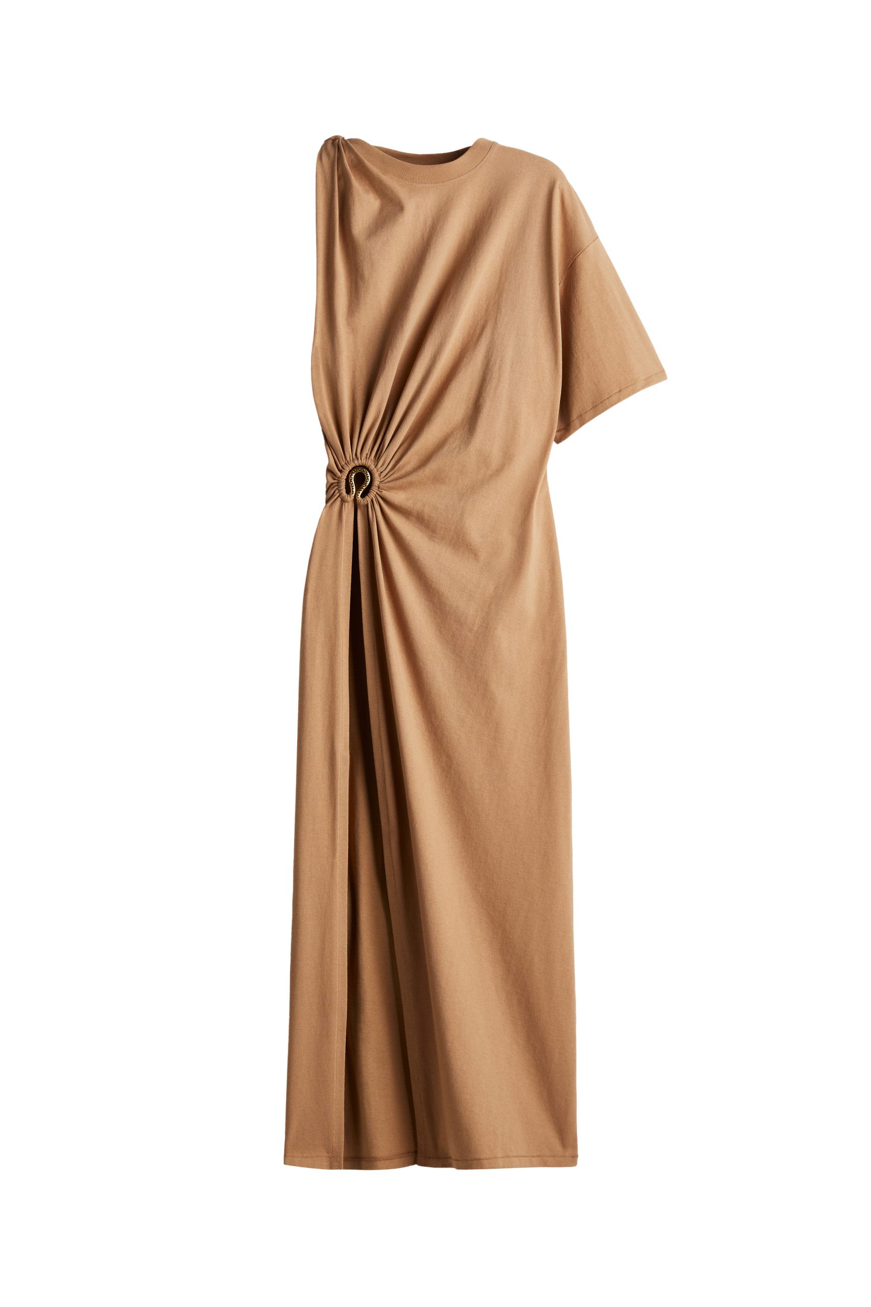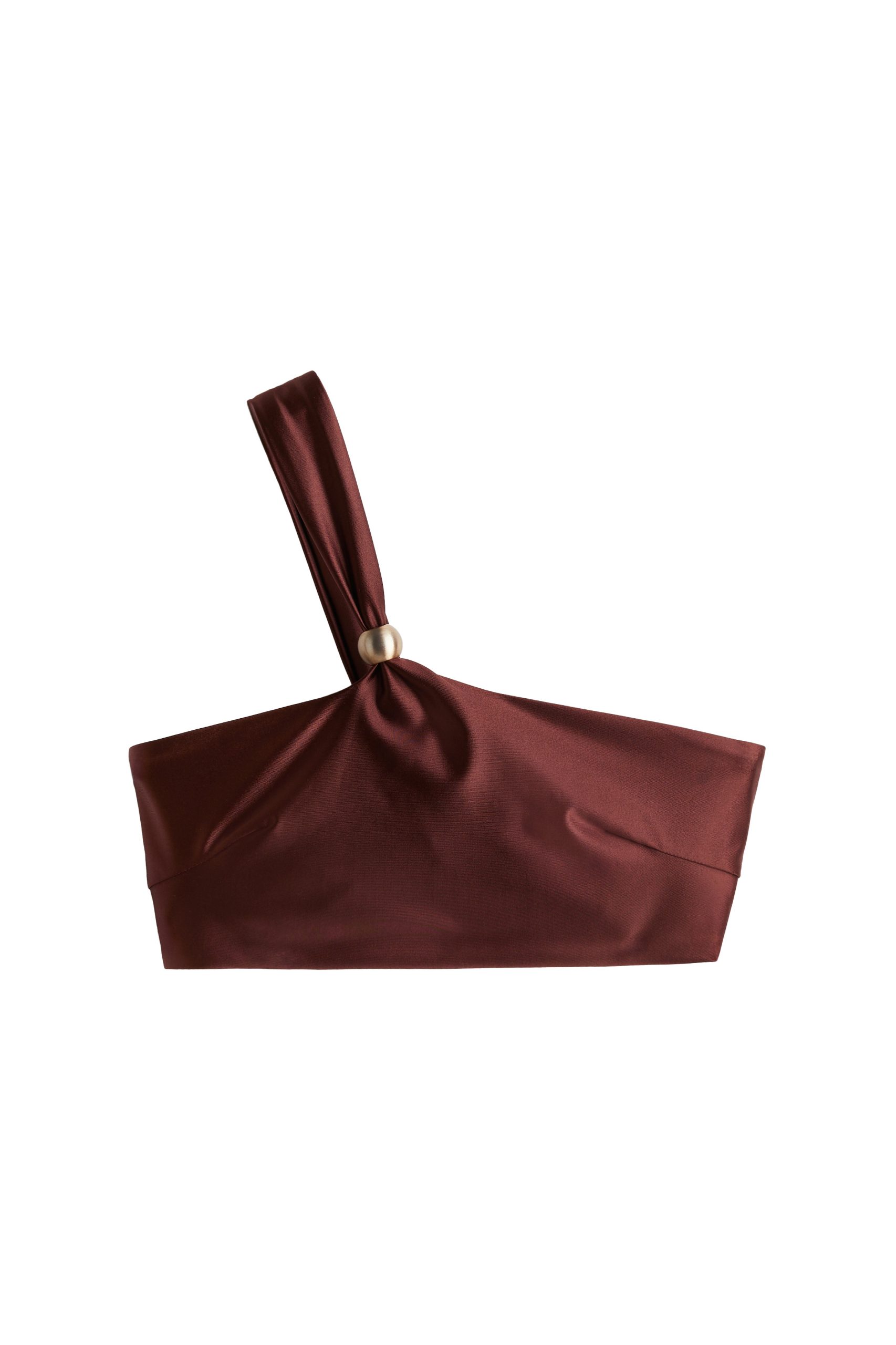 Modni dodaci uključuju terakota bikini s asimetričnim gornjim dijelom, zlatne ravne mule sandale, sandale s visokom potpeticom, svijetlo terakota kožnu torbu sa zlatnim nitima i detaljima, sunčane naočale, ogrlicu s resama i naušnice ukrašene zakovicama i kristalnim perlama.