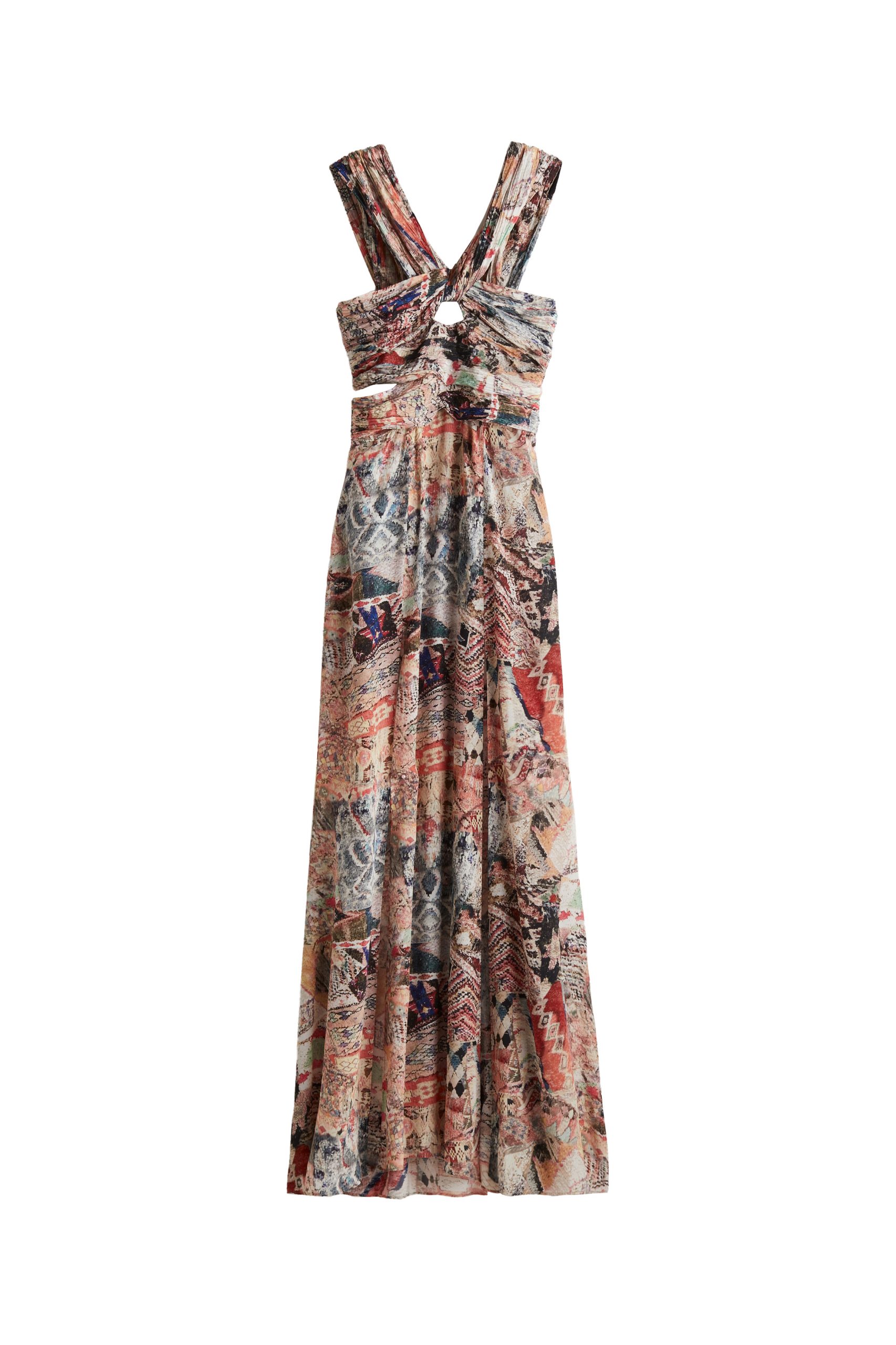 Paleta boja proteže se od smirujuće terakote, bež nijansi uz crnu i bijelu, do najživljih plavih tonova. Materijali uključuju lan, pamuk i šifon koji omogućuju lako kretanje. Ključni komadi uključuju kratku bež pamučnu jaknu ukrašenu zakovicama i bogatim vezom, koja se može kombinirati s bež trapericama sa zakovicama duž bočnih šavova. Maksi kaftani s patchwork printom prikazuju slojevite, ikonične marokanske motive.