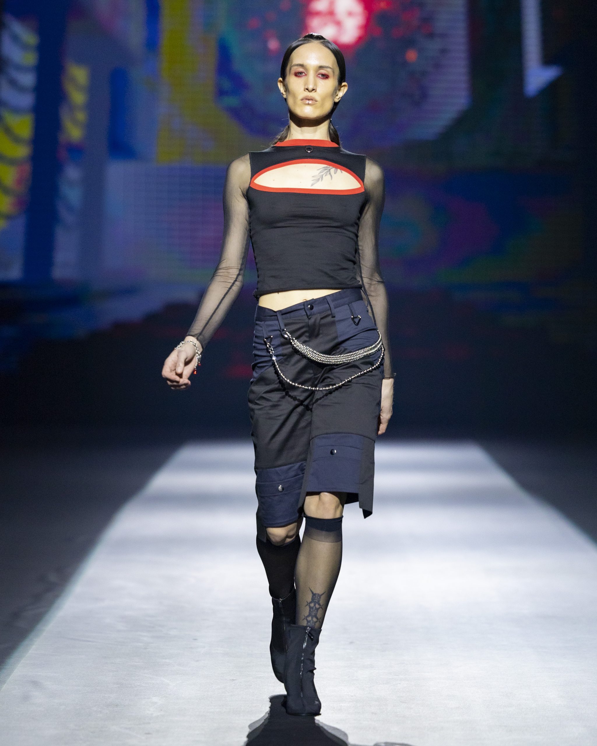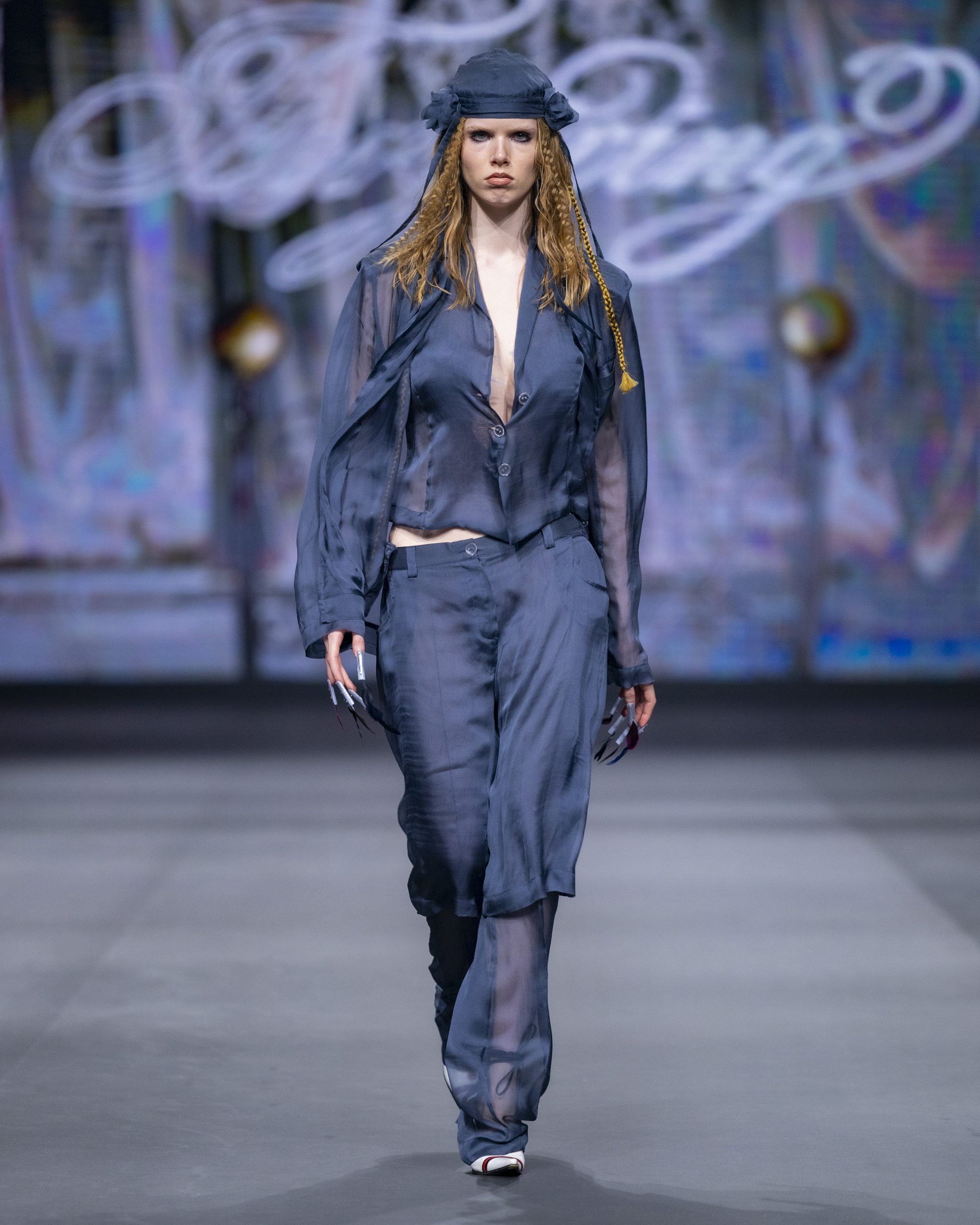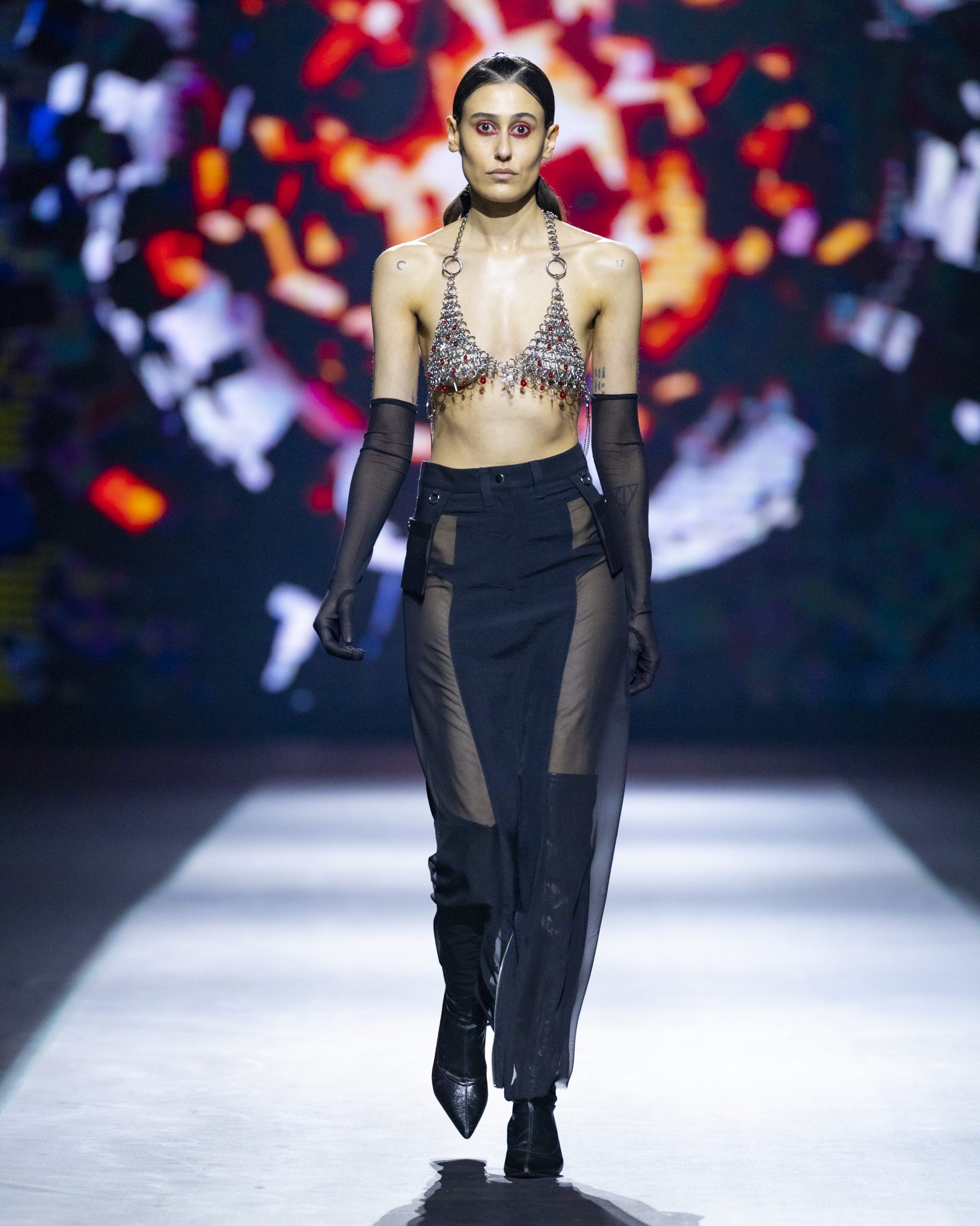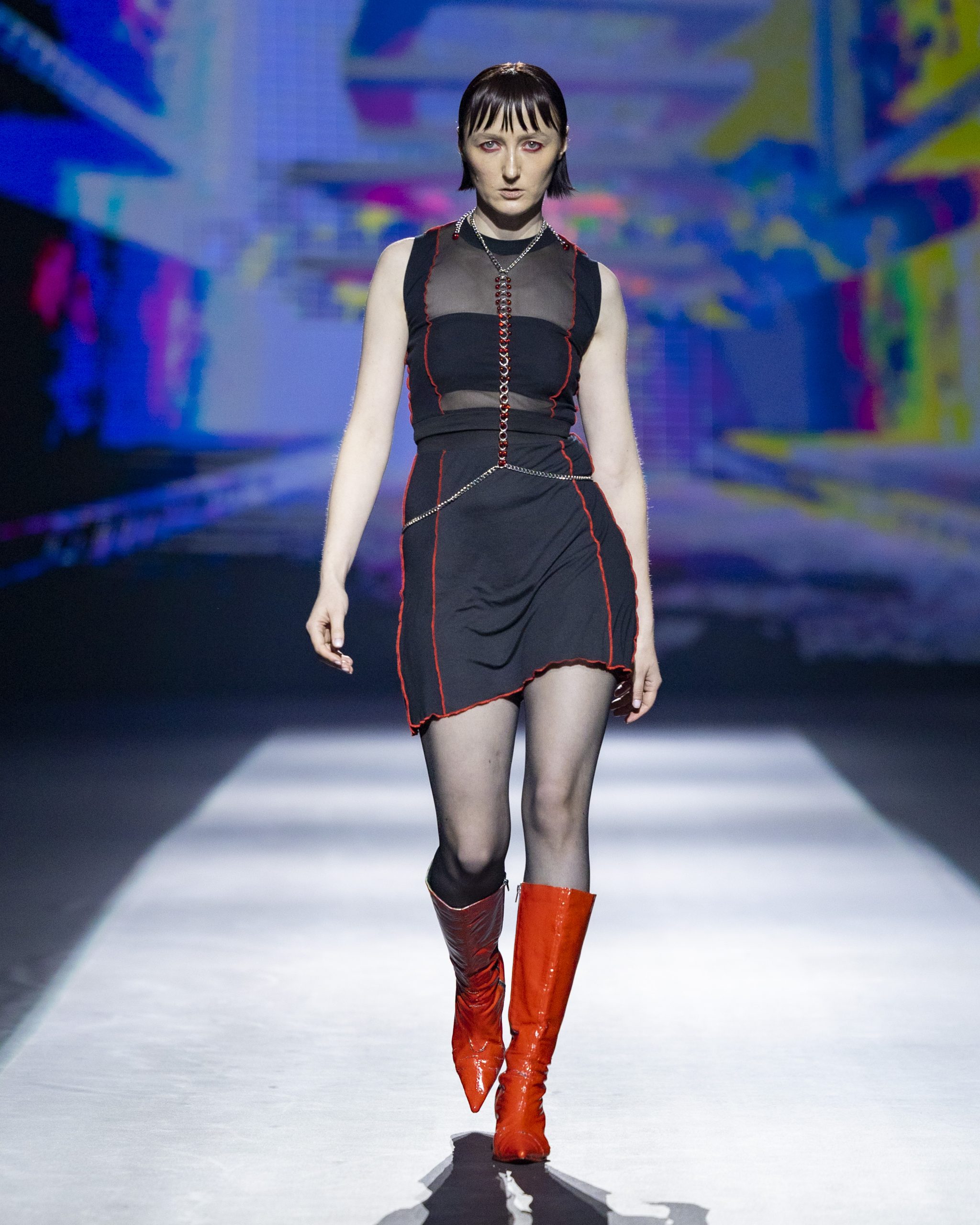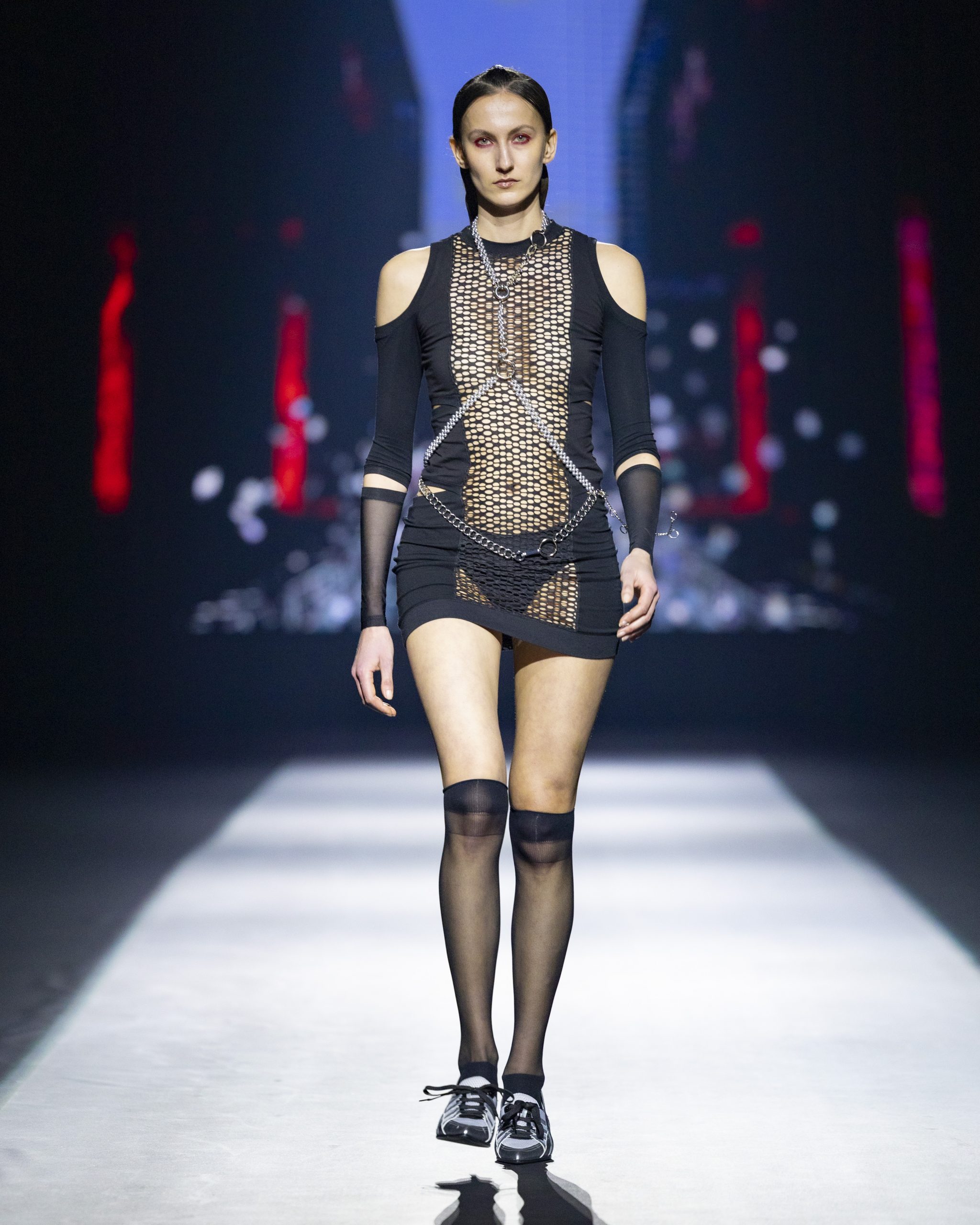 Helen Kelen okupljene je oduševila minimalističkim krojevima i prozirnim slojevima koji daju dojam višedimezionalnosti. Dizajnerica koja je prepoznata po istraživanju techno glazbe i estetike clubbinga, ovog se puta poigrala kombinacijama tekstura kao i second-hand materijalima. Korištenjem crvene boje za naglašavanje rubova, šavova i sličnih detalja, ova talentirana mlada kreativka pokazala je izrazito dinamične komade.