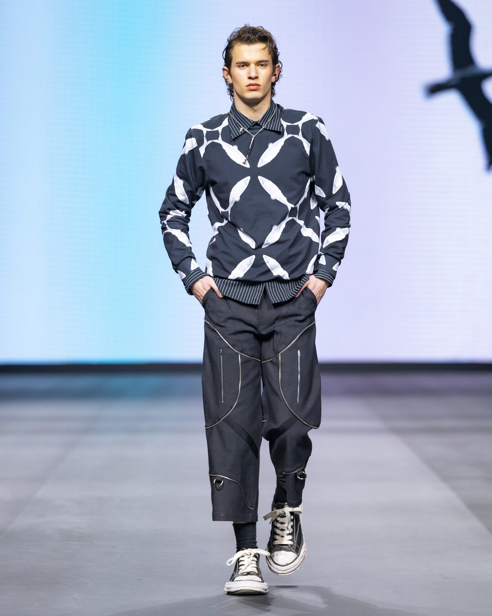 Vicko Racetin pokazao je da njegova muška ready-to-wear kolekcija nije samo odjeća već priča satkana od sjećanja, reinterpretirana kroz suvremeni dizajnerski jezik. Inspirirana dalmatinskim zavičajem i ribarskom tradicijom, kolekcija donosi lookove koji balansiraju između stroge preciznosti kroja i taktilne topline ručno rađenih tekstura, a brojni su se gosti tijekom revije itekako prisjetili svojeg djetinjstva, ljetovanja i probudili nostalgiju.