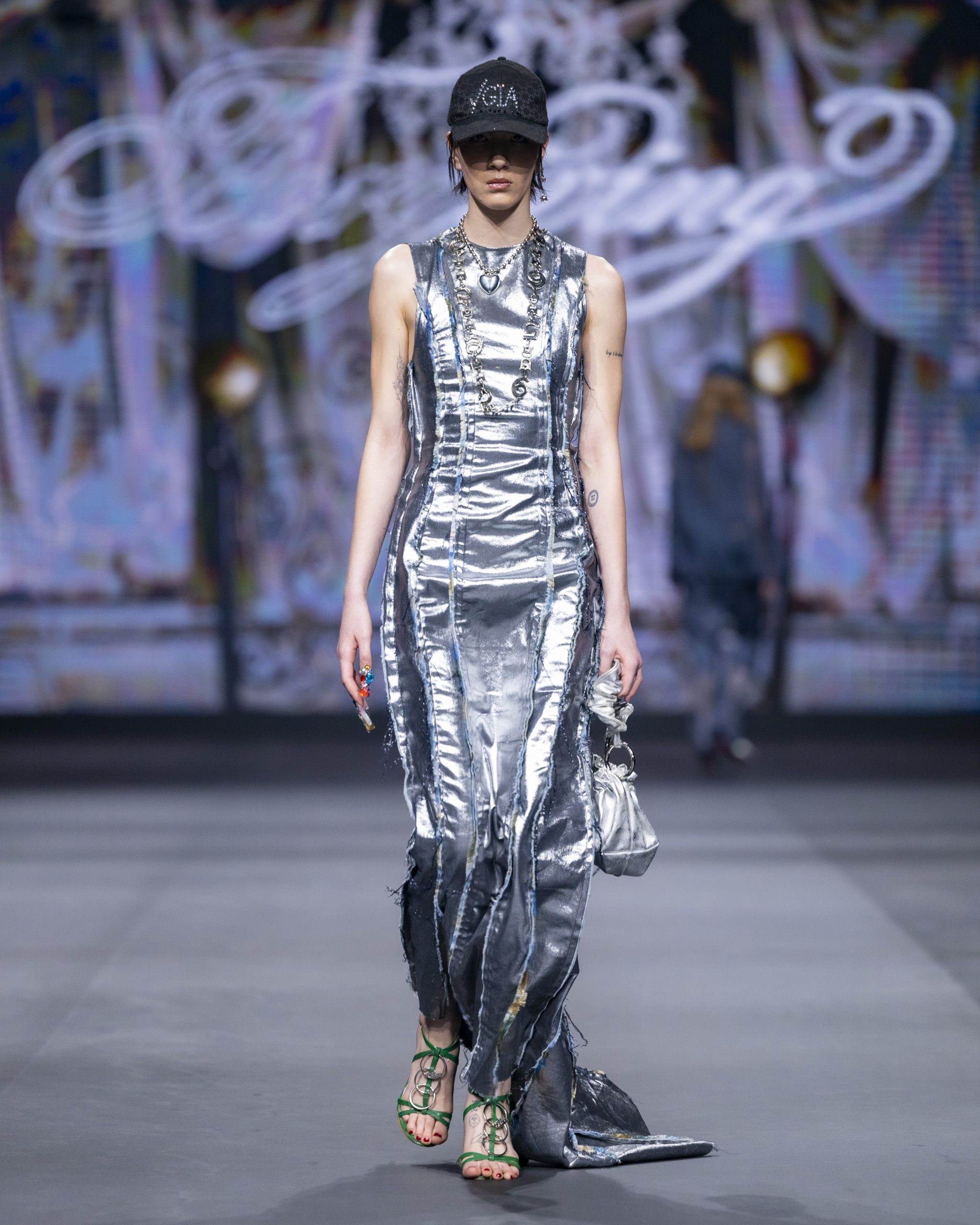 Na prisjećanje na neke prošle dane pozvala je i Jelena Geštakovski. Svojom novog kolekcijom Y/Gia sve je prisutne vratila u 2000. godine. Fenomen lažnog sjaja i statusnog predstavljanja ova dizajnerica pokazala je modelima koji su nosili tekstile s premazom i specifične uzorke spomenutog vremena, a modnim dodacima izazvala je ovacije publike.