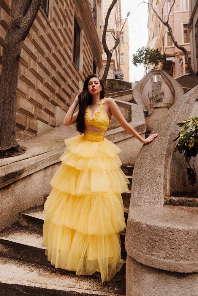 Haljine plijene bojama koje savršeno oslikavaju dolazak toplog, lijepog vremena, ali i prozračnim tkaninama i krojevima koji donose dašak gracioznosti i profinjenosti. Favoriti će svakako biti romantične haljine u predivnoj žutoj boji koja podsjeća na tople zrake sunca. Prozračna tkanina, krojevi koji savršeno naglašavaju žensku figuru i detalji cvijeća učinit će da se osjećate poput princeze. Paleti haljina u toplim bojama pridružuje se i raskošna haljina u vatrenoj narančastoj boji. Na korzet koji donosi dozu ženstvenosti nastavlja se lepršavi donji dio, kao savršen kontrast. Volite li satenske haljine, bit ćete na slatkim mukama jer satenske haljine u smaragdno zelenoj i boji šampanjca jednako su fantastične. Saten koji ističe svu ljepotu ženske siluete i boje koje će naglasiti vašu put čine ove haljine idealnim izborom za sve svečane prigode koje vas čekaju u narednim mjesecima. Primijetit ćete i predivnu, bajkovitu haljinu u nježnoj, pastelno zelenoj boji od delikatnog materijala koja će zasigurno dobiti bezbroj komplimenata.