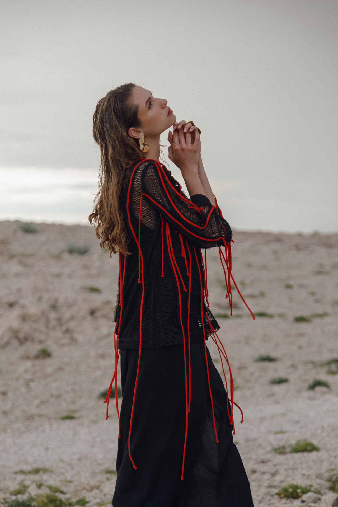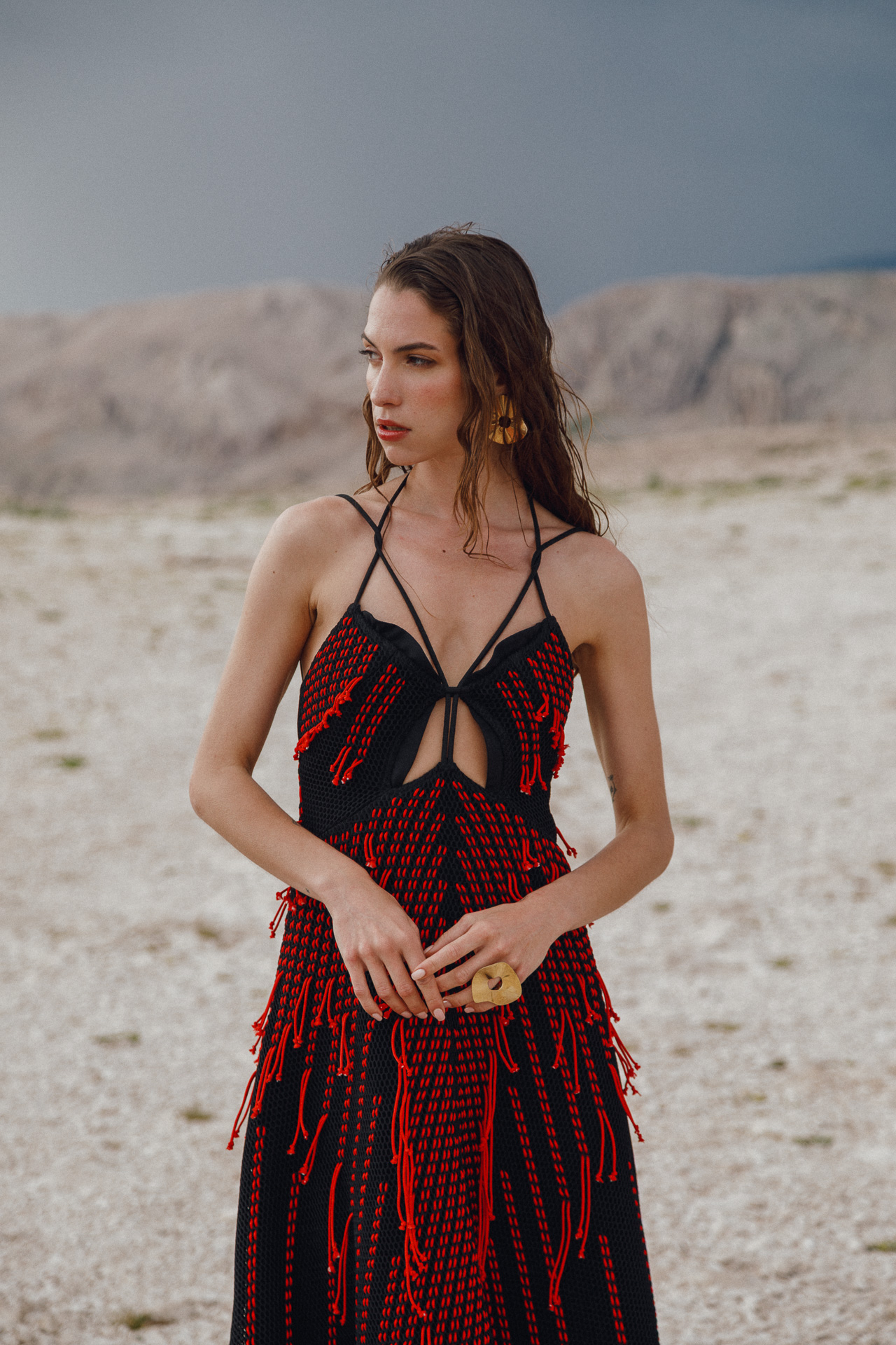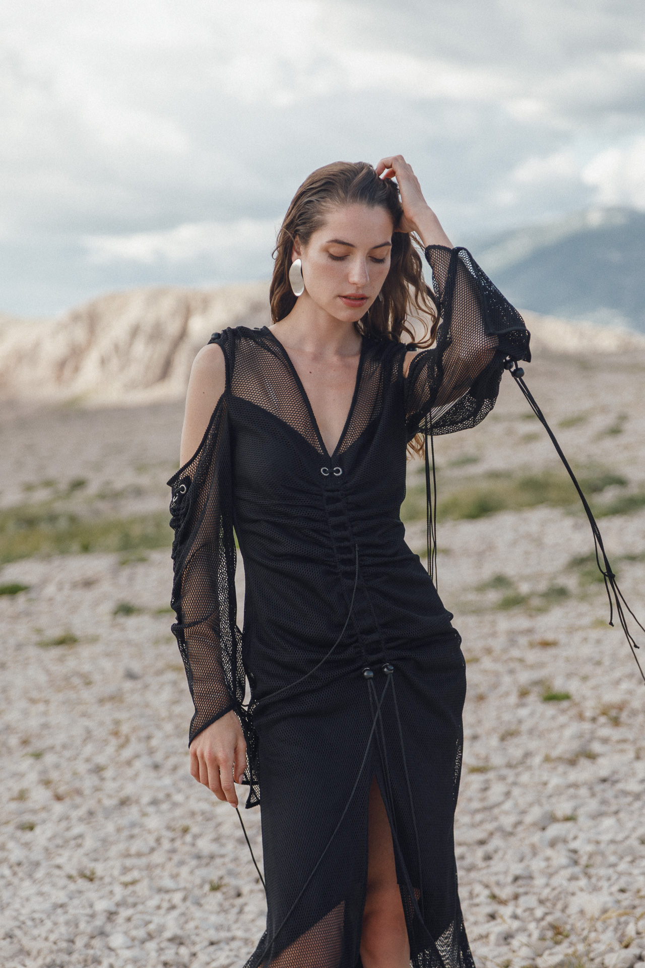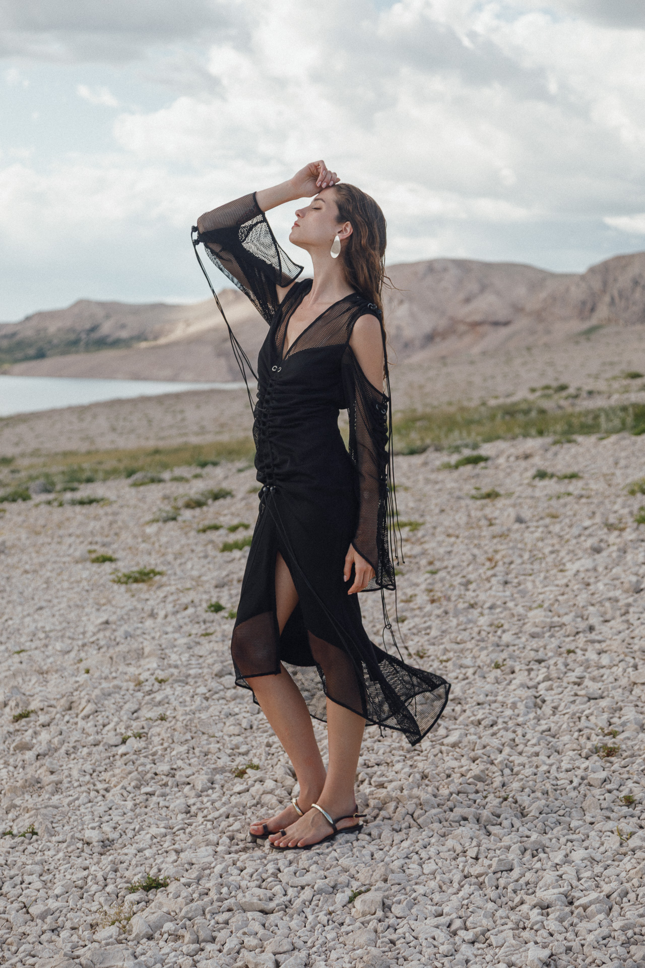 Fotografirana na Pagu, među stijenama lišenima vegetacije, kolekcija vizualno pulsira poput egzotičnog cvijeta na mjestu gdje ga najmanje očekujete. Vjetar koji je nosio tkanine tijekom snimanja savršeno je oživio ideju lepršavosti i lakoće odjevnih komada.