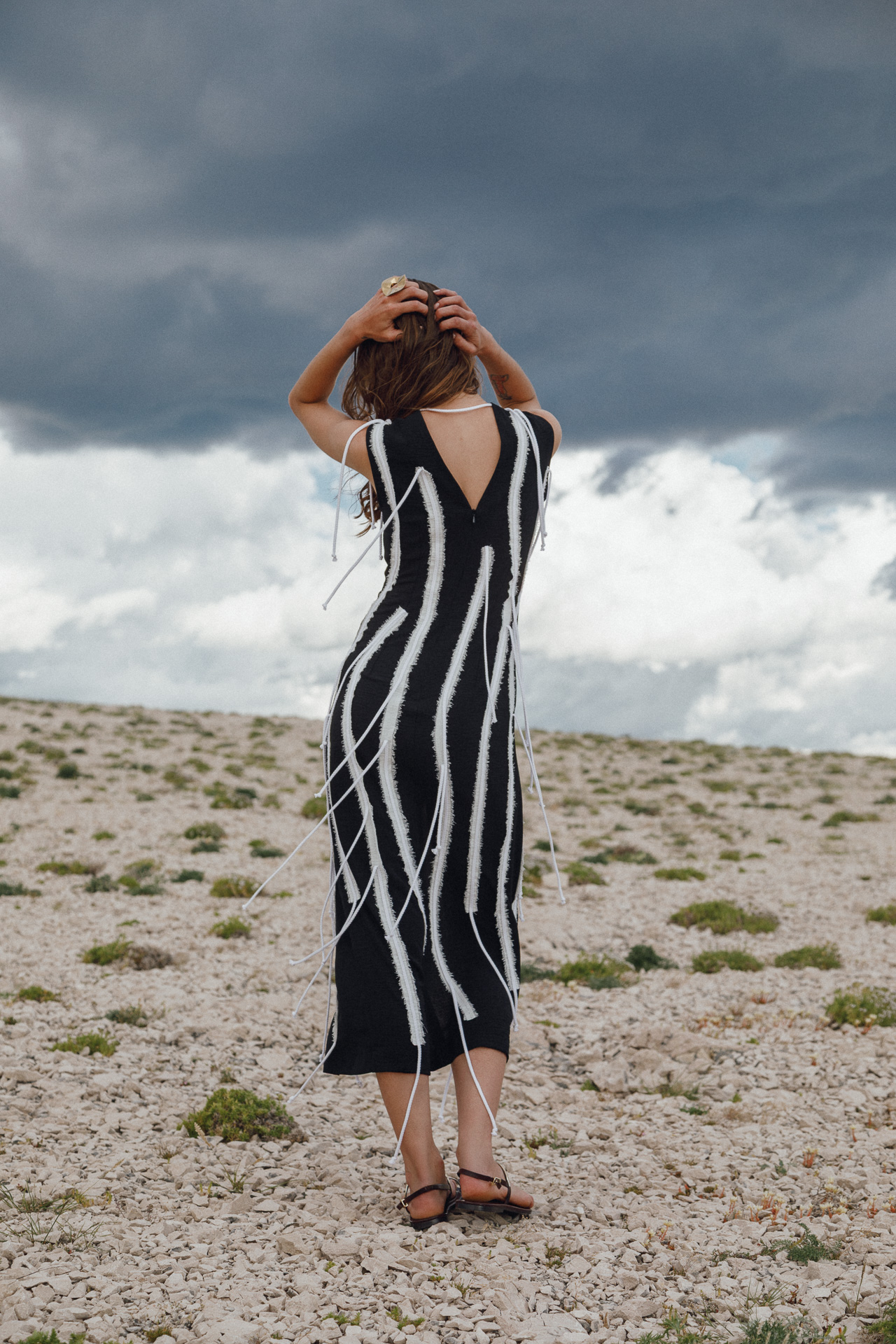 U ogoljenom, kamenitom pejzažu otoka Paga, gdje priroda izgleda kao da je odustala, nova kolekcija Ane Marie Ricov za proljeće/ljeto 2025 otvara sasvim drugačiji narativ: onaj o ljepoti koja ne traži savršene uvjete, već izrasta iz surovosti – poput cvijeta koji nikne iz kamena.